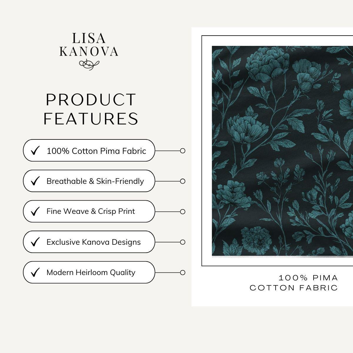 A Study in Dark Bloom is a striking floral printed on smooth, breathable Pima cotton, where sculptural teal blossoms and fine linework emerge from a deep, inky ground. The design reads almost like an illustration study — deliberate, balanced, and rich in detail without feeling ornate. Cool-toned and composed, this pattern brings depth and quiet drama to a space, offering a refined alternative to traditional florals. Designed to feel thoughtful rather than decorative, it’s a fabric that anchors a room with confidence and lasting presence.