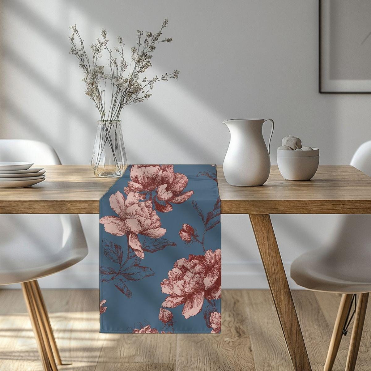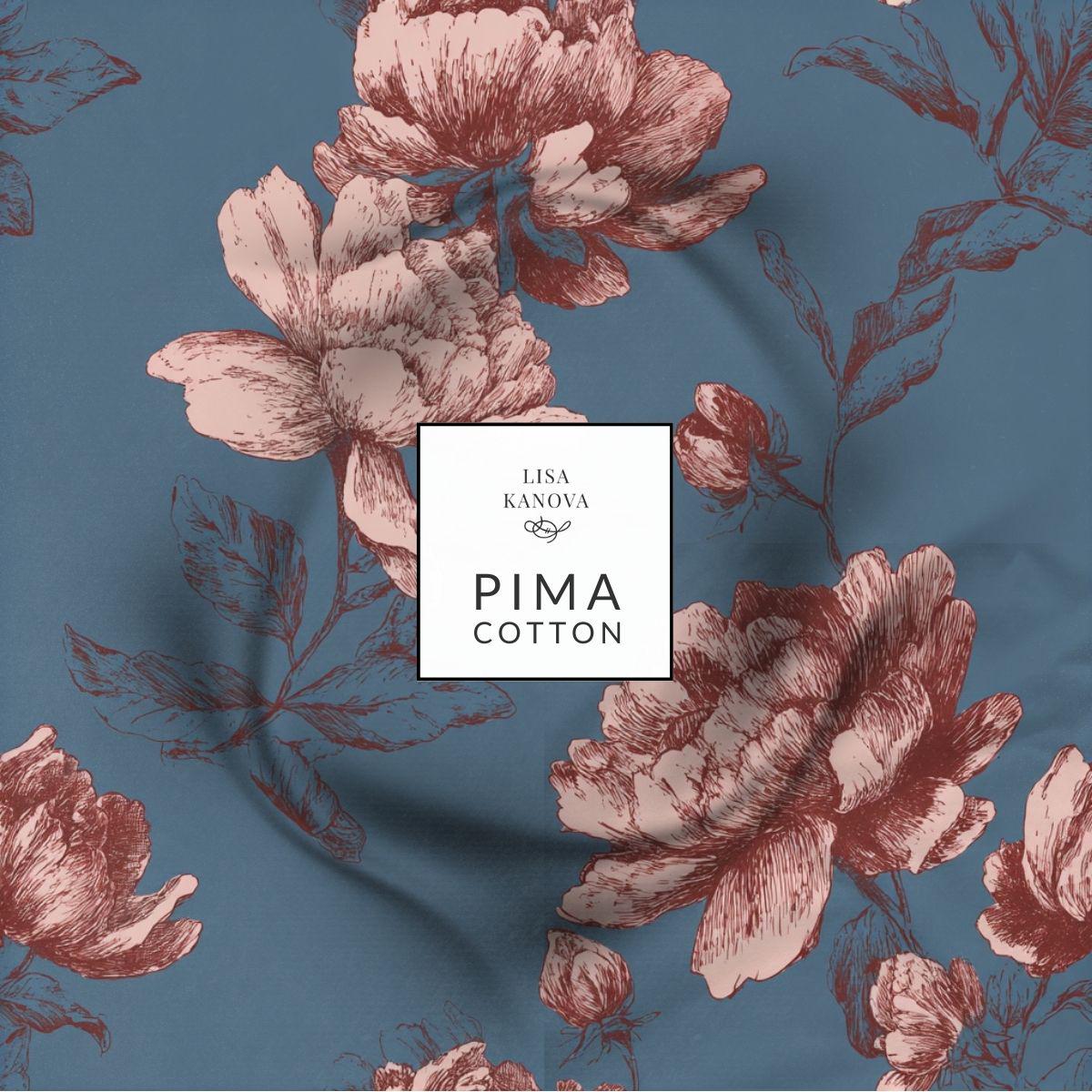 A Garden Near the Sea is a softly expressive floral printed on smooth, breathable Pima cotton, where muted rose blooms drift across a weathered blue ground reminiscent of coastal light. The palette feels balanced and serene, blending warmth and coolness in a way that’s easy to live with. Delicate linework keeps the pattern airy, while the depth of color gives it quiet presence. Designed for bedrooms, living spaces, or anywhere you want calm without blandness, this fabric feels relaxed, thoughtful, and quietly transportive.