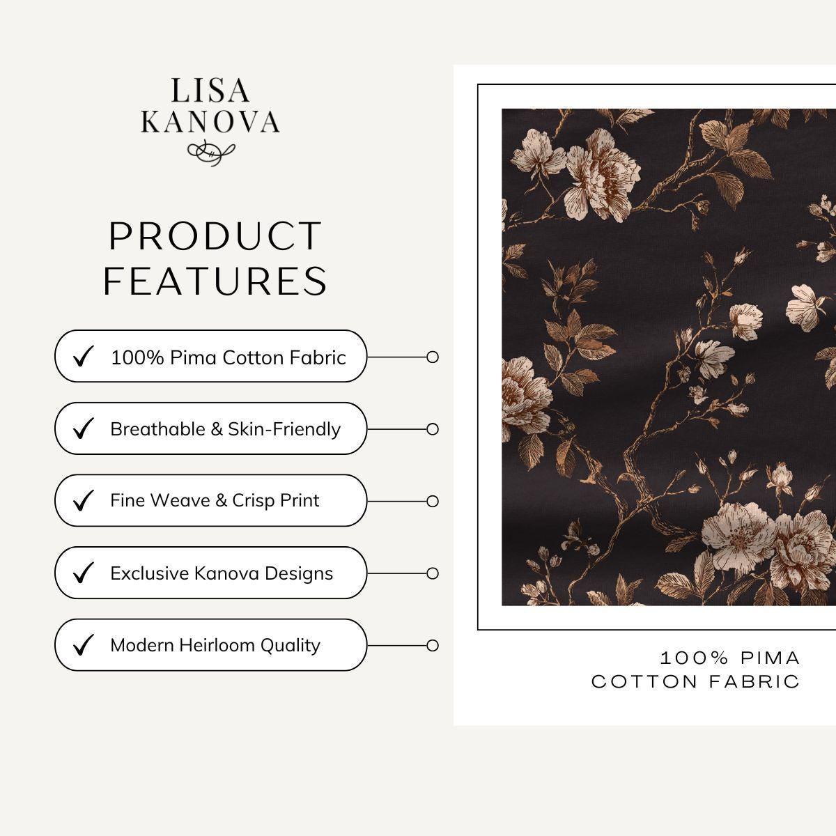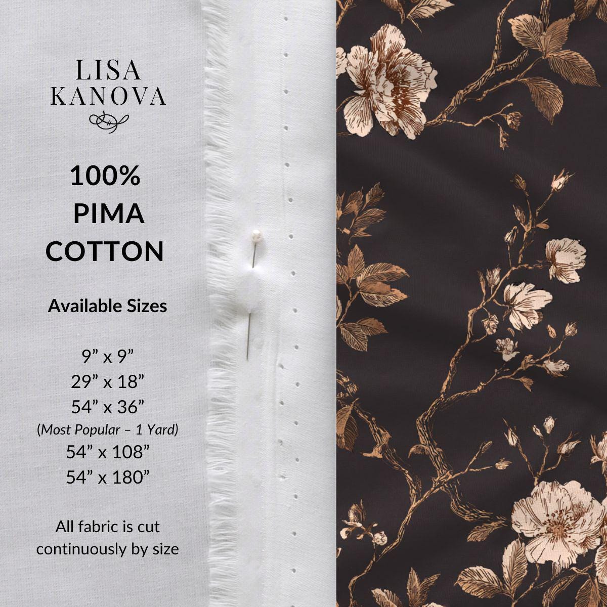 Hot Cocoa in the Courtyard blends deep, grounding tones with softly sketched florals, creating a pattern that feels warm, settled, and quietly indulgent. The palette is rich without being heavy, designed to bring depth and comfort to a space rather than dominate it. Printed on smooth Pima cotton, it offers a refined hand and lasting softness — the kind of textile you reach for when a room is meant to feel finished, welcoming, and lived in.
