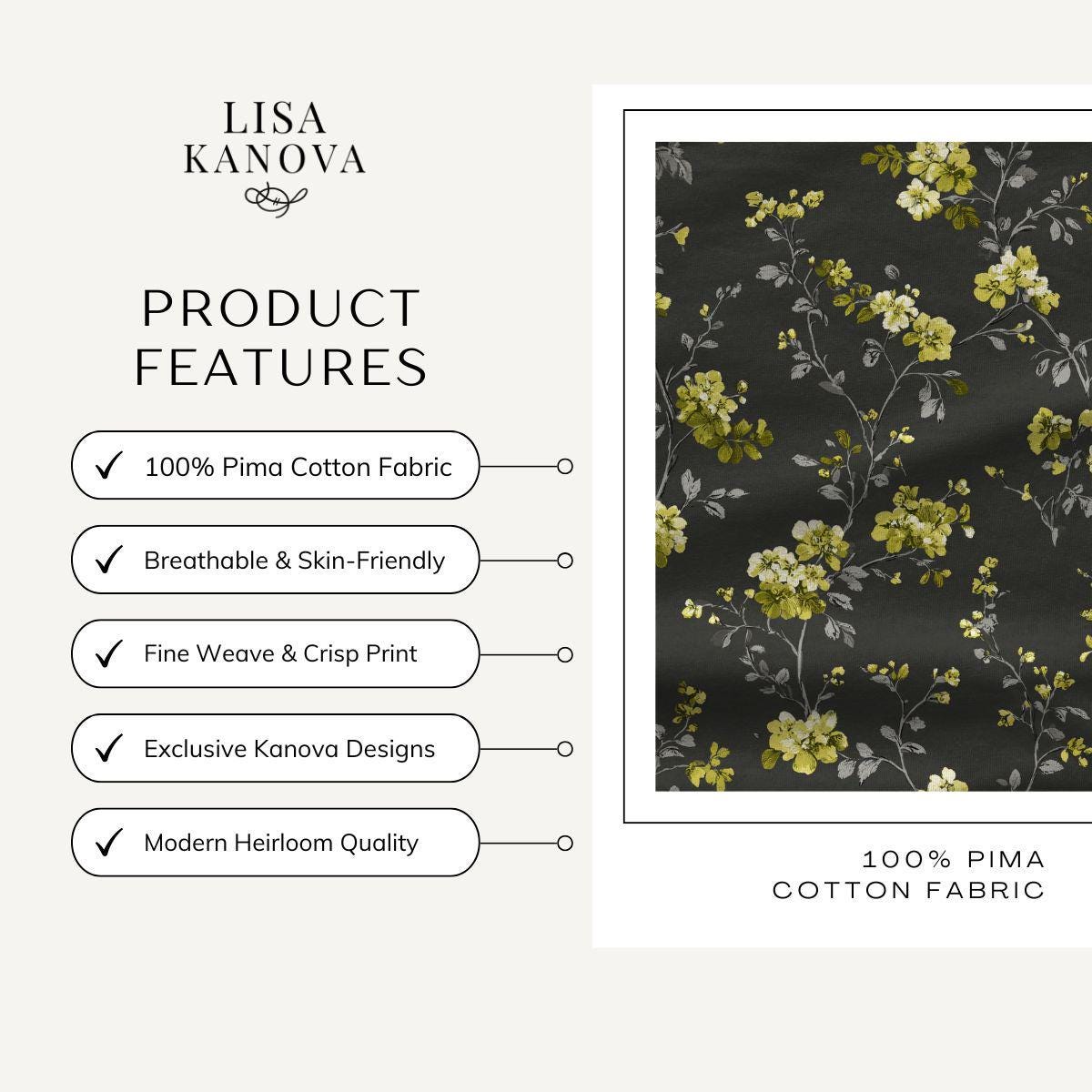 Chartreuse After Five is what happens when restraint loosens its collar. A deep, charcoal-leaning ground sets the stage while soft florals and chartreuse accents come alive — subtle, elegant, and just a little unexpected. It’s composed enough for a curated home, with just enough edge to feel personal.