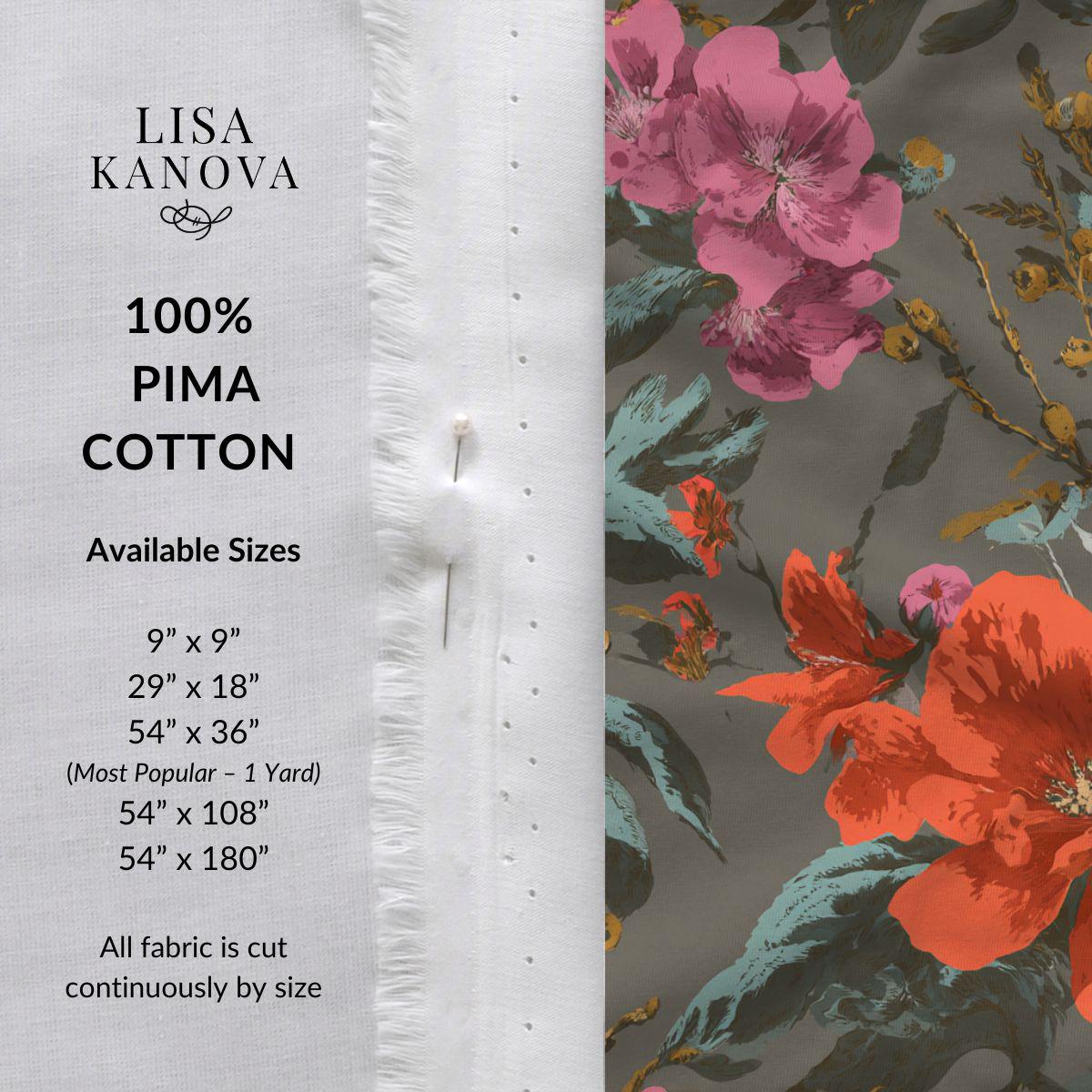 Digitally printed on a finely woven cotton base, this fabric delivers crisp pattern detail, rich color saturation, and a soft matte finish — never shiny, never stiff, and never plastic-feeling. The natural drape makes it equally suited for garment sewing and home décor projects, while the substantial weight gives confidence for pieces meant to be used again and again.