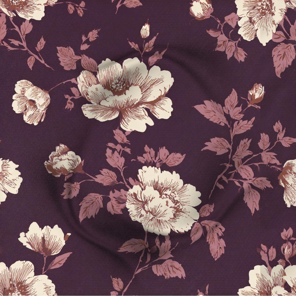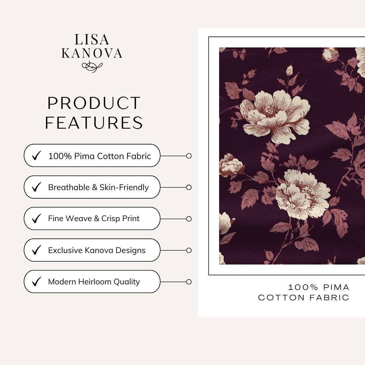 A dusky plum ground softened by antique rose and ivory botanicals, this pattern evokes the quiet elegance of historic parlors and inherited interiors. The hand-drawn florals feel gently aged—formal yet expressive—layered with a sense of time rather than trend. Printed on smooth Pima cotton for a refined, breathable finish with enduring softness. Designed for spaces that favor tradition, intimacy, and beauty that has learned to linger.