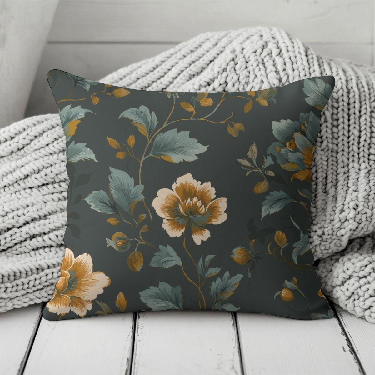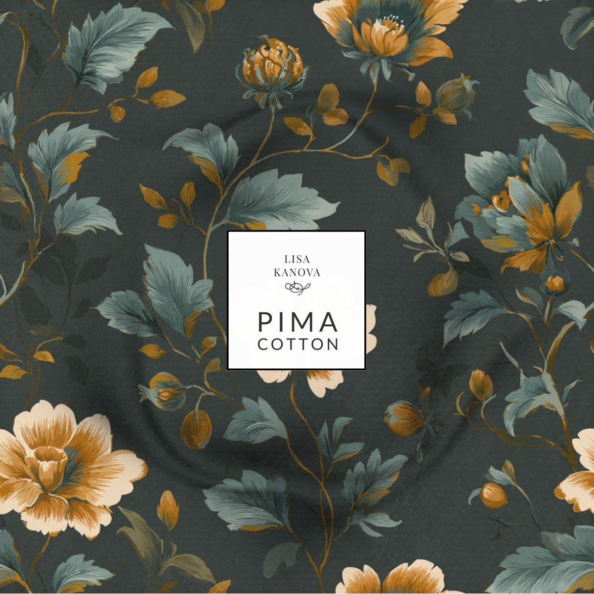 Evening in the Parlor takes on a richer, moodier presence in this deeper palette, where hand-drawn florals unfold against a shadowed ground of inky teal and charcoal. Accents of soft blue, warm ochre, and muted ivory echo twilight gardens and still water at dusk. Printed on luxurious Pima cotton, the fabric has a smooth hand and graceful drape, making it ideal for statement bedding, dramatic curtains, and refined interiors that favor depth, calm, and quiet sophistication.