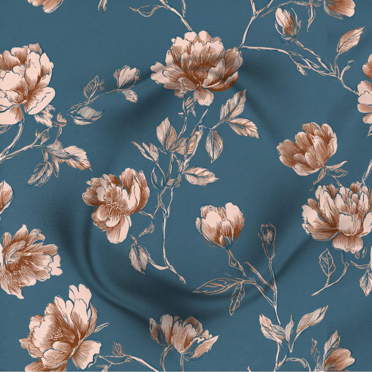 Quiet Notes in the Music Room is a refined botanical design printed on luxurious Pima cotton, featuring softly drawn florals in warm ivory and muted copper set against a deep, composed teal ground. Inspired by afternoon light, polished wood floors, and the stillness between melodies, this pattern carries a sense of rhythm and restraint. Elegant without being ornate and expressive without excess, it brings calm sophistication to bedding, drapery, and home accents meant to be enjoyed quietly and lived with beautifully. The long-staple Pima cotton offers exceptional softness and a graceful drape that elevates every detail.