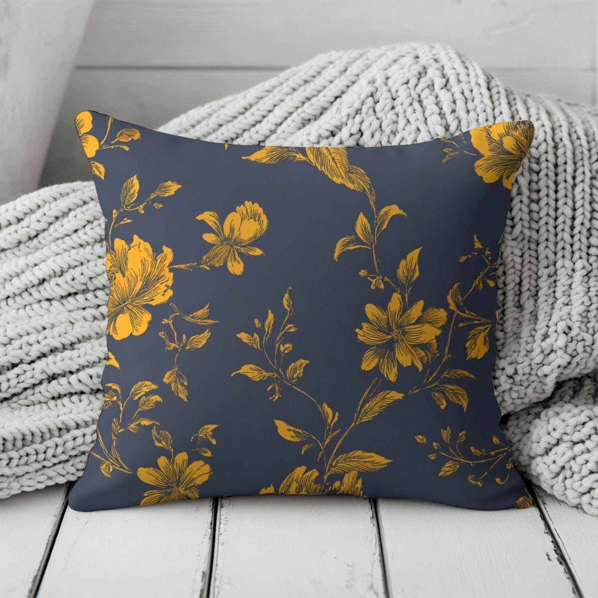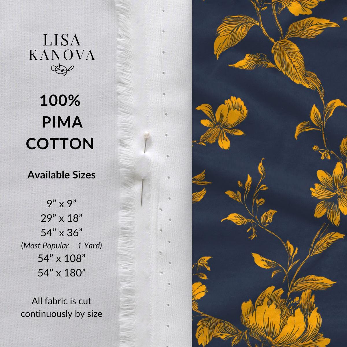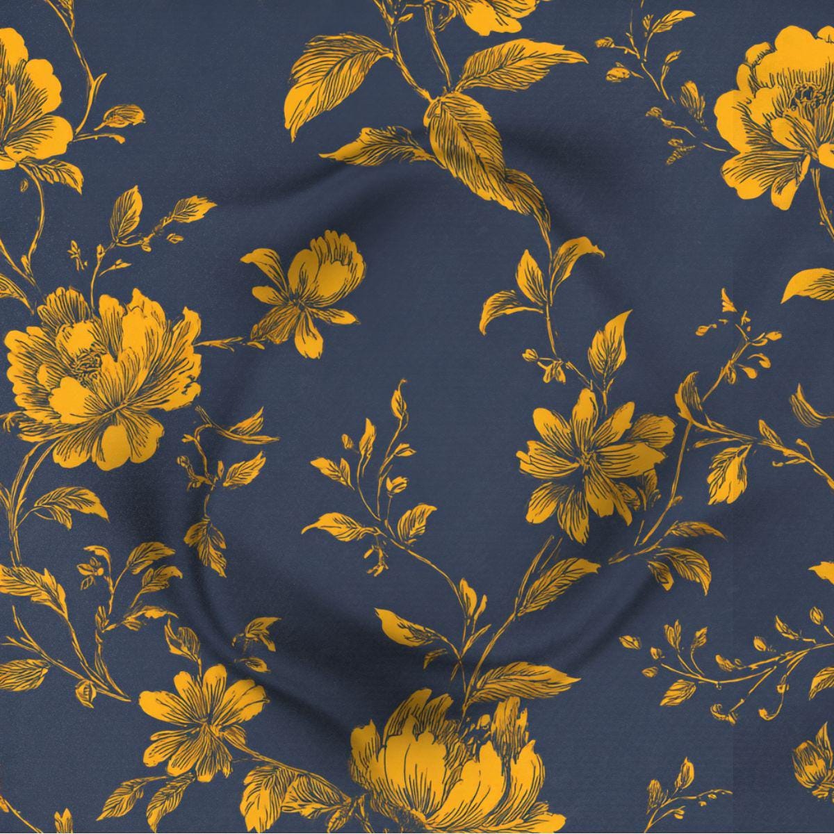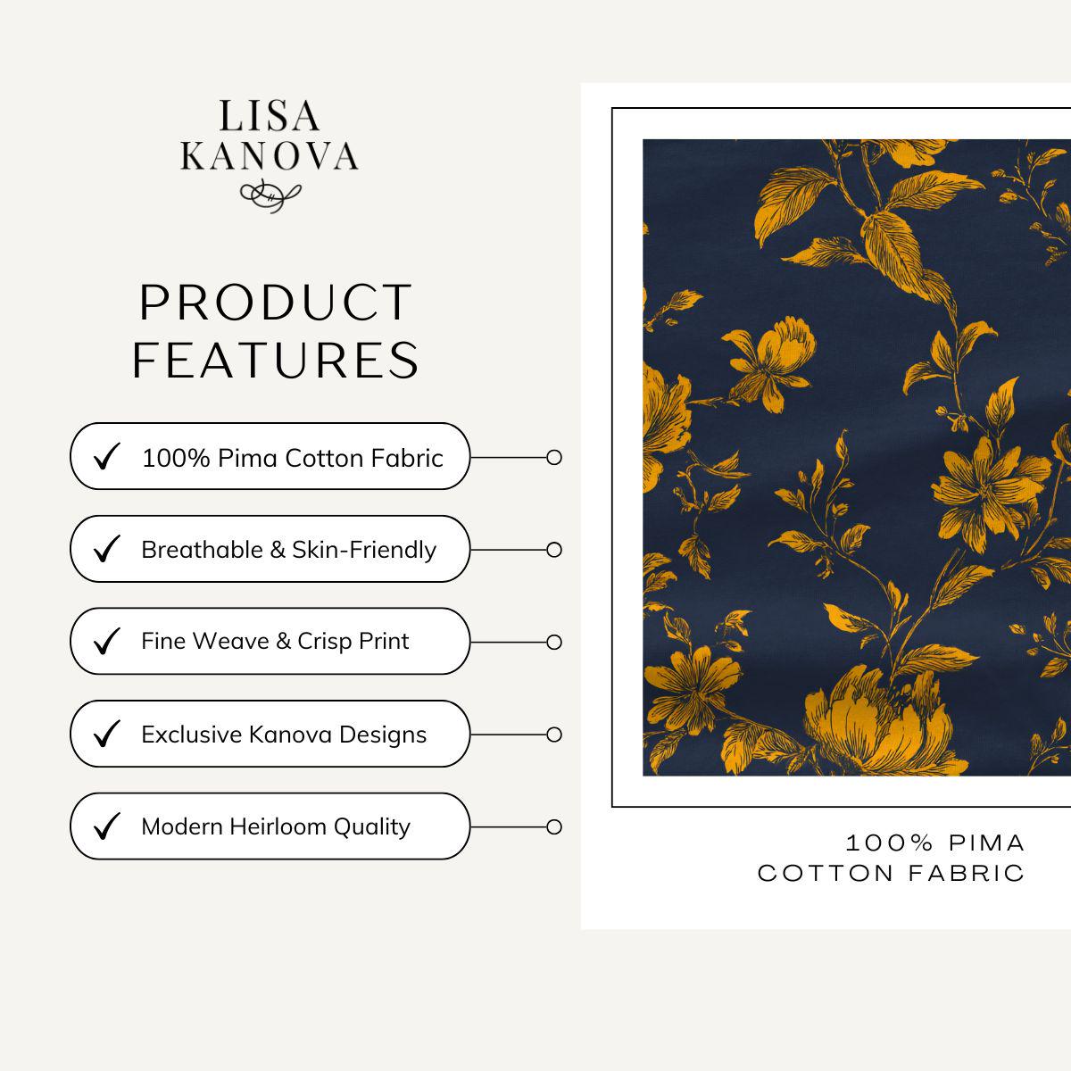 Inky navy sets the mood while golden florals take their time stealing the show. Gilded Midnight Garden feels equal parts old-world and unapologetically modern—like candlelight reflecting off brass at a very good dinner party. The hand-drawn blooms keep it refined, the gold brings warmth without sparkle overload, and the deep ground color makes everything around it feel more intentional. Printed on luxuriously smooth Pima cotton, this design is made for statement bedding, dramatic drapery, or any space that’s tired of playing it safe.