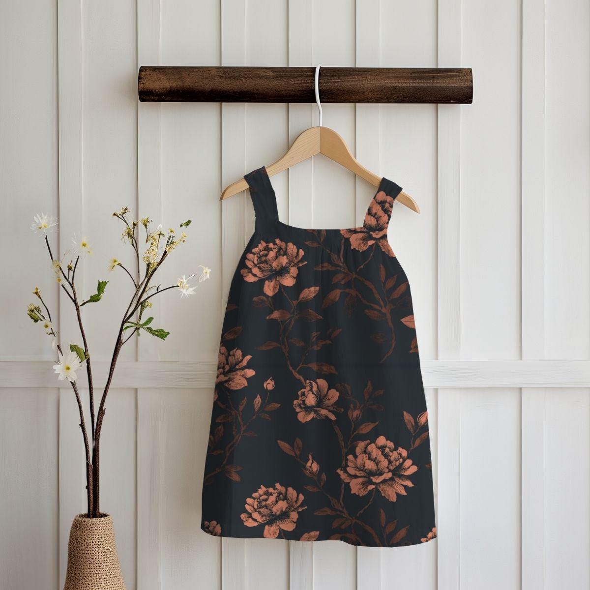 Warm copper florals bloom against a deep charcoal ground, creating a pattern that feels intimate, grounded, and quietly luxurious. Copper Quietude has a moody elegance—less about sparkle, more about substance. The hand-drawn florals bring softness and movement, while the rich, muted palette gives the design a collected, grown-up confidence. Printed on smooth, breathable Pima cotton, this pattern is perfect for bedrooms, drapery, or any space that leans into warmth without losing its edge.