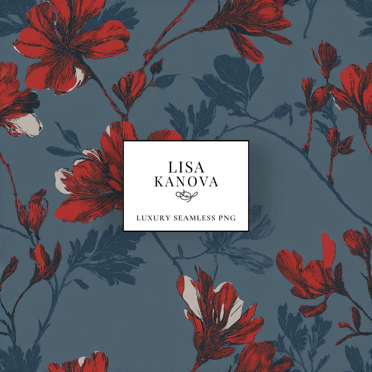 Floral Seamless Pattern Instant Downloadable PNG (3600x3600px) in Crimson Bloom in the Estate