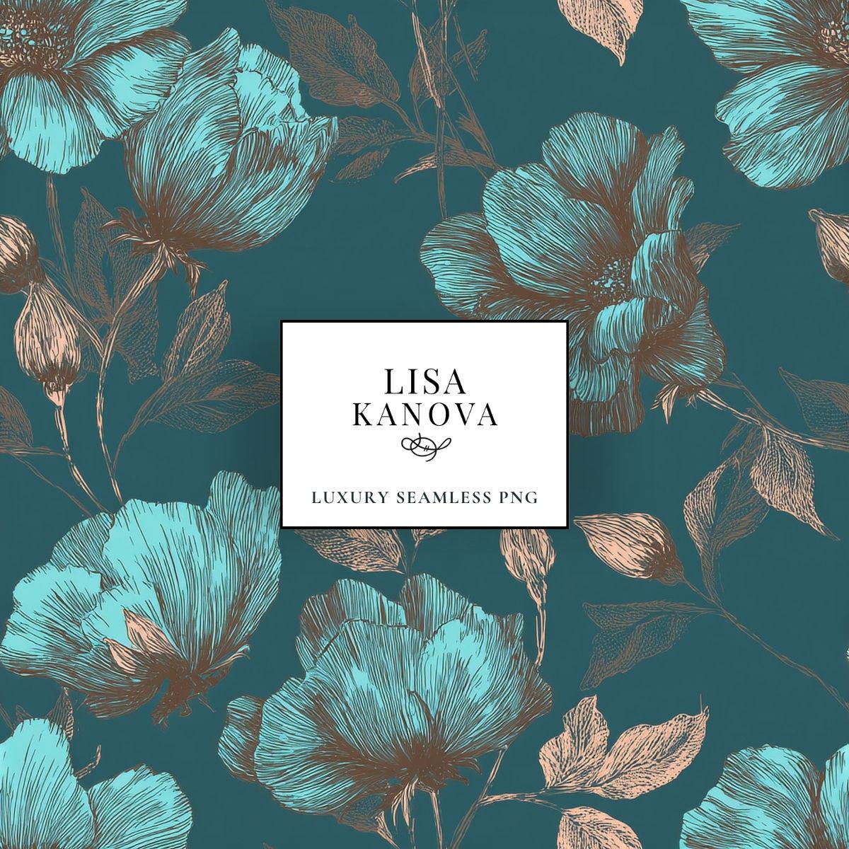 Floral Seamless Pattern Instant Downloadable PNG (3600x3600px) in Tranquility in Teal