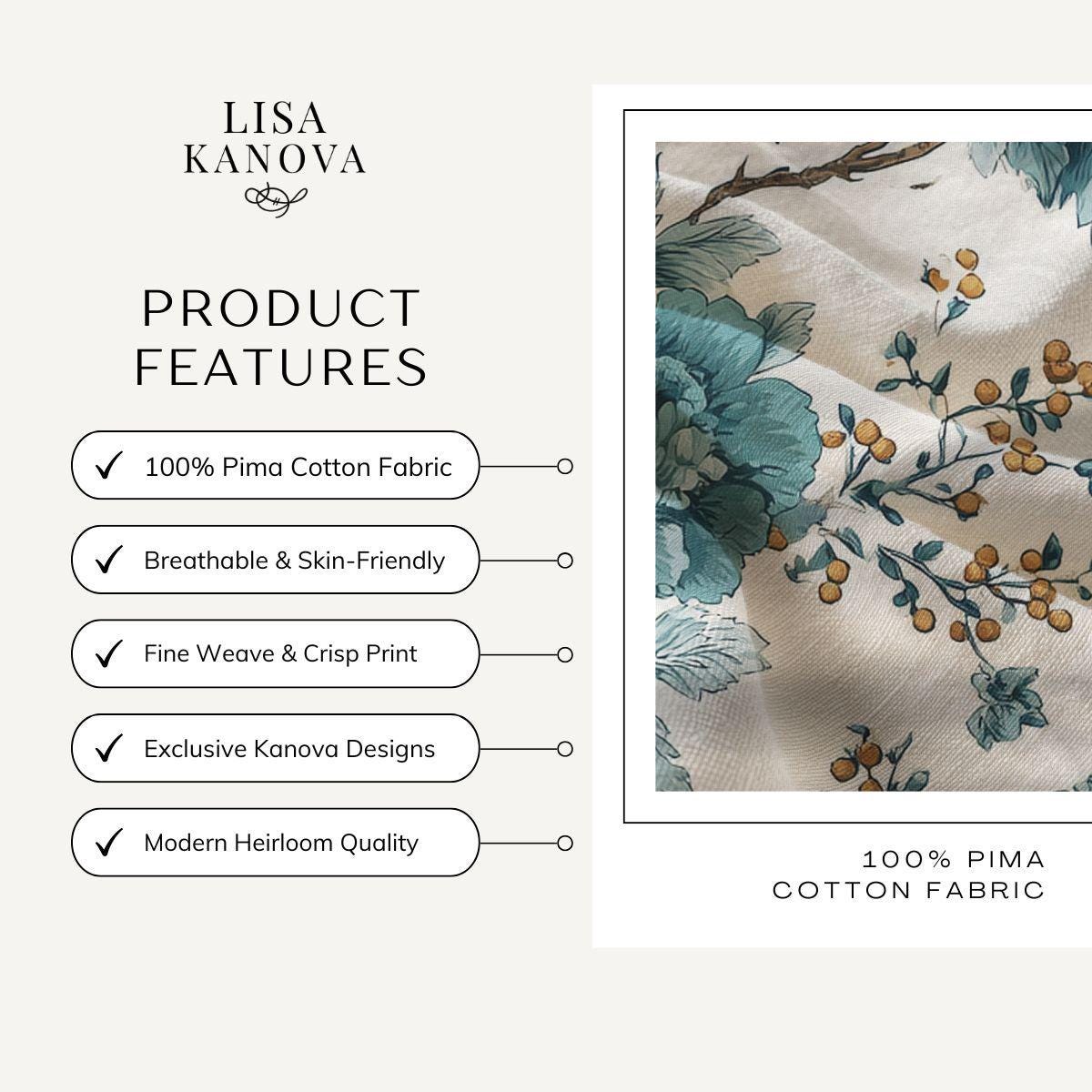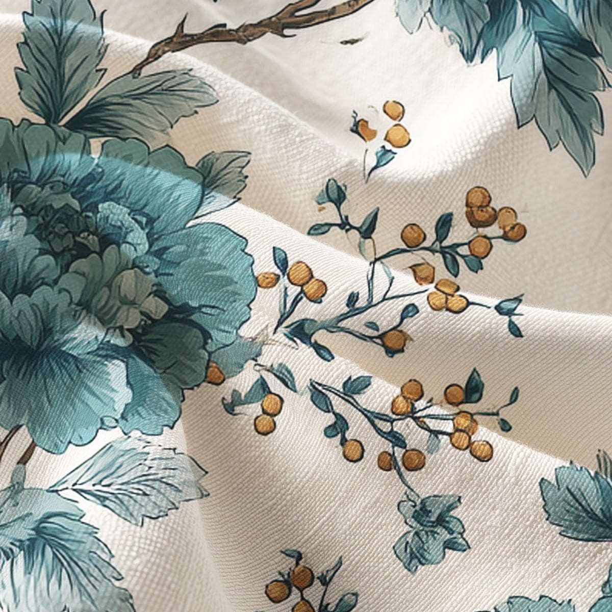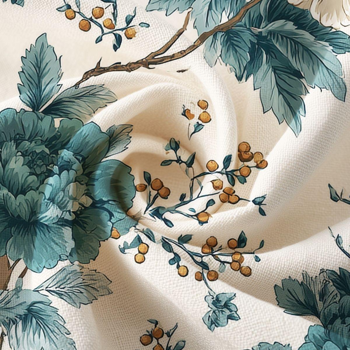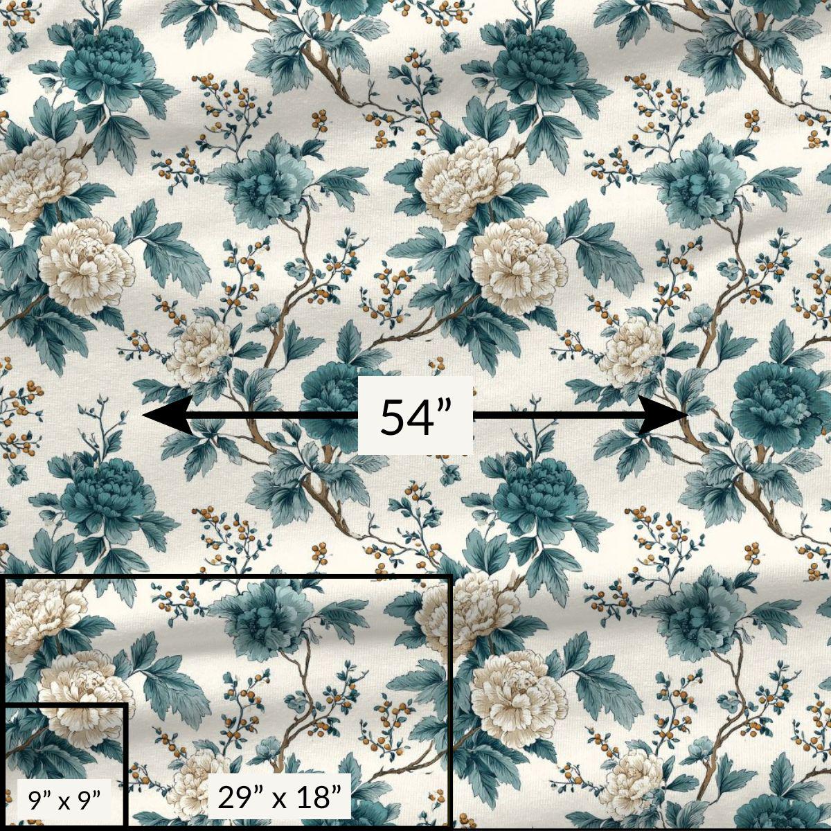 Pima Cotton Fabric, Tempting Teal Garden Toile, Apparel & Home Decor