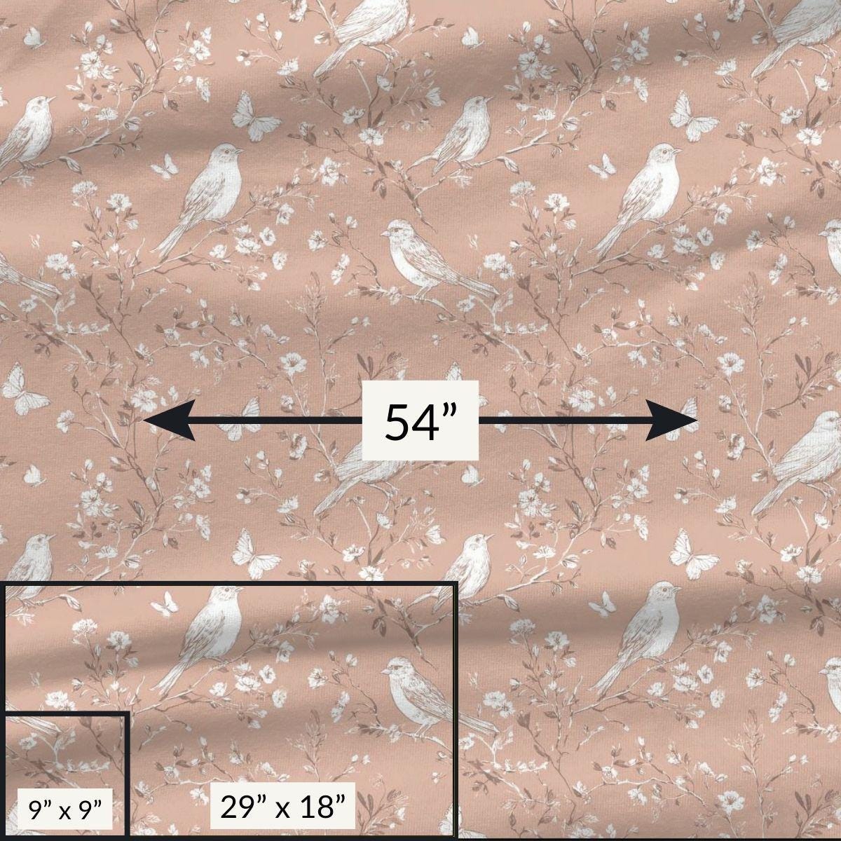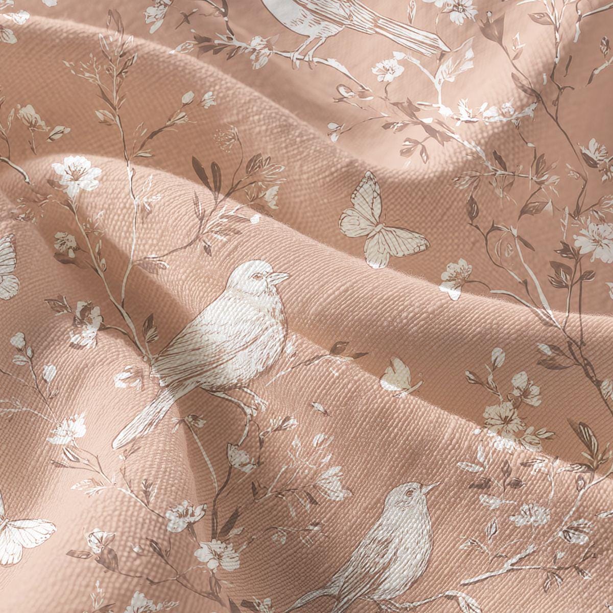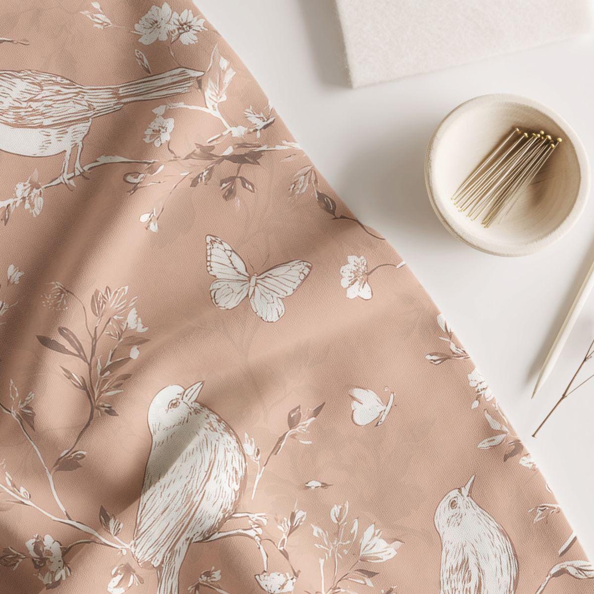 Blush Bloom Pima Cotton Fabric, Birds and Butterflies, Sewing and Home Décor