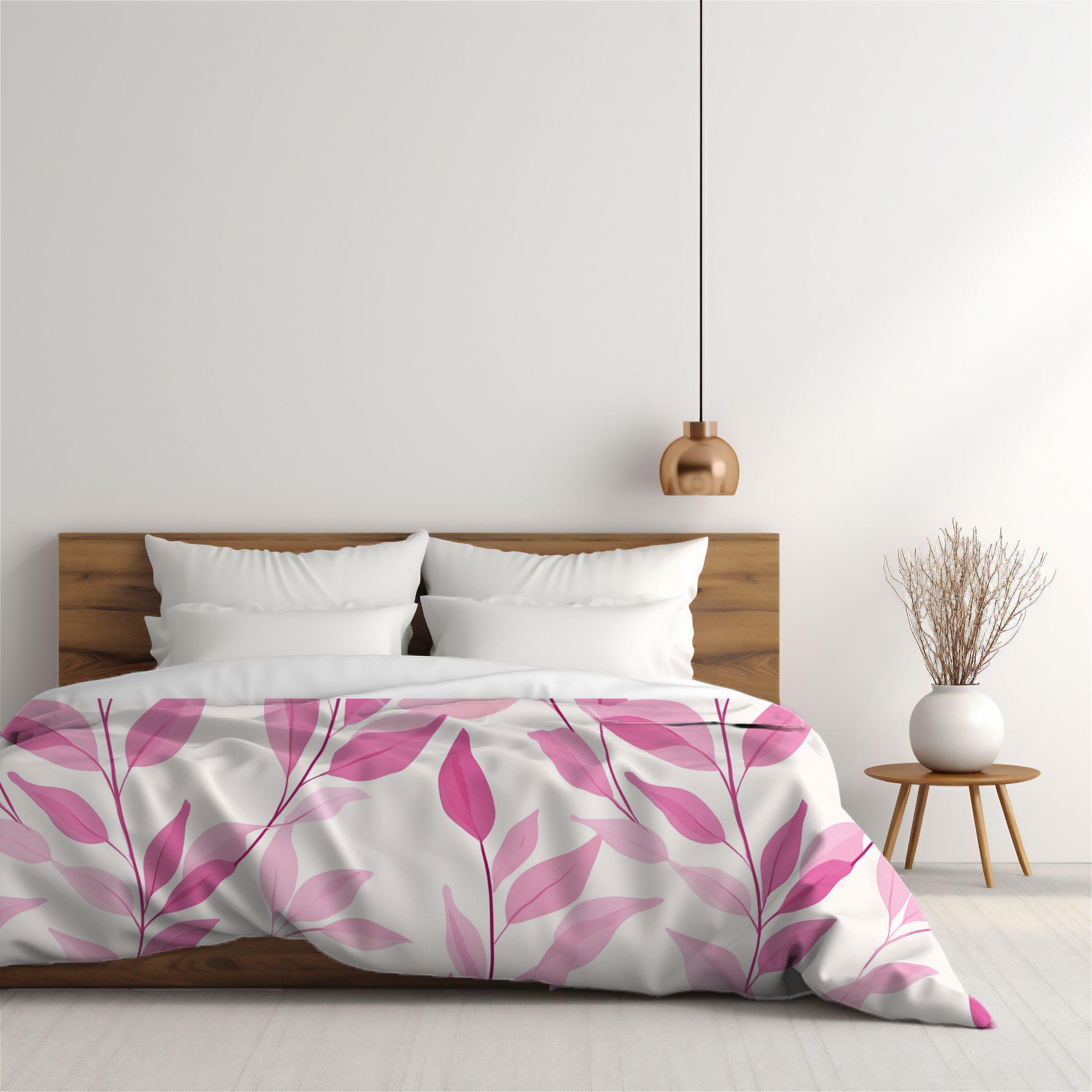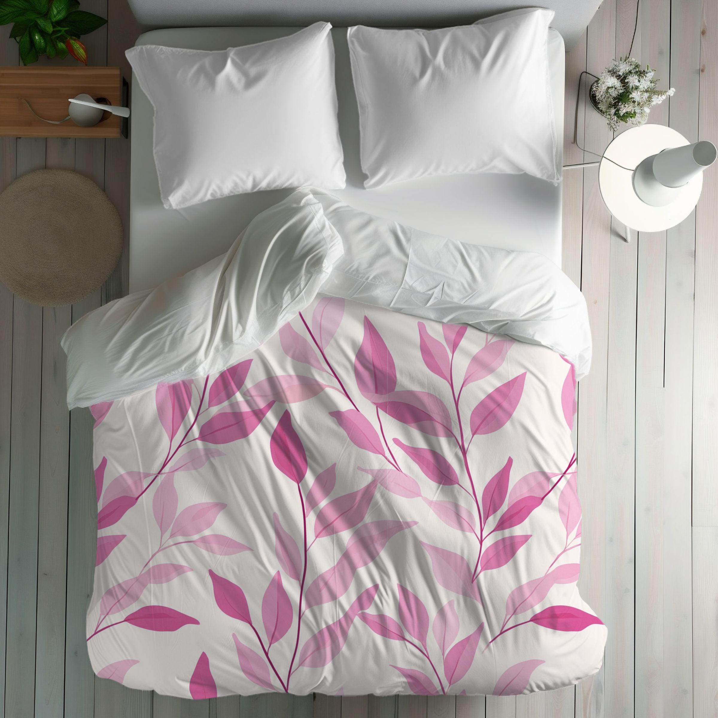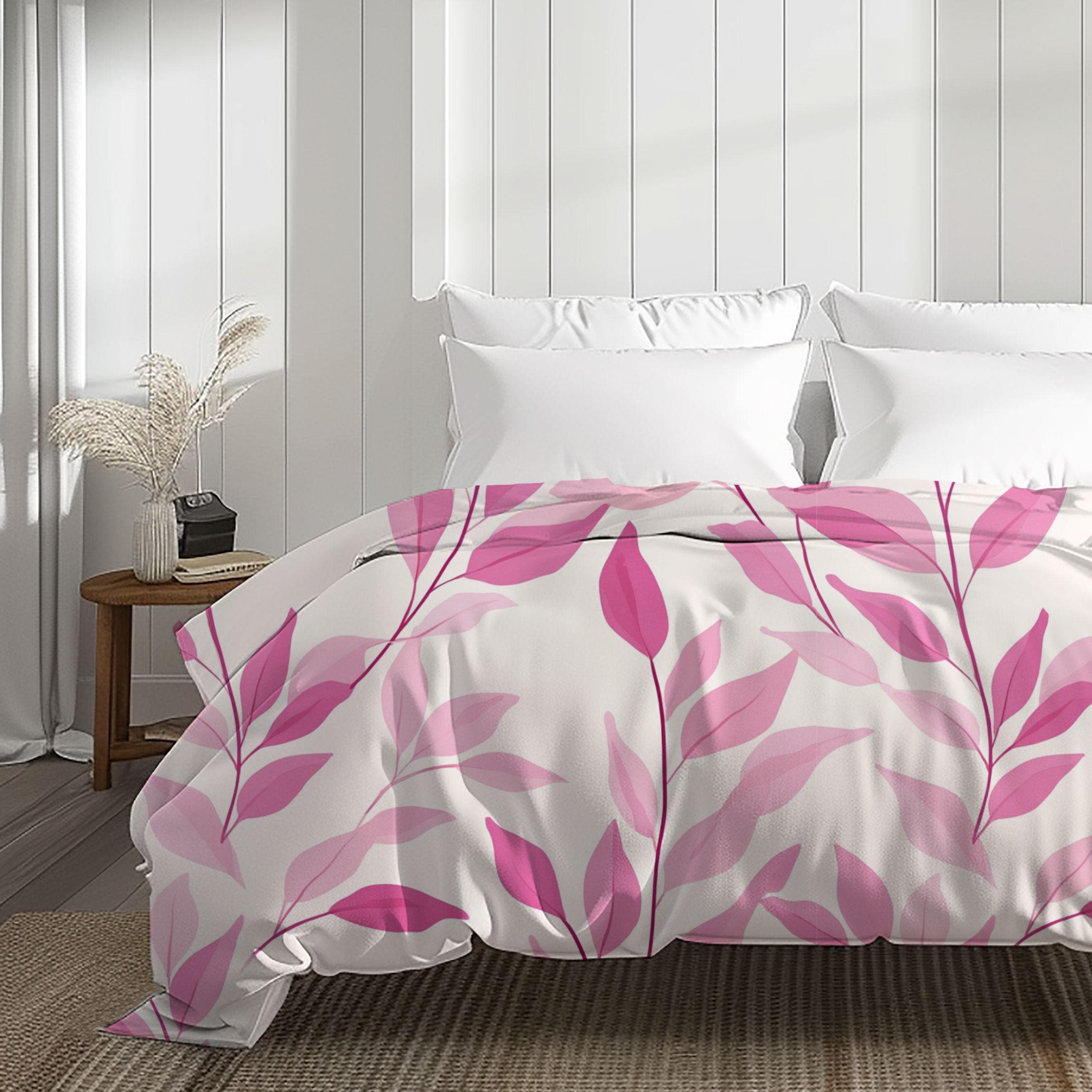 Soft, breathable cotton leaves the day behind. This duvet cover wraps your bed in gentle pink foliage—blush and berry leaves that drift across a clean, white field. It tucks in neatly with an invisible zipper and inside corner ties that hold your insert steady through restless nights. The direct-to-fabric print stays vivid and soft to the touch, wash after wash, so the color feels fresh every morning. Lightweight yet substantial, it brings a calm, uplifted mood to a sunlit bedroom or a cozy studio nook.