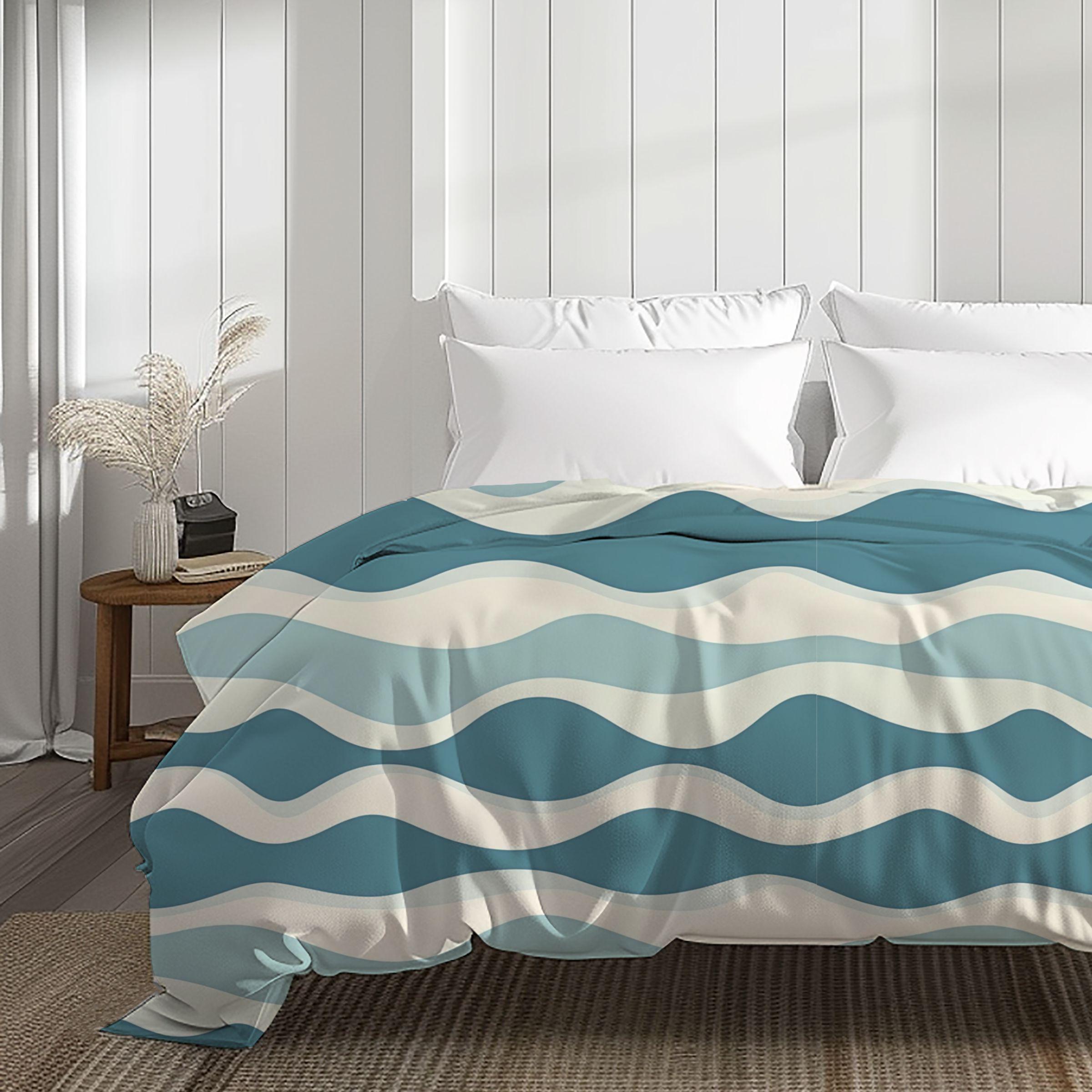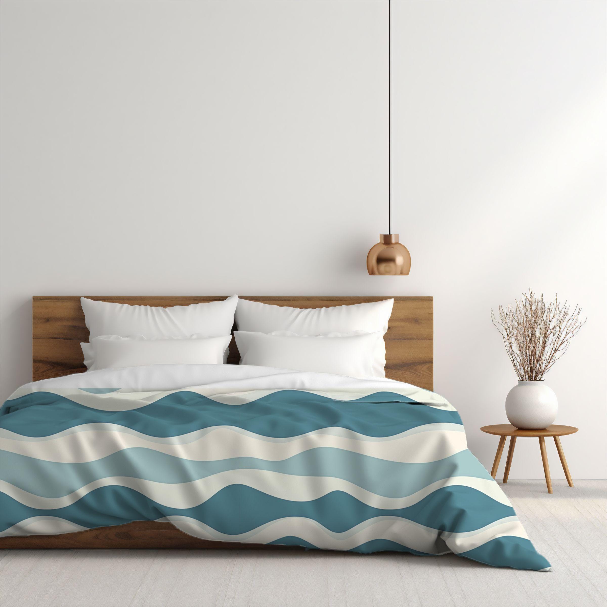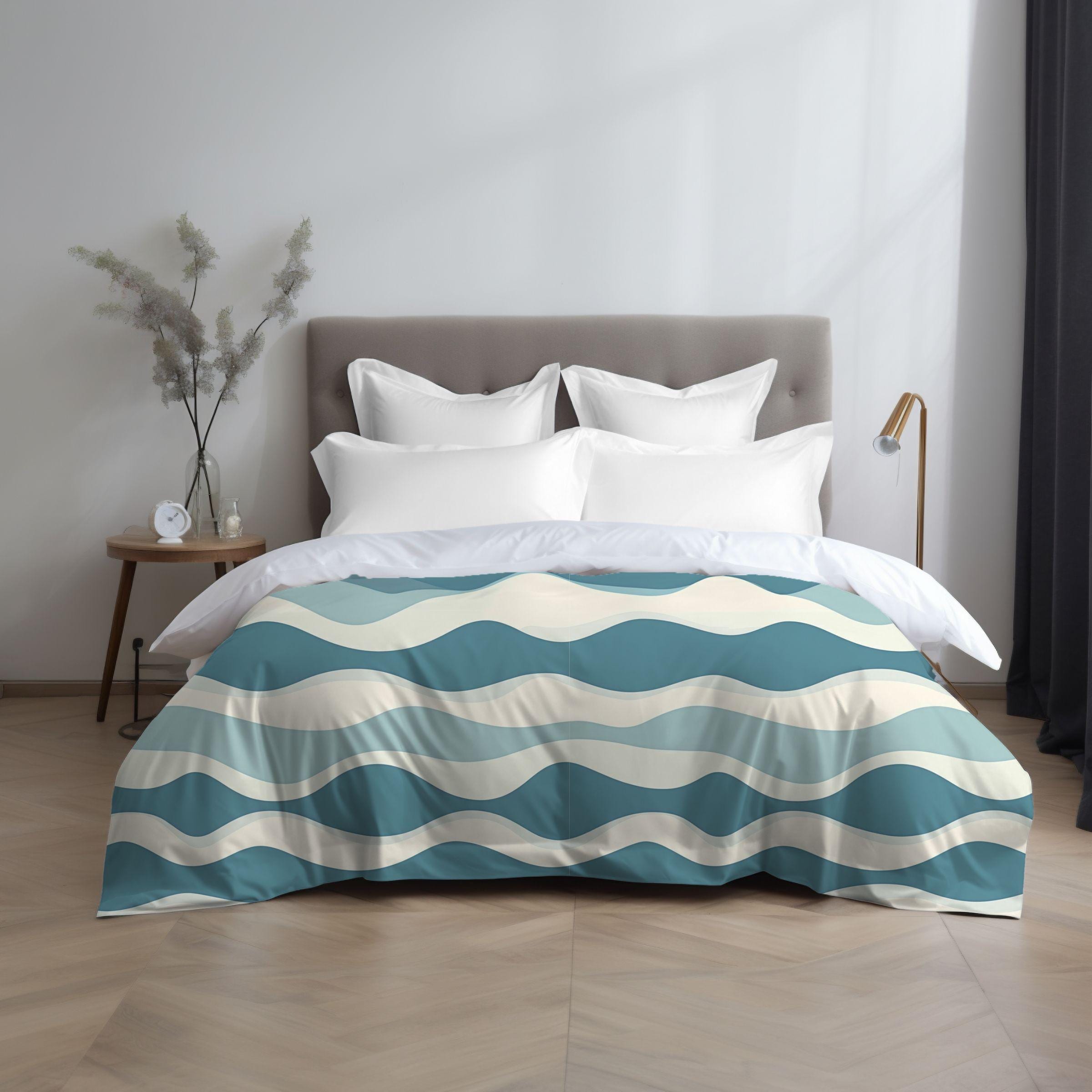 Soft, breathable cotton printed with calming ocean waves — this duvet cover brings a quiet, coastal rhythm to your bedroom. The wavy, hand-drawn pattern in layered blues and creamy neutrals feels like a slow inhale at the water’s edge. Lightweight and breathable, the cotton keeps linens feeling fresh through the seasons while the edge-to-edge direct-to-fabric print stays vivid and soft to the touch. Inside corner ties and an invisible zipper keep your insert in place and the silhouette neat, so the bed looks curated without fuss. Tuck it into a minimalist, Scandinavian, or coastal bedroom to add a composed, soothing focal point for restful mornings and quieter evenings.