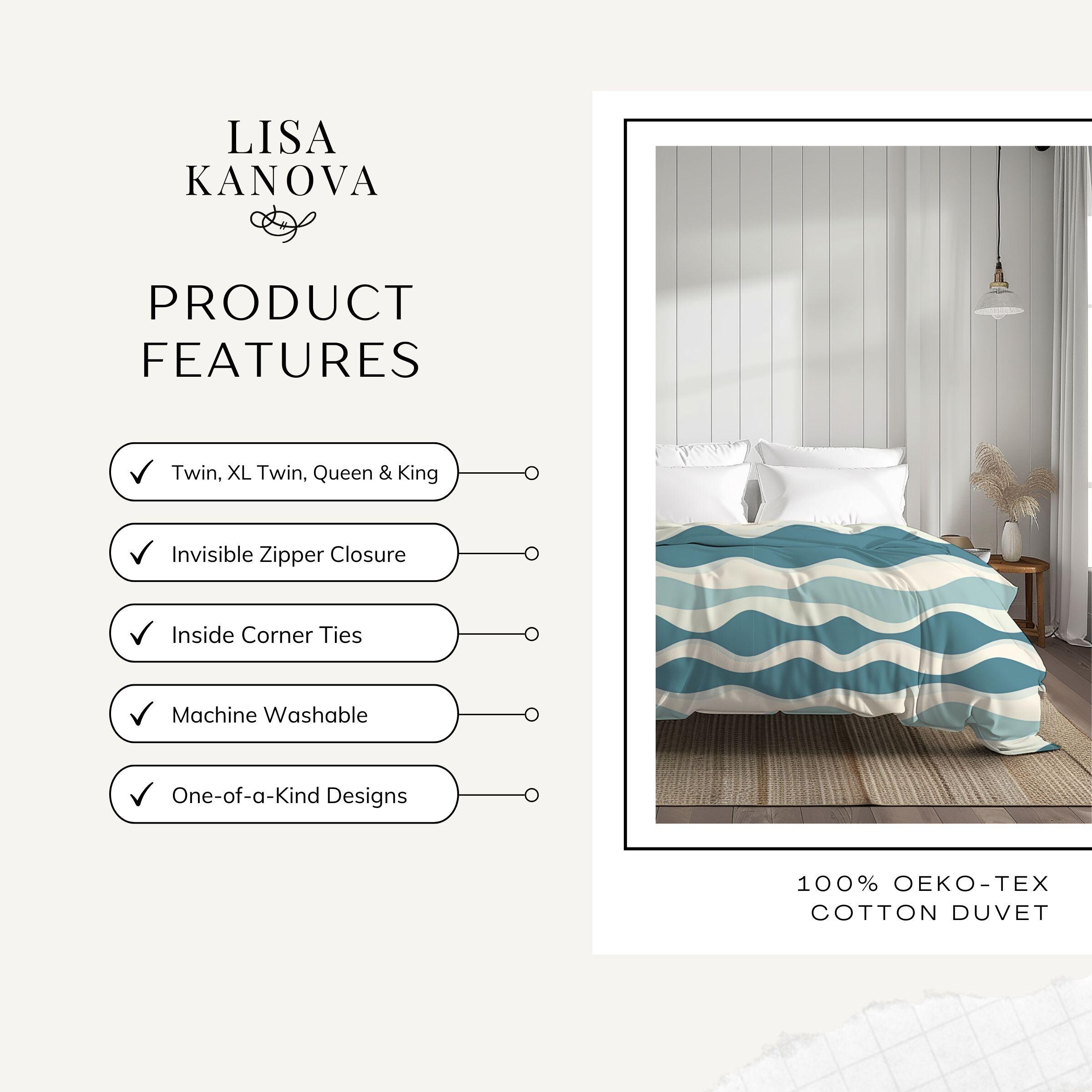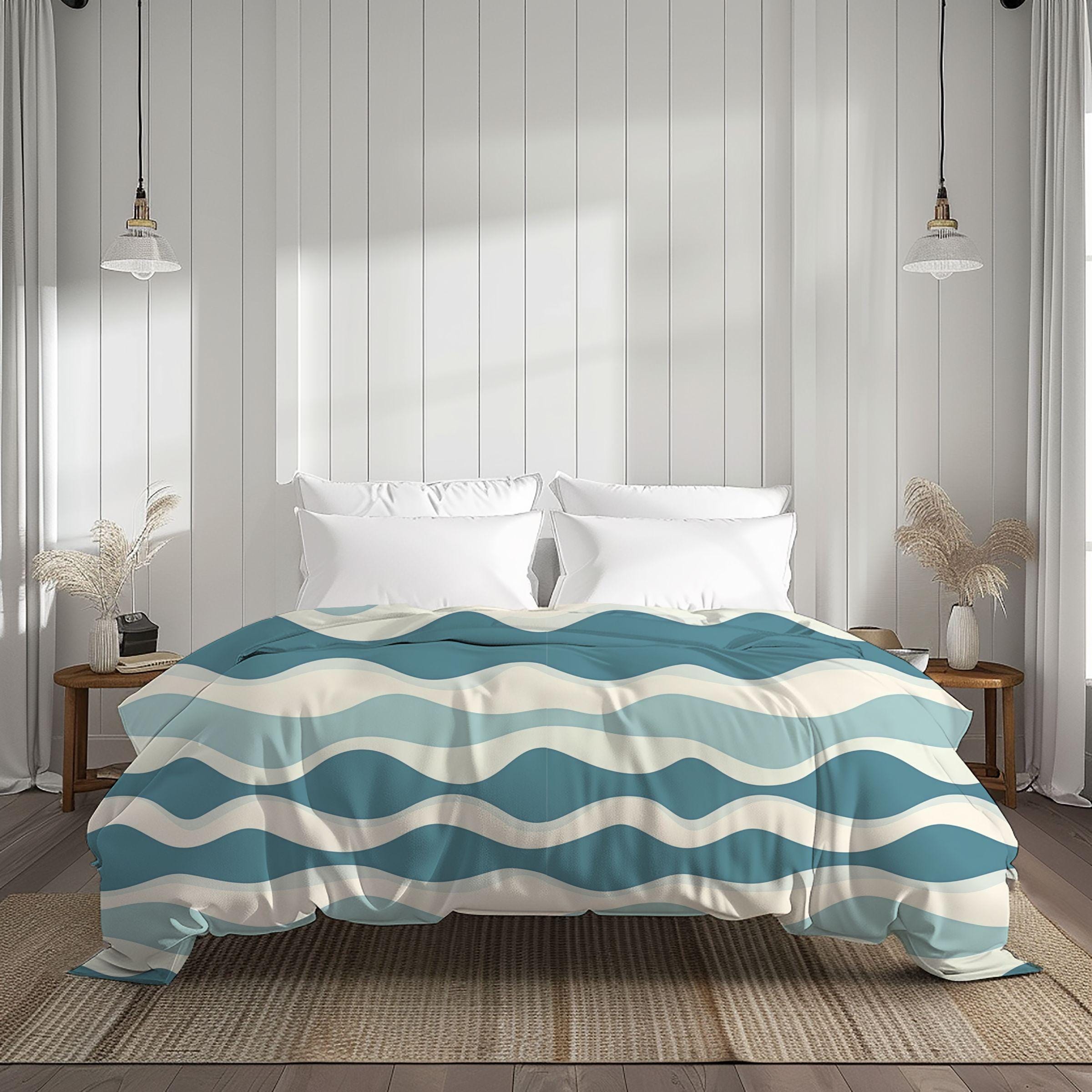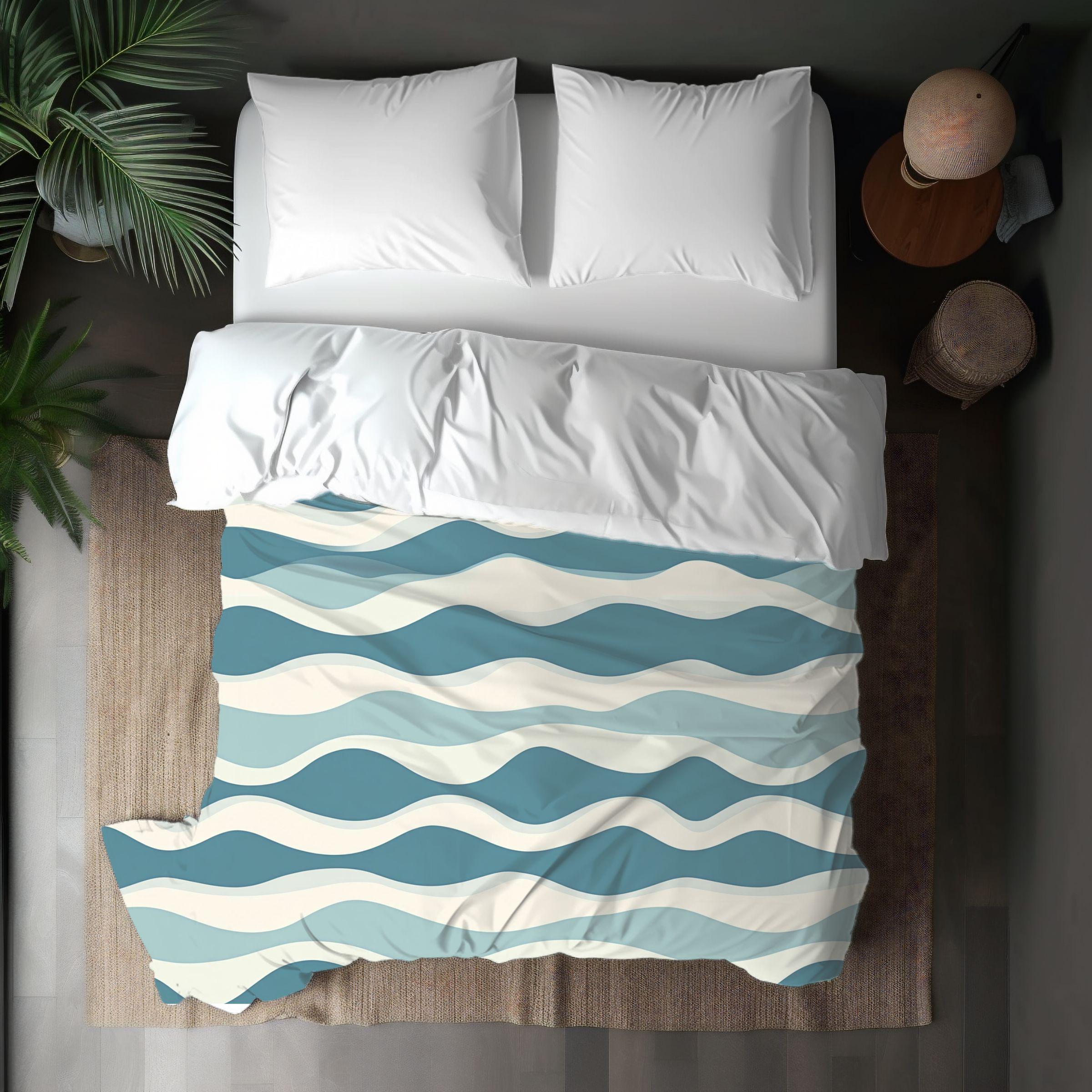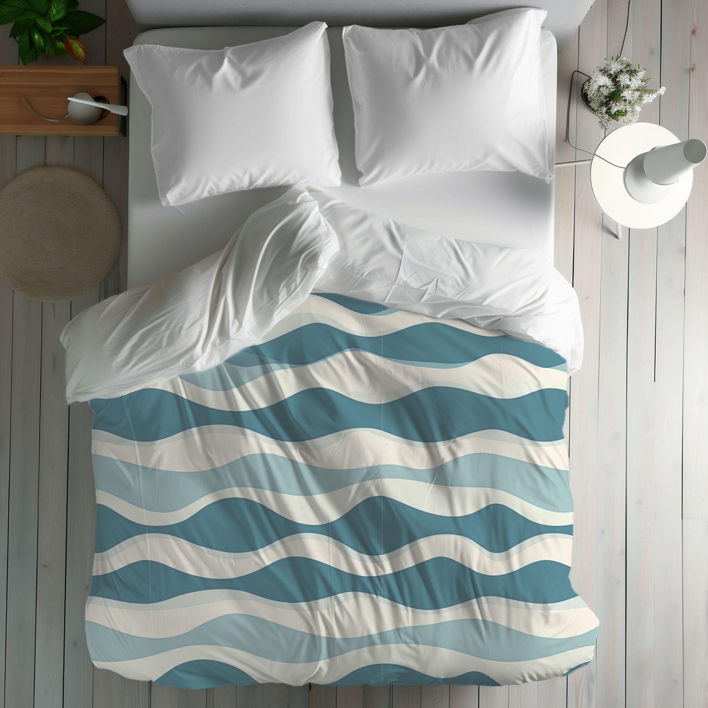 Soft, breathable cotton printed with calming ocean waves — this duvet cover brings a quiet, coastal rhythm to your bedroom. The wavy, hand-drawn pattern in layered blues and creamy neutrals feels like a slow inhale at the water’s edge. Lightweight and breathable, the cotton keeps linens feeling fresh through the seasons while the edge-to-edge direct-to-fabric print stays vivid and soft to the touch. Inside corner ties and an invisible zipper keep your insert in place and the silhouette neat, so the bed looks curated without fuss. Tuck it into a minimalist, Scandinavian, or coastal bedroom to add a composed, soothing focal point for restful mornings and quieter evenings.