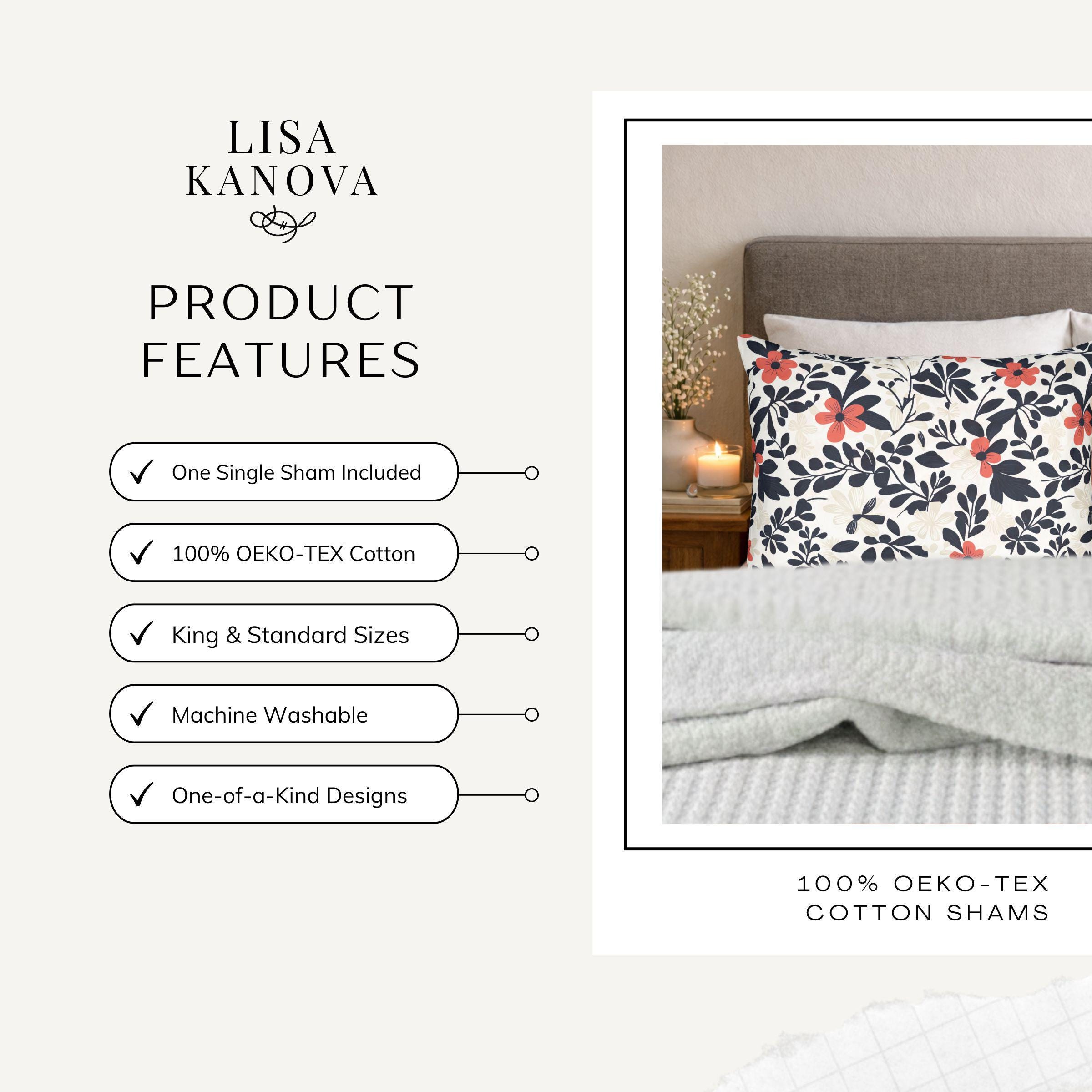 Soft, breathable cotton with a hand-finished look — this pillow sham brings a calm, cottage-garden energy to your bedroom or living room. The printed floral motif in warm coral and deep navy drifts across a creamy background, creating a cozy, vintage-inspired mood. Slip it over your existing insert to refresh a worn sofa, add a layer to a guest bed, or tuck it into a reading nook. The natural cotton feels cool to the touch and wears well with repeated use and washes, so the pattern stays lively without stiffening or fading. It’s an easy way to introduce pattern and color into quiet, everyday spaces and to make mornings feel gentler and evenings more relaxed.