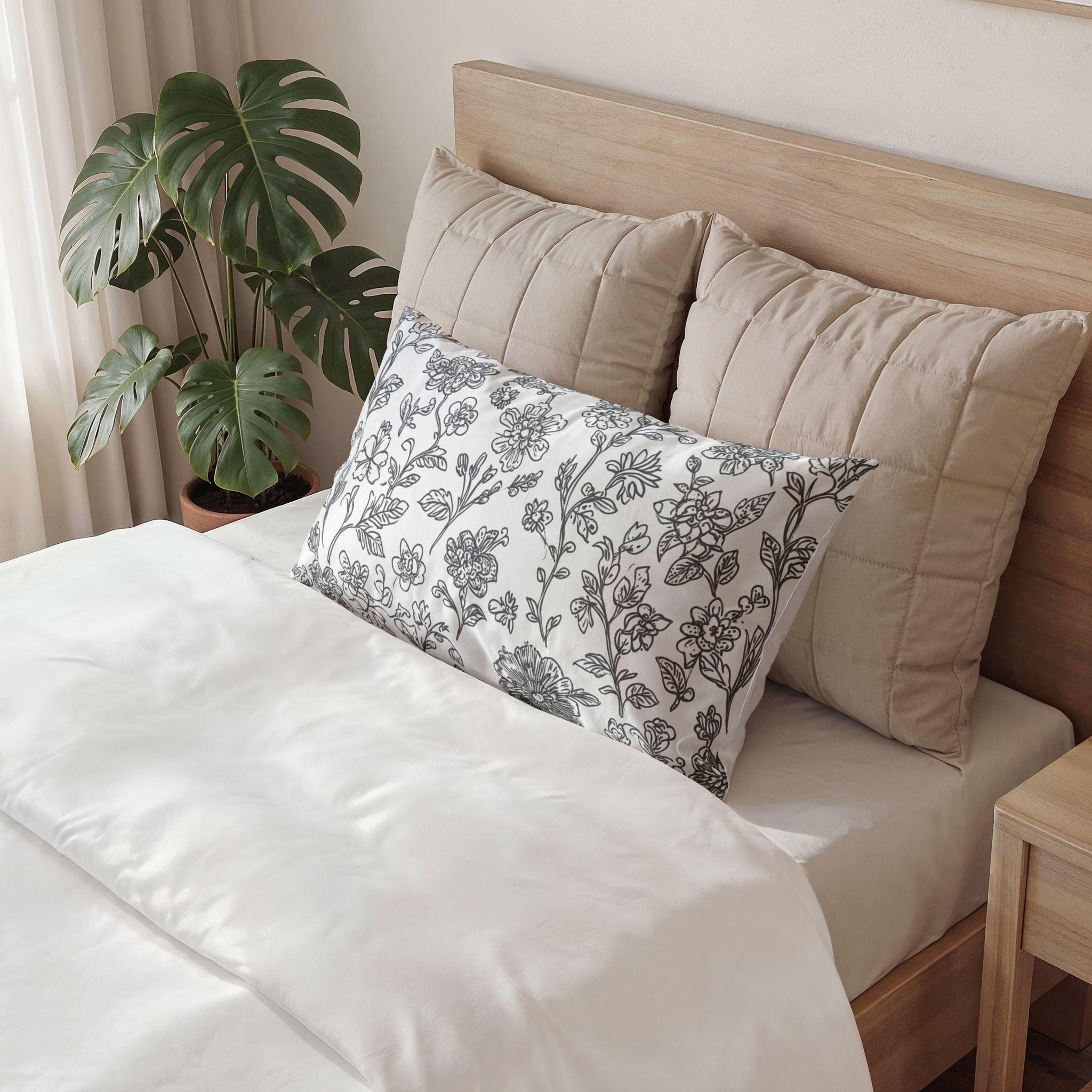 Soft, breathable cotton pillow shams that bring a calm, hand-drawn floral touch to your resting spaces. The finely spun 100% Oeko‑Tex certified cotton feels smooth against the skin and holds detailed prints with gentle clarity. Choose between two rectangular sizes to layer on a bed or tuck into a cozy reading nook. The neutral, sketch-like floral design blends with vintage linens or modern minimalism, adding quiet pattern without overwhelming the room. These shams work well on slow mornings, lazy afternoons with a book, or during relaxed gatherings when you want the home to feel lived-in and gentle.