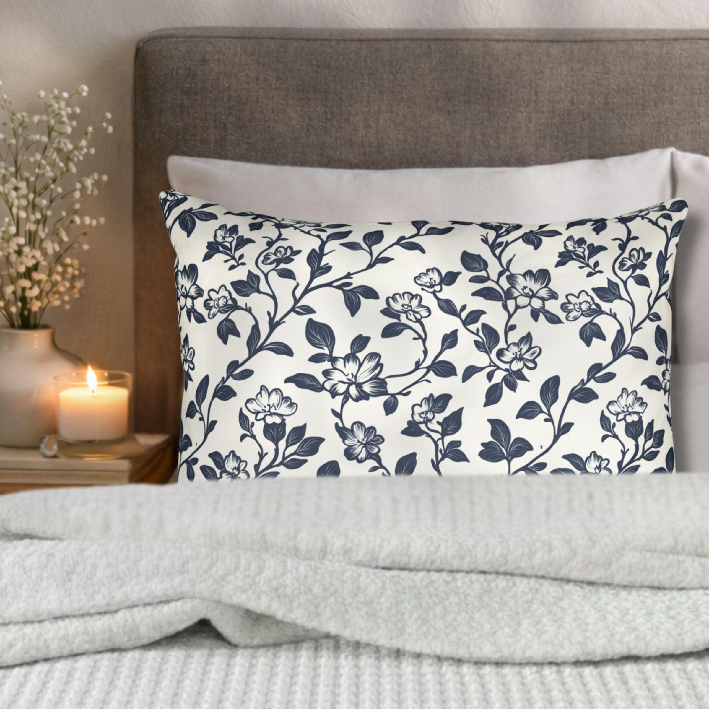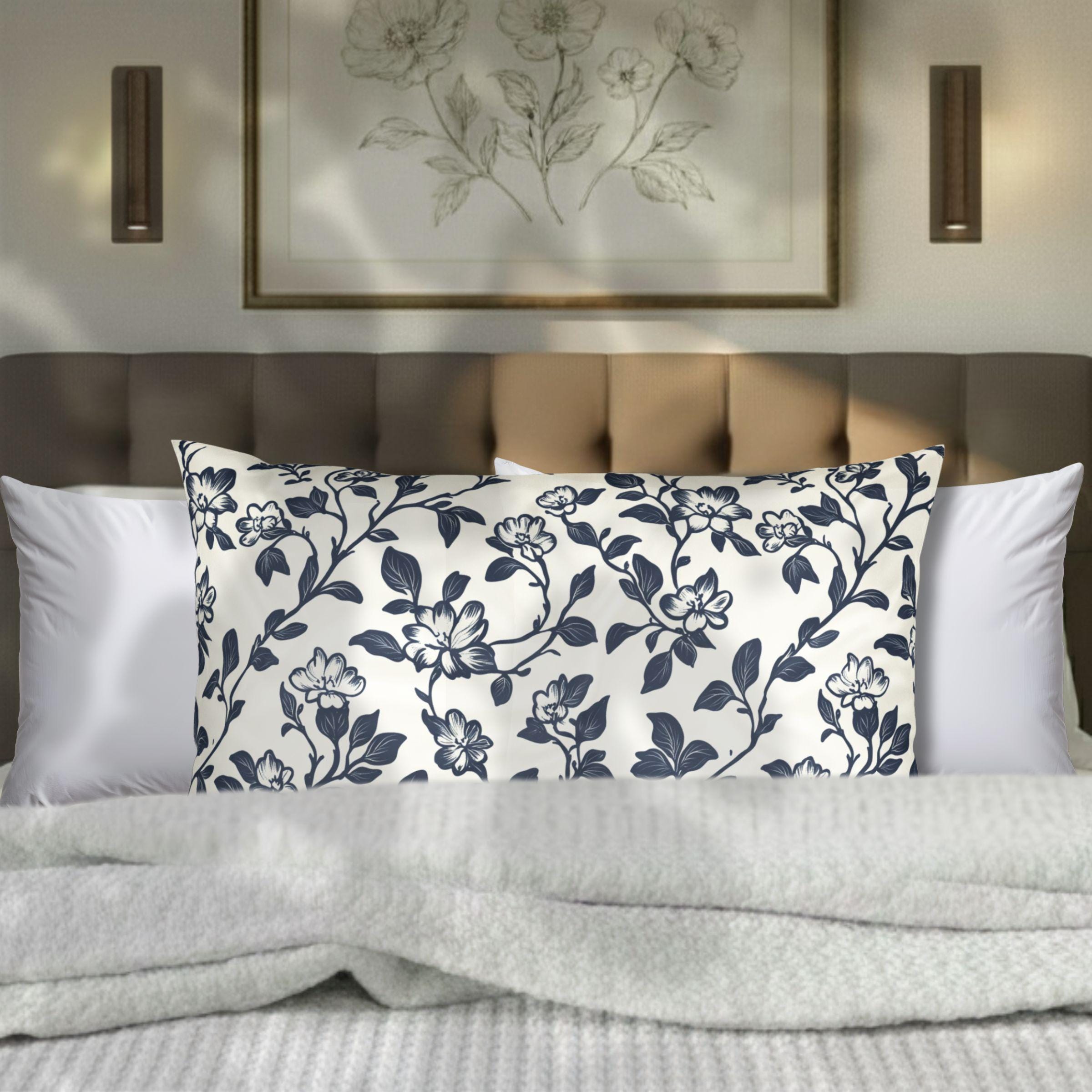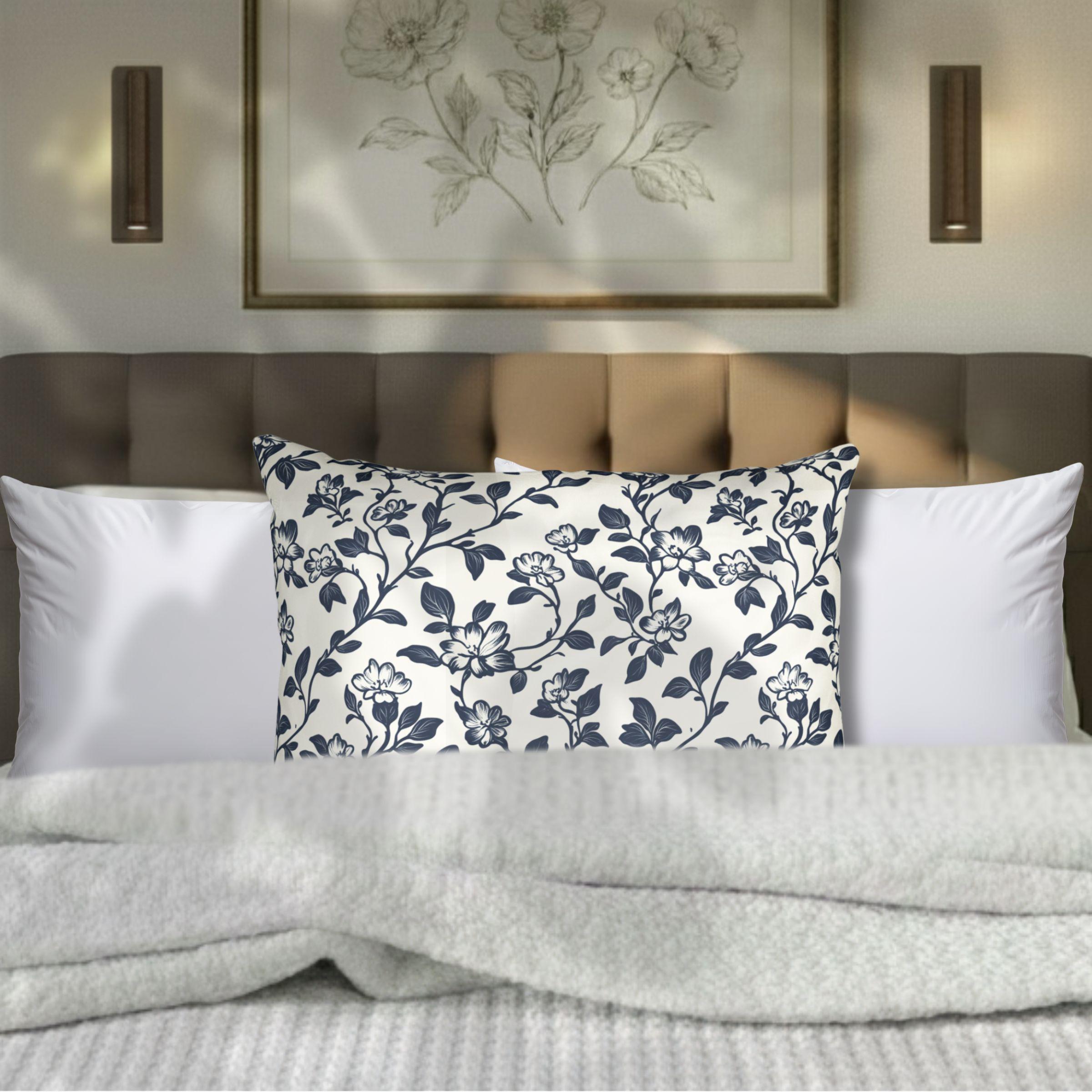 Bring a quiet, lived-in elegance to your sofa or bed with this breathable cotton pillow sham. The soft, tightly spun fibers hold detailed prints beautifully, so the delicate navy floral comes through crisp against the clean white background. It settles into a relaxed, cottage-core or coastal-inspired room with subtle charm — the kind of piece you notice after a long day when you want something calm to lean against. Lightweight and natural-feeling, the sham layers easily with textured throws and linen cushions for cozy evenings, slow mornings, and laid-back gatherings where comfort matters more than formality.