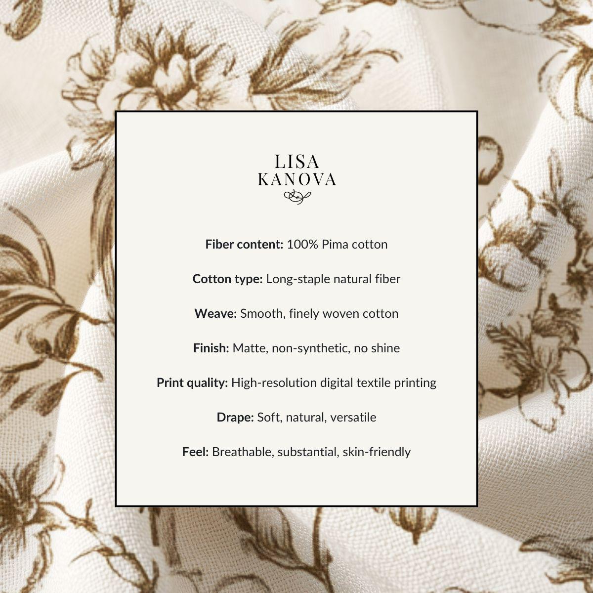 This premium 100% Pima cotton fabric is designed for makers who care about how fabric feels, wears, and lasts — not just how it looks. Woven from long-staple Pima cotton fibers, this textile offers exceptional softness, breathability, and strength, with a smooth hand feel that improves over time.