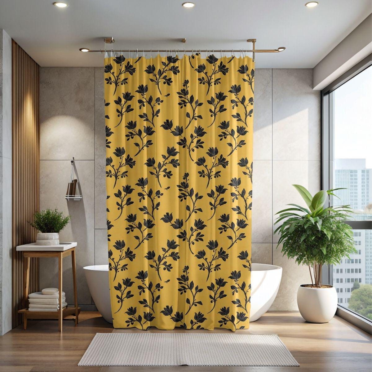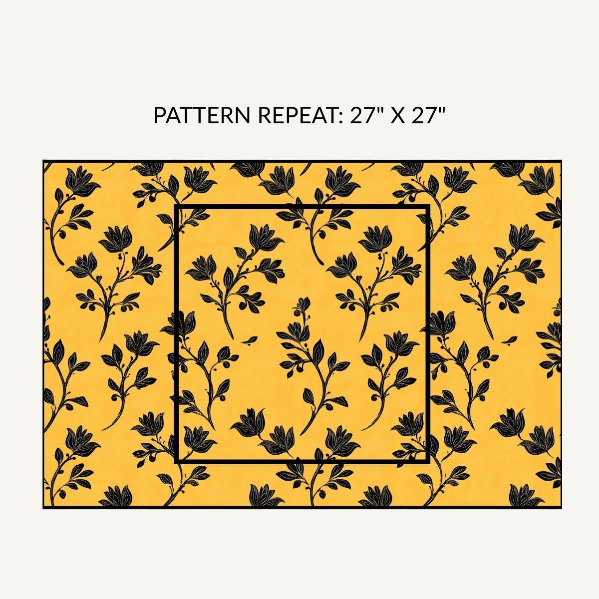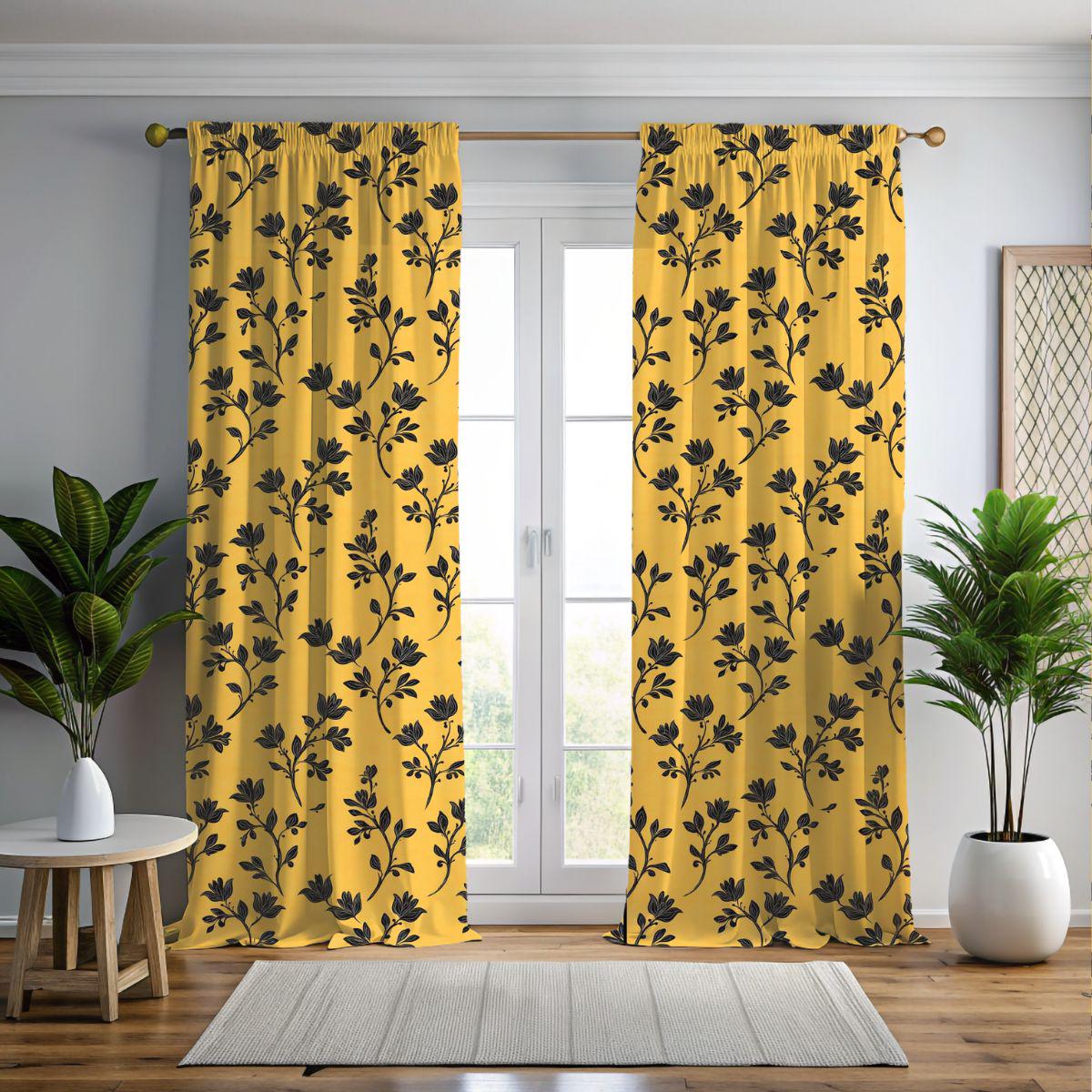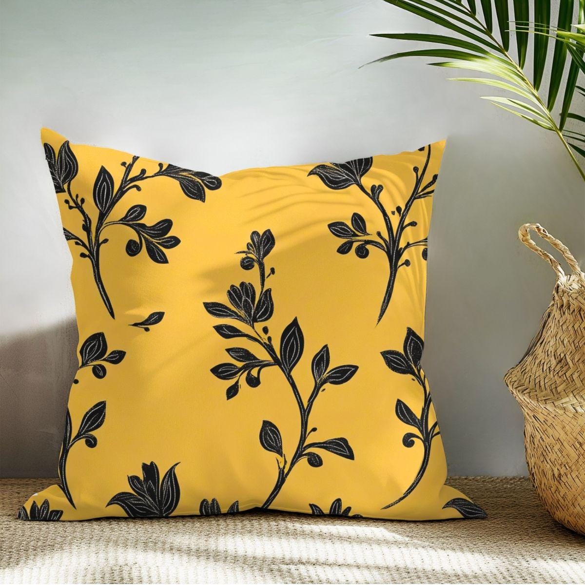 - Artful black botanical print on a warm golden background