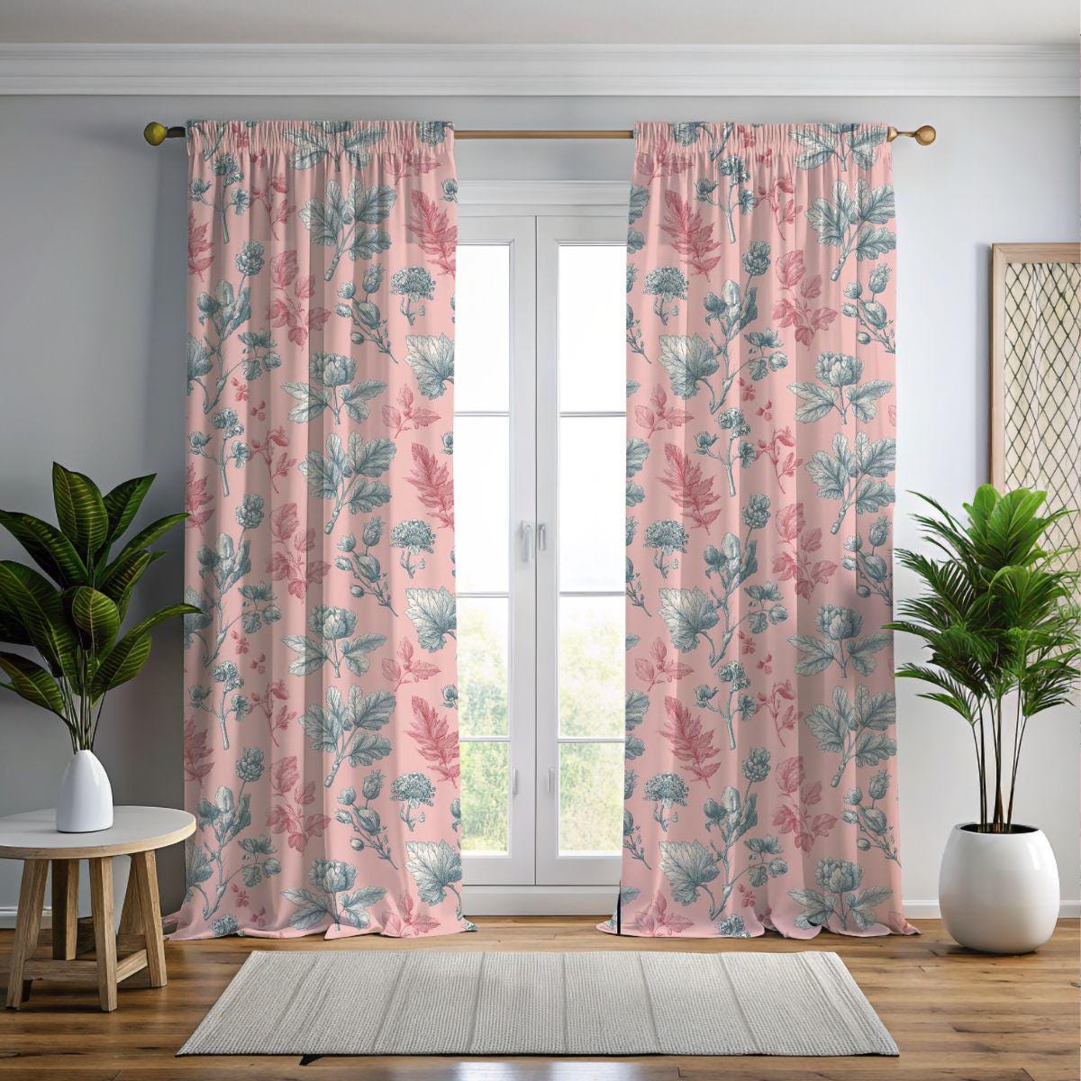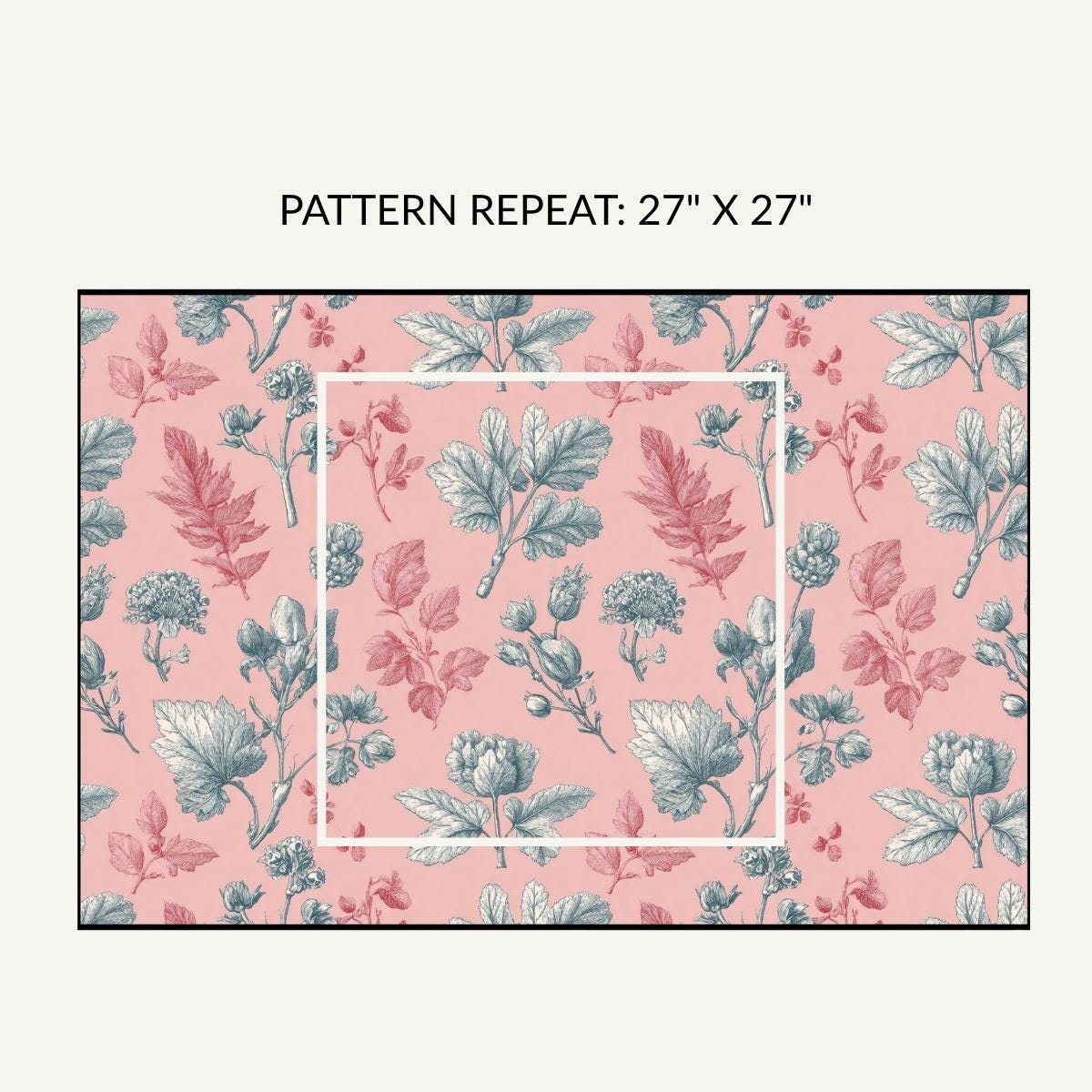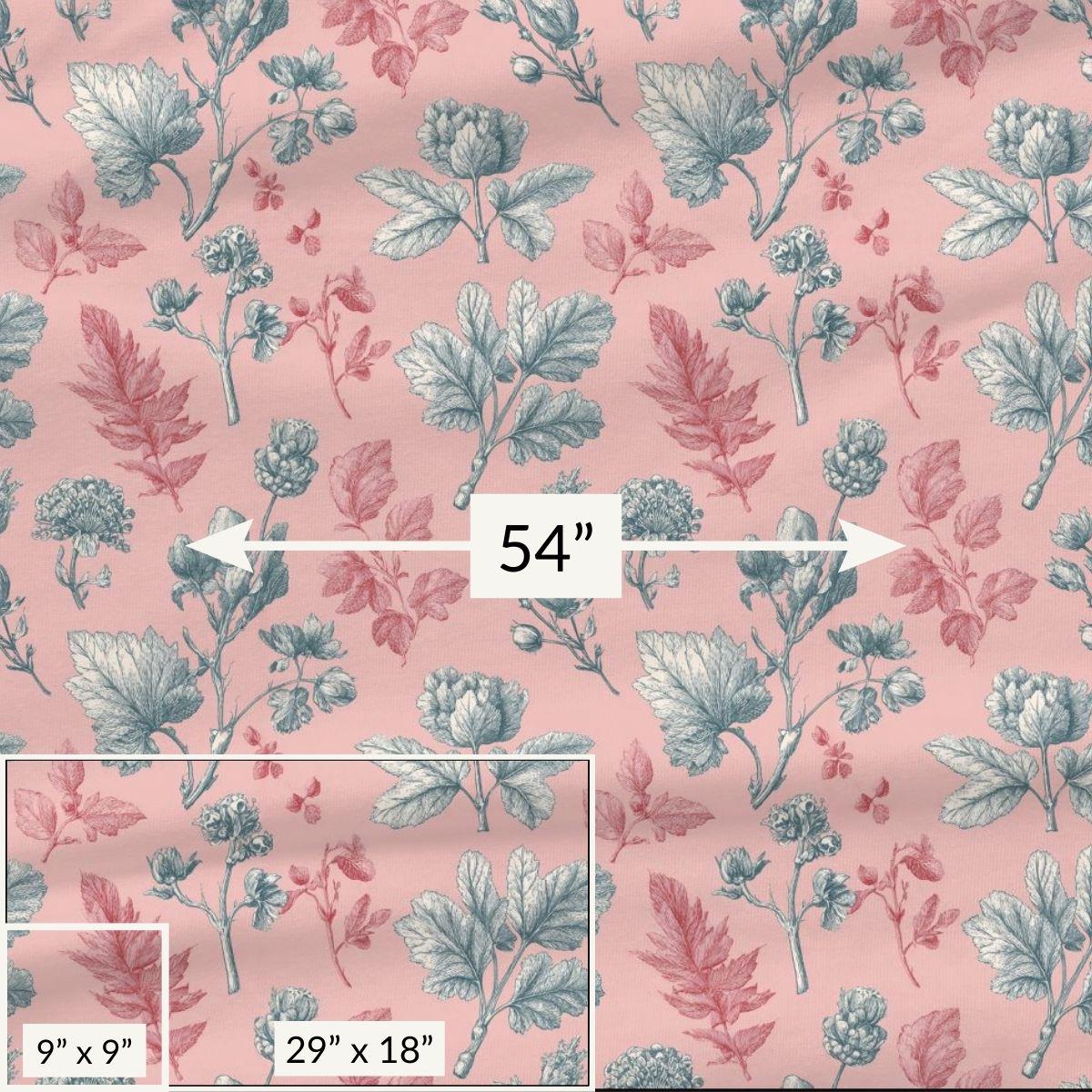 - Delicate vintage botanical print in rose-pink and grey-blue tones