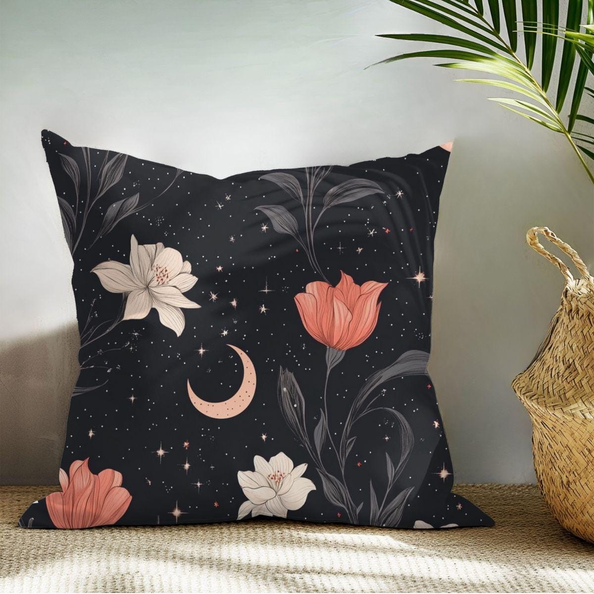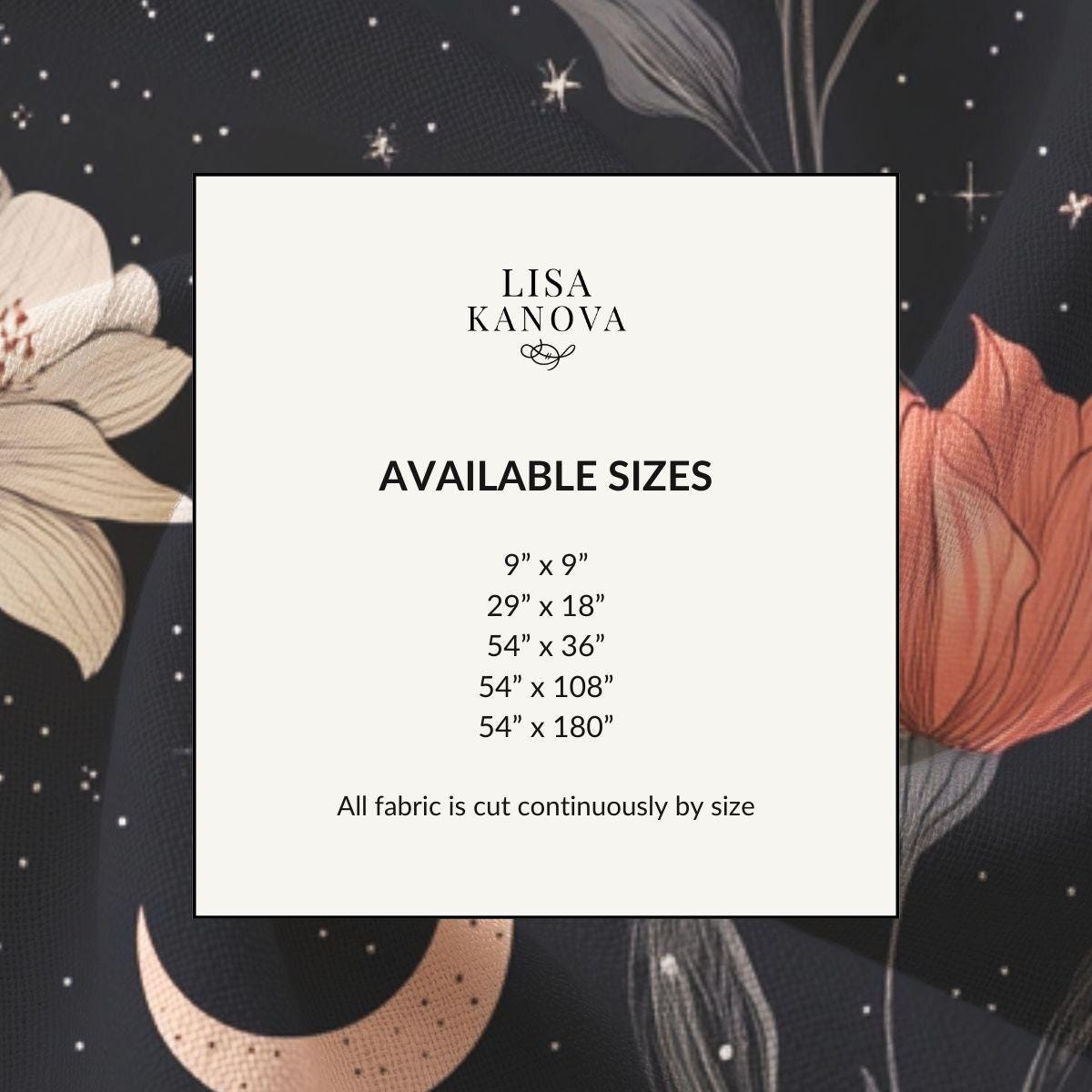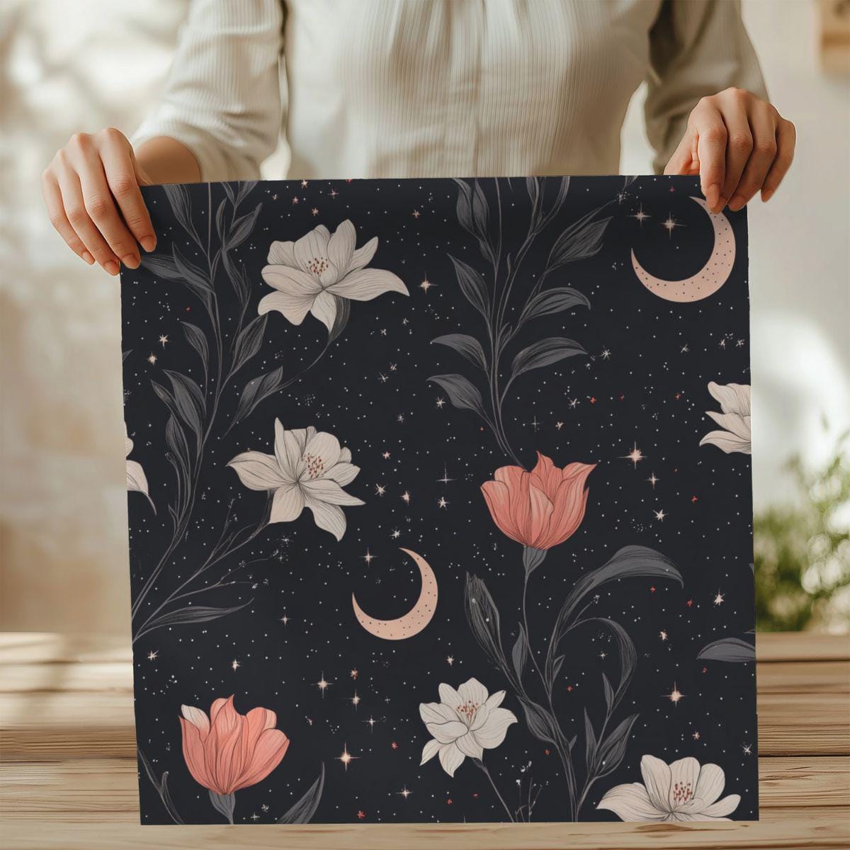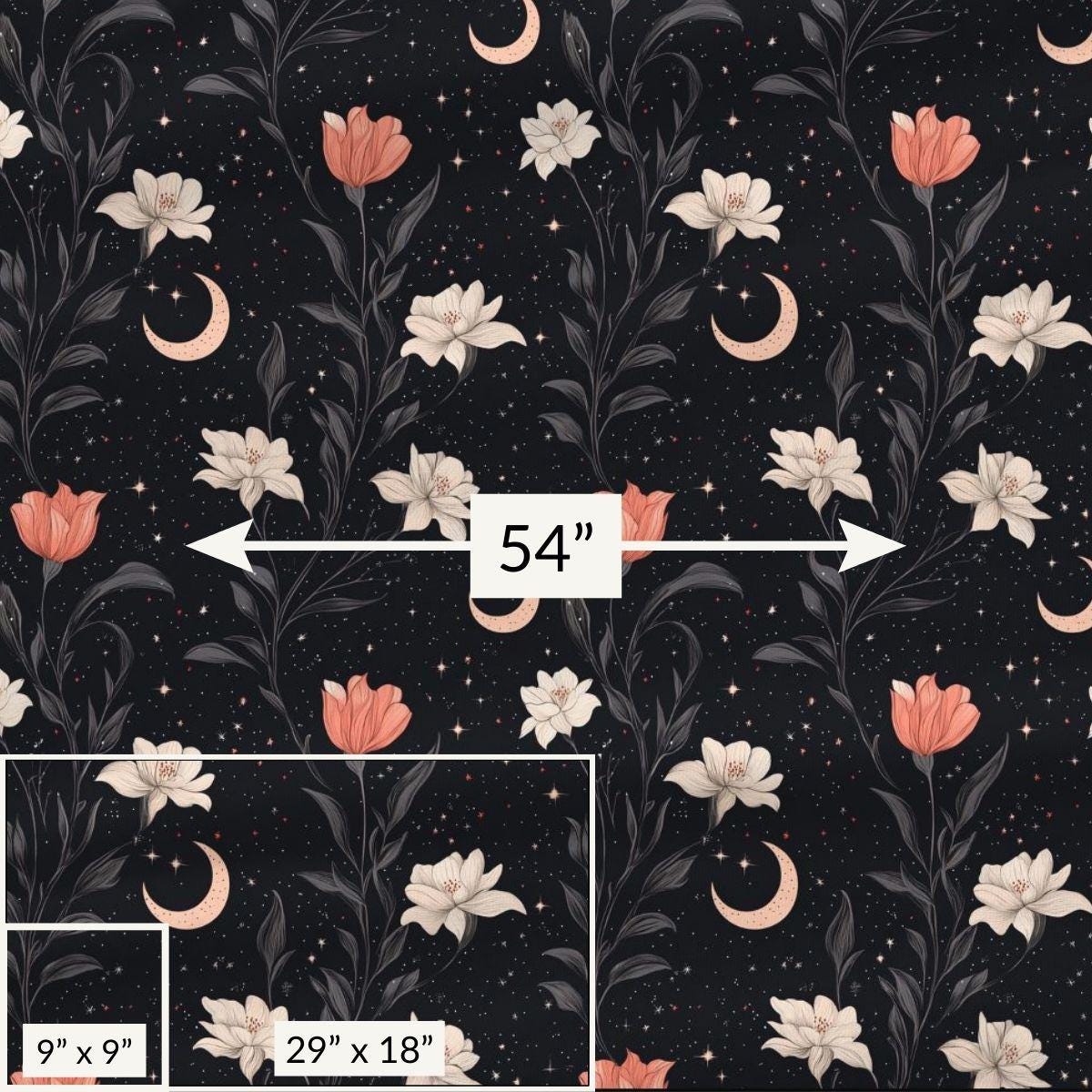Wrap yourself in a whisper of night-blooming magic. This soft pima cotton piece features a deep, star-speckled background dotted with crescent moons and delicate blossoms in blush and cream. The fabric drapes gently, carrying a quiet, cozy elegance — like stepping into a calm evening garden. Wear or display it when you want to feel grounded and tender: an understated statement that reads as both romantic and thoughtfully modern. The small-scale celestial print blends with organic florals, so it layers beautifully with neutral basics or evening loungewear. Meant for slow mornings, moonlit walks, and cups of tea that stretch into soft conversation.