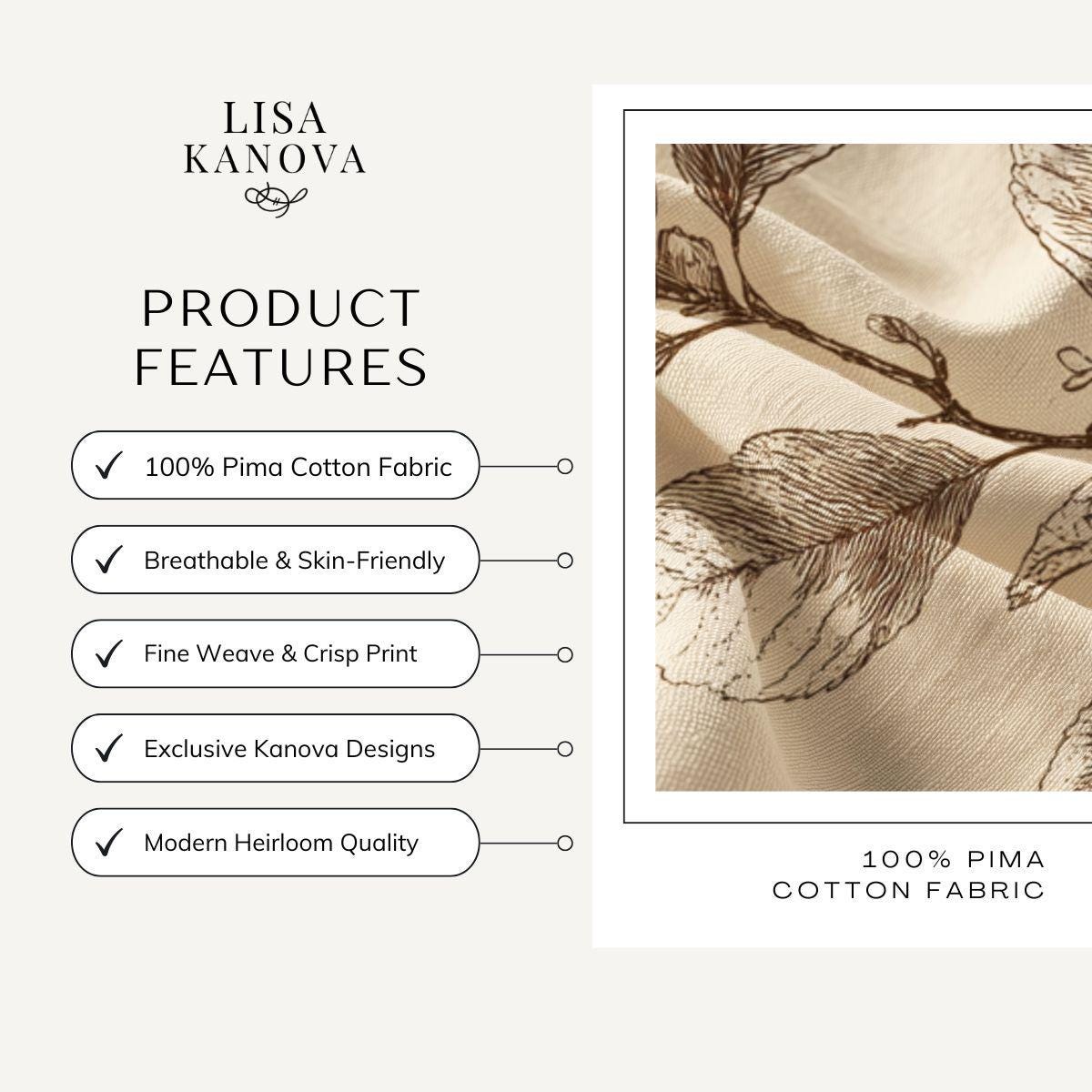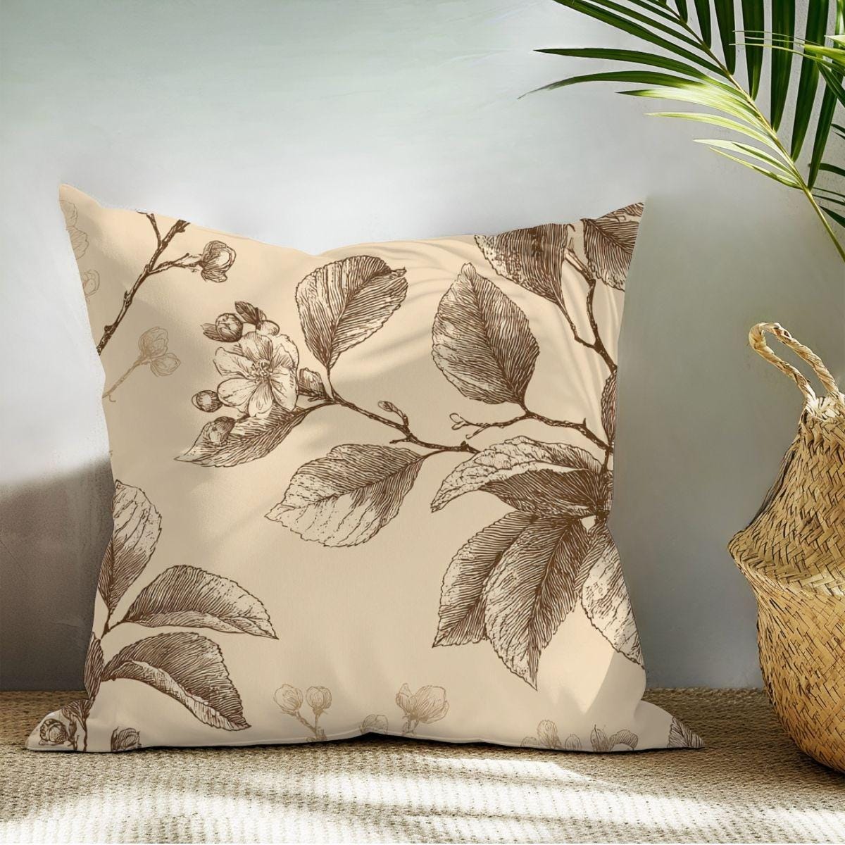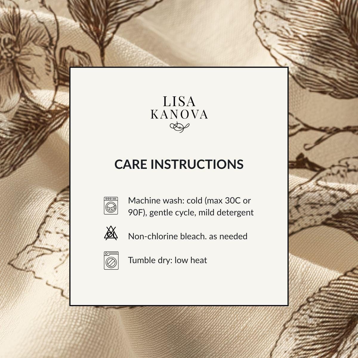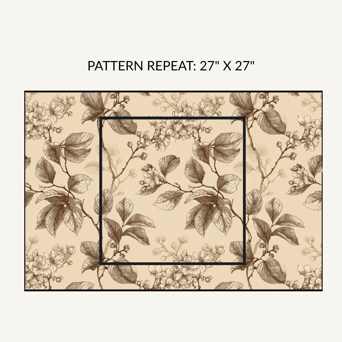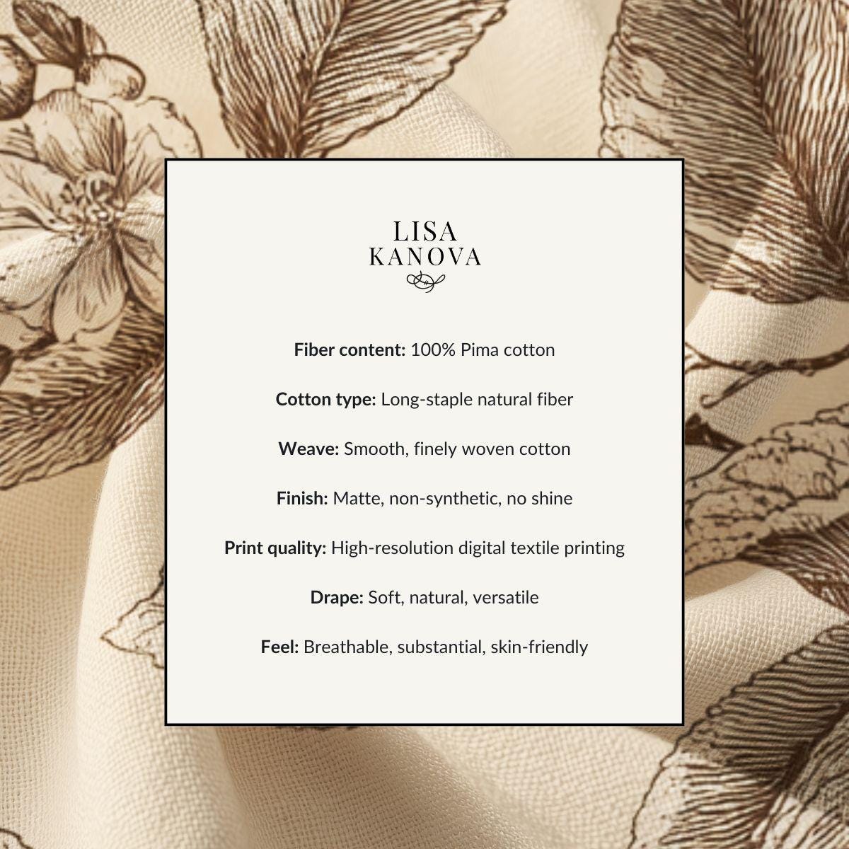 - Delicate sepia botanical print on warm cream background