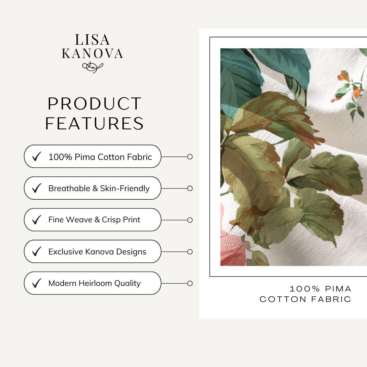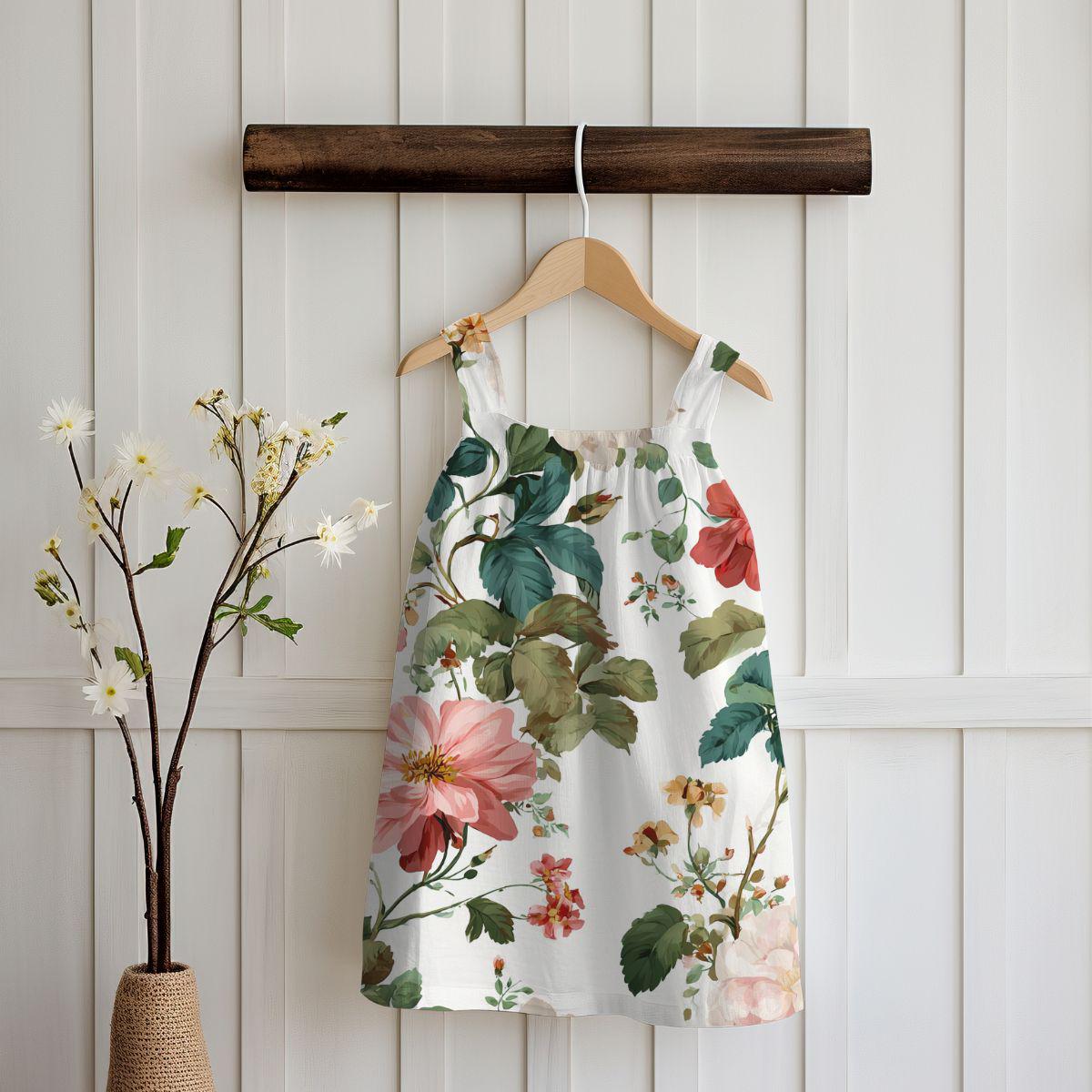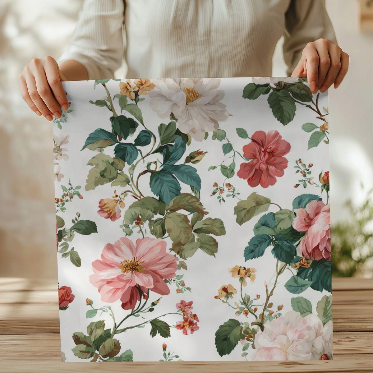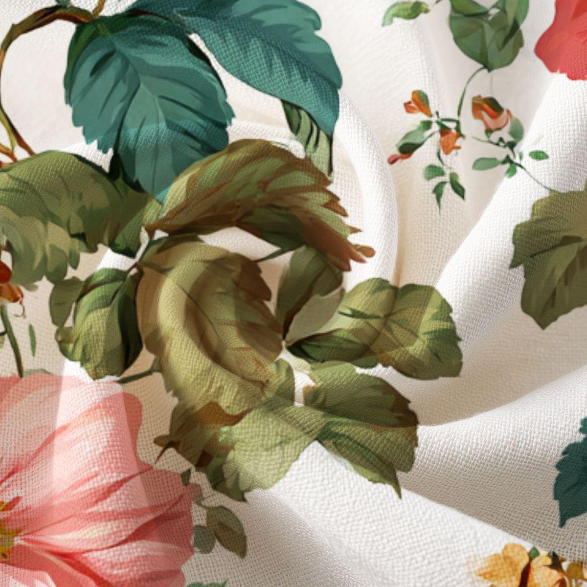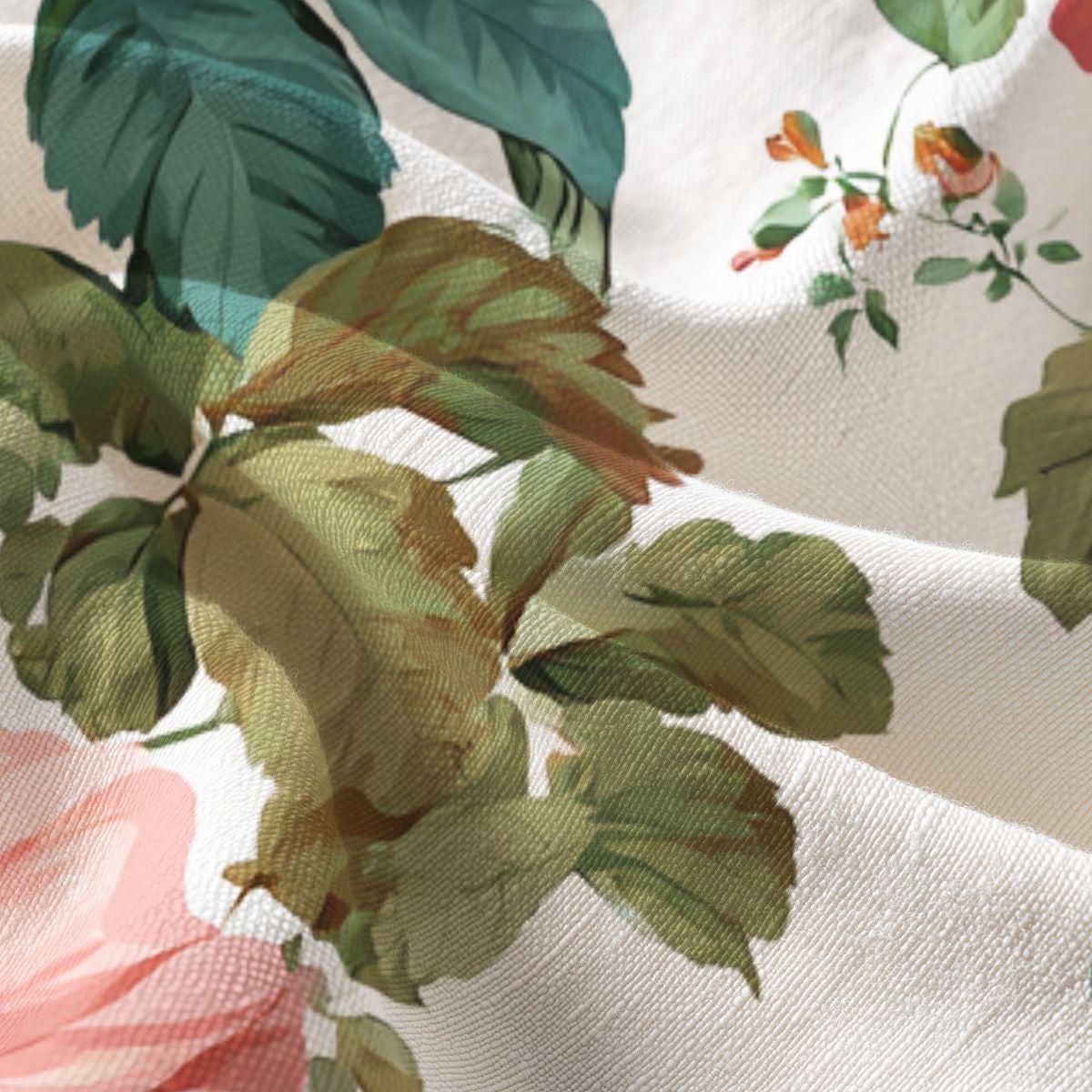 A lightweight, luxuriously soft textile printed with a vintage botanical pattern of roses and verdant leaves. The fabric’s smooth hand and fine drape invite quiet, tactile moments—wrapping up in a shawl, lining a handmade pillow, or cutting into a delicate tea towel. The floral artwork feels like a sunlit greenhouse: warm pink blooms, muted greens, and small sprigs scattered across a creamy background. This piece works especially well for makers and sewists who favor heirloom-style home goods, cottagecore garments, or refined accessory projects. The printed repeat is generous, giving rich floral scenes across larger cuts and concentrated blooms on smaller pieces—so your finished creation will carry the garden’s mood whether it’s a throw accent or a soft linen for seasonal crafts.