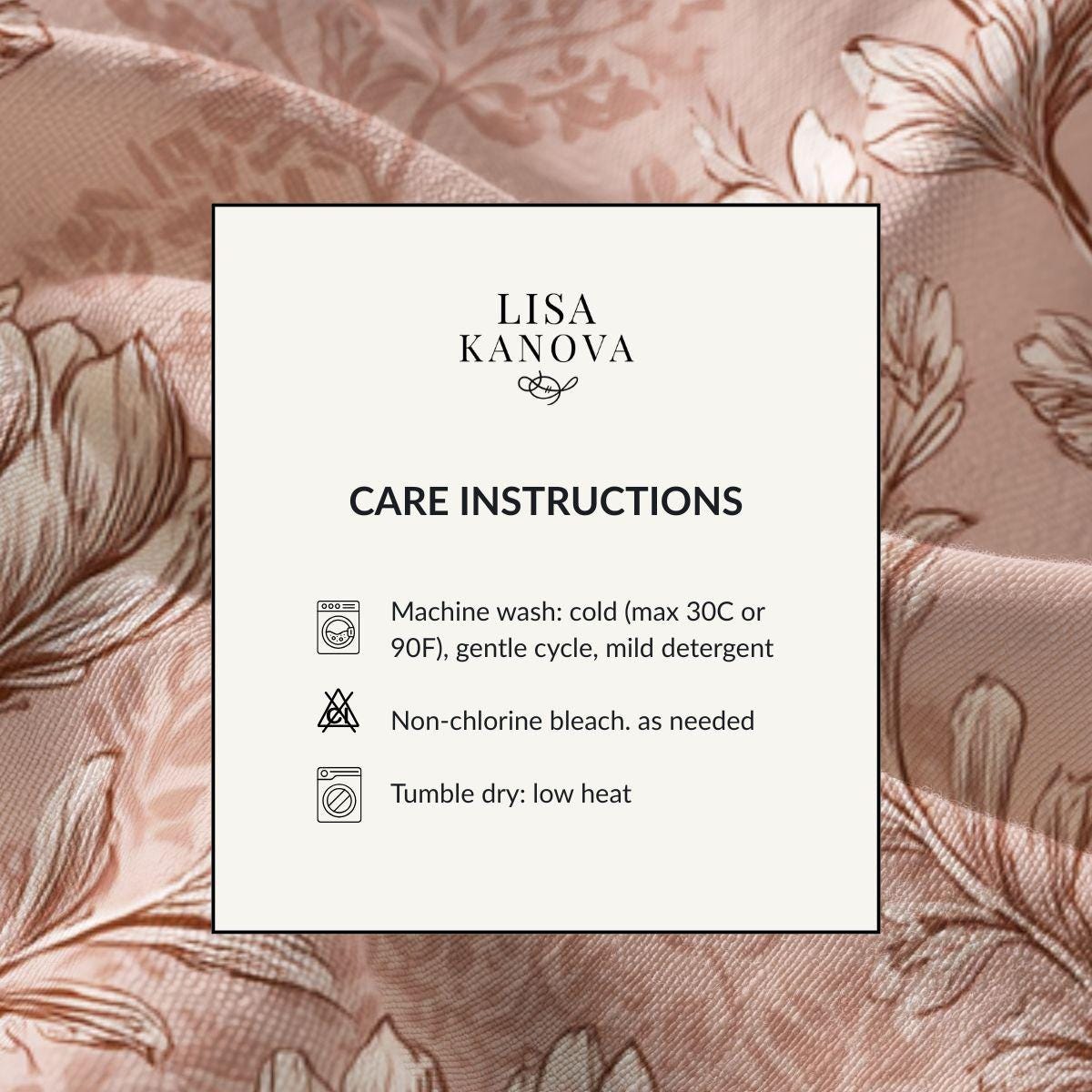 - Machine wash: cold (max 30C or 90F), gentle cycle, mild detergent