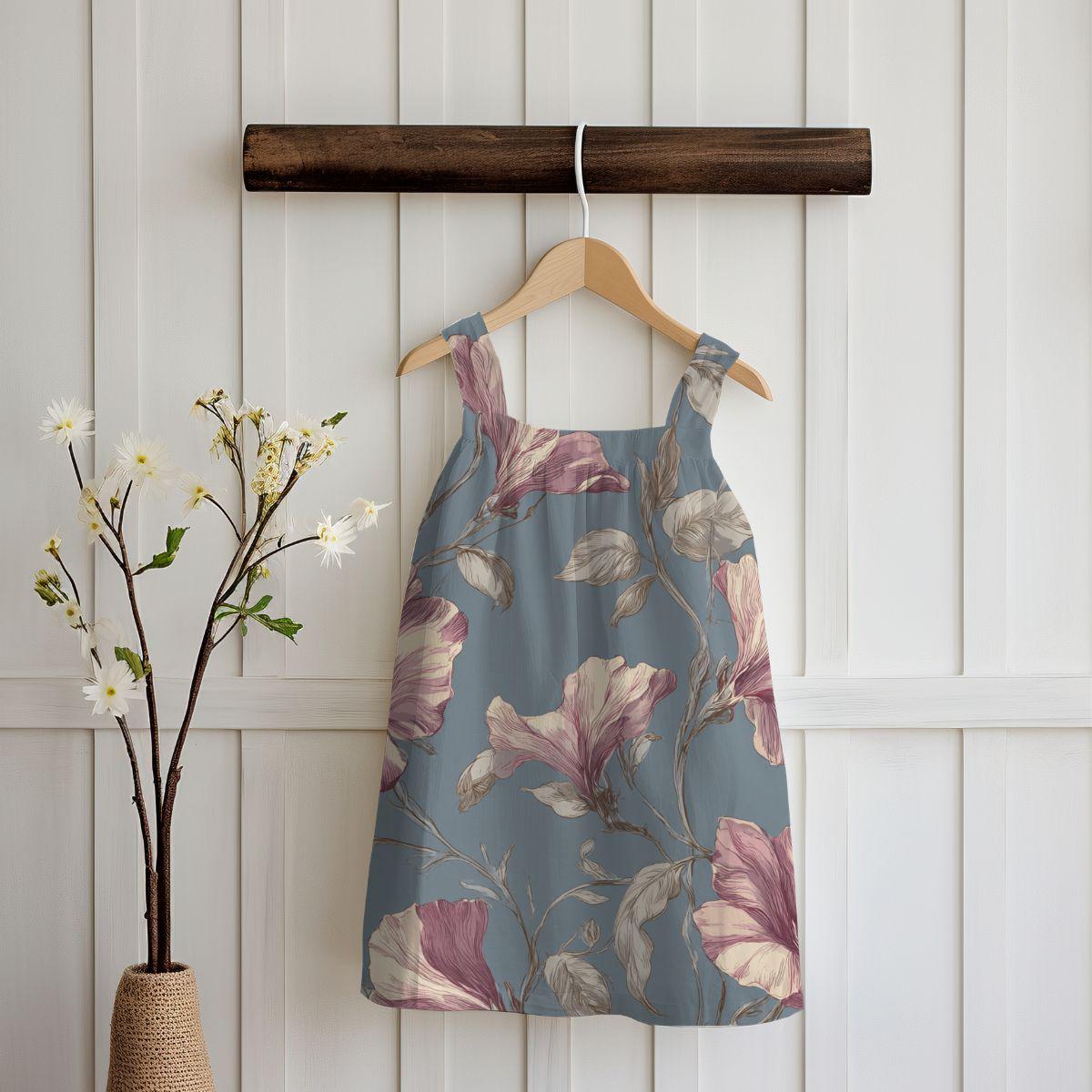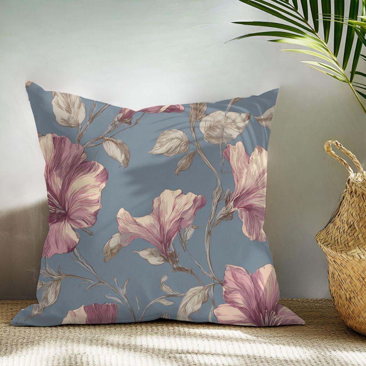 - Muted vintage floral design on a soft blue background