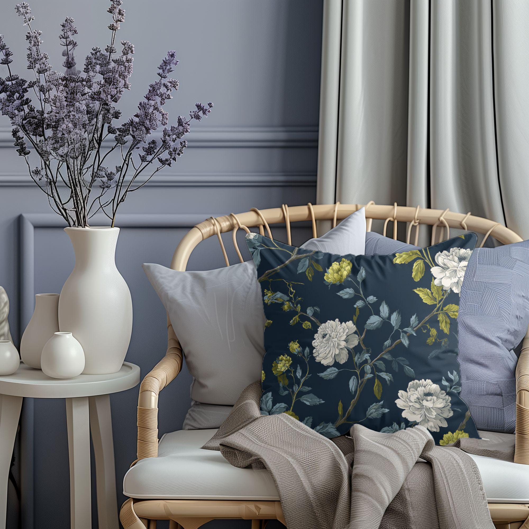 Reversible Oversized Floral Pillow Cover<br>Two Designer Looks. One Sophisticated Statement.<br>Elevate your nursery or home decor with a statement piece that blends high-end sophistication with an eclectic, artistic soul. Featuring my signature hand-drawn, oversized florals on the front and a classic, coordinated designer stripe on the back, this cover offers two curated looks in one. Itβs the perfect "hero" piece for espresso wood furniture and cozy, high-end spaces.<br>β¨ Premium Fabric Options100% Cotton Twill (USA Made): A heavyweight, structured choice. Unlike standard thin cotton, this durable twill has a beautiful natural weave that holds bold, off-center patterns with stunning clarity.<br>Faux Linen Texture: For those who love a sophisticated, multi-tonal look. This fabric offers the classic "perfectly imperfect" aesthetic of linen with the durability needed for a busy household.<br>π Available Sizes (Cover Only)Designed for mixing and matching to create a tiered, designer look:<br>18" x 18" β The classic accent.<br>20" x 20" β The standard designer size for a plush feel.<br>26" x 26" β The bold "Euro Sham" statement. Perfect for gliders or floor lounging.<br>πΏ Why Itβs a Luxury Choice:Fully Reversible: Signature florals on the front; chic stripes on the back.<br>Hidden Zipper: A professional, color-matched zipper tucked at the bottom for a seamless look.<br>Edge-to-Edge Printing: My oversized designs are printed across the entire fabric before being cut and sewn for a truly custom finish.<br>Easy Care: Machine wash cold (gentle cycle), tumble dry low.