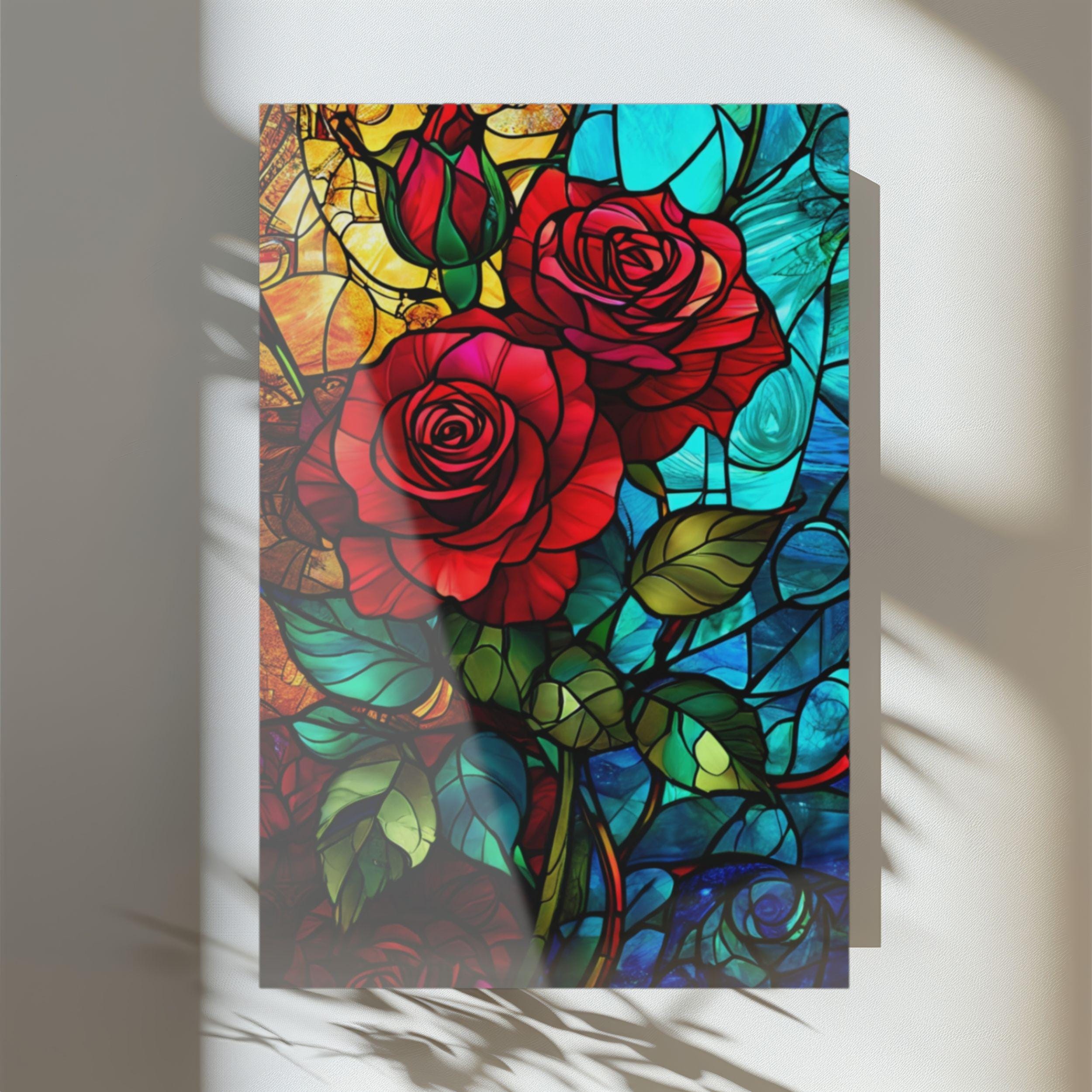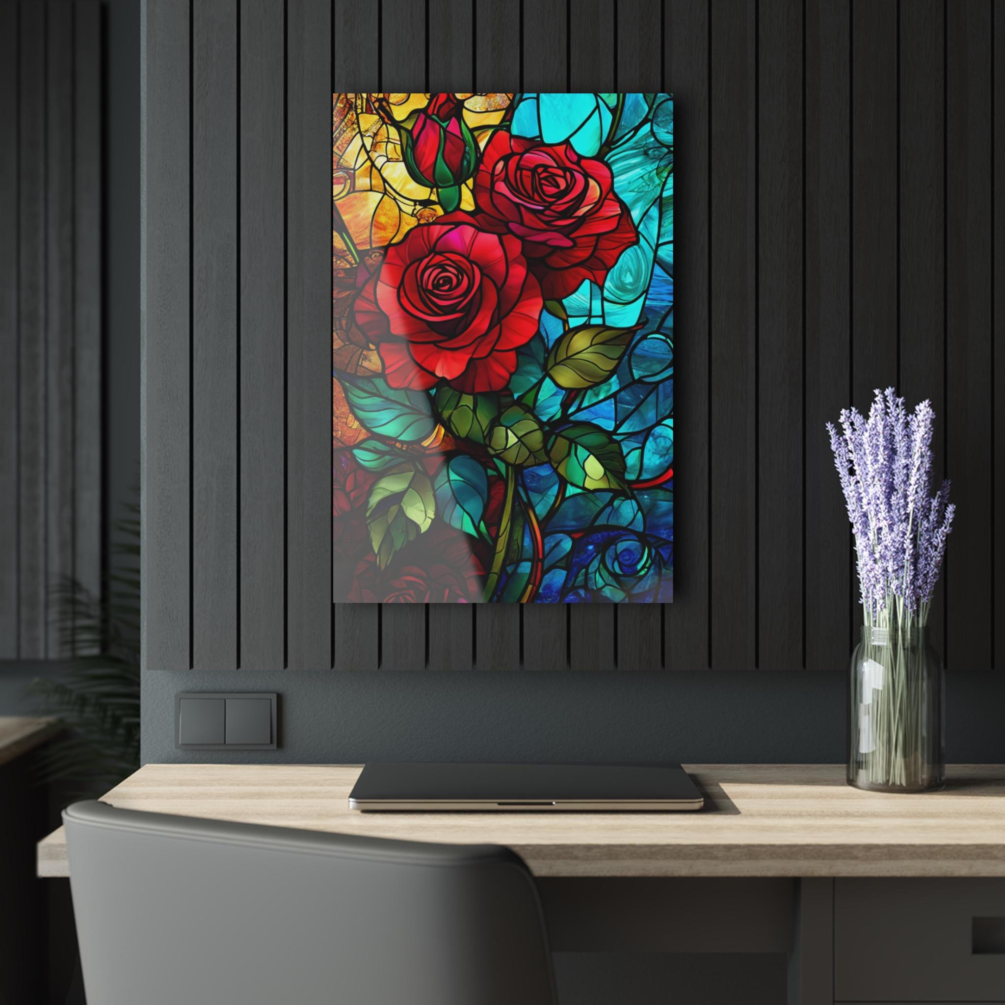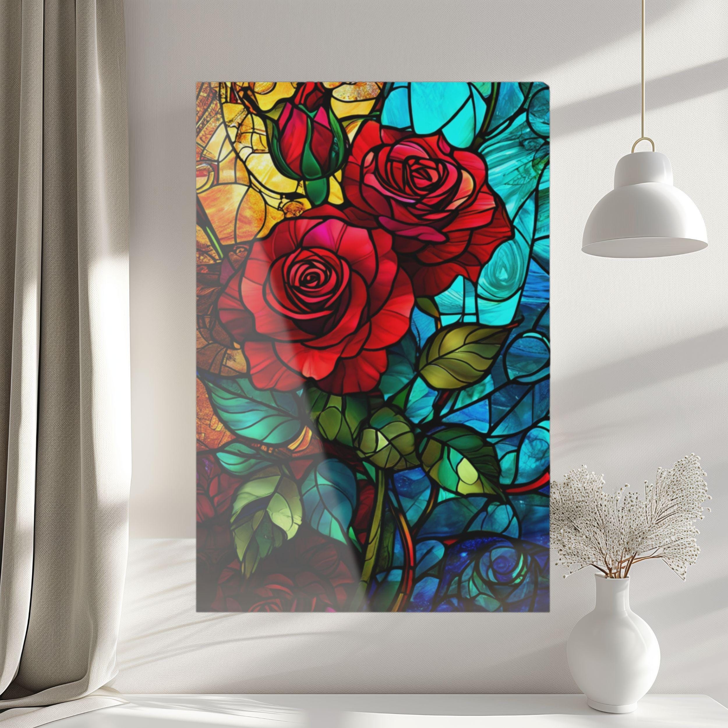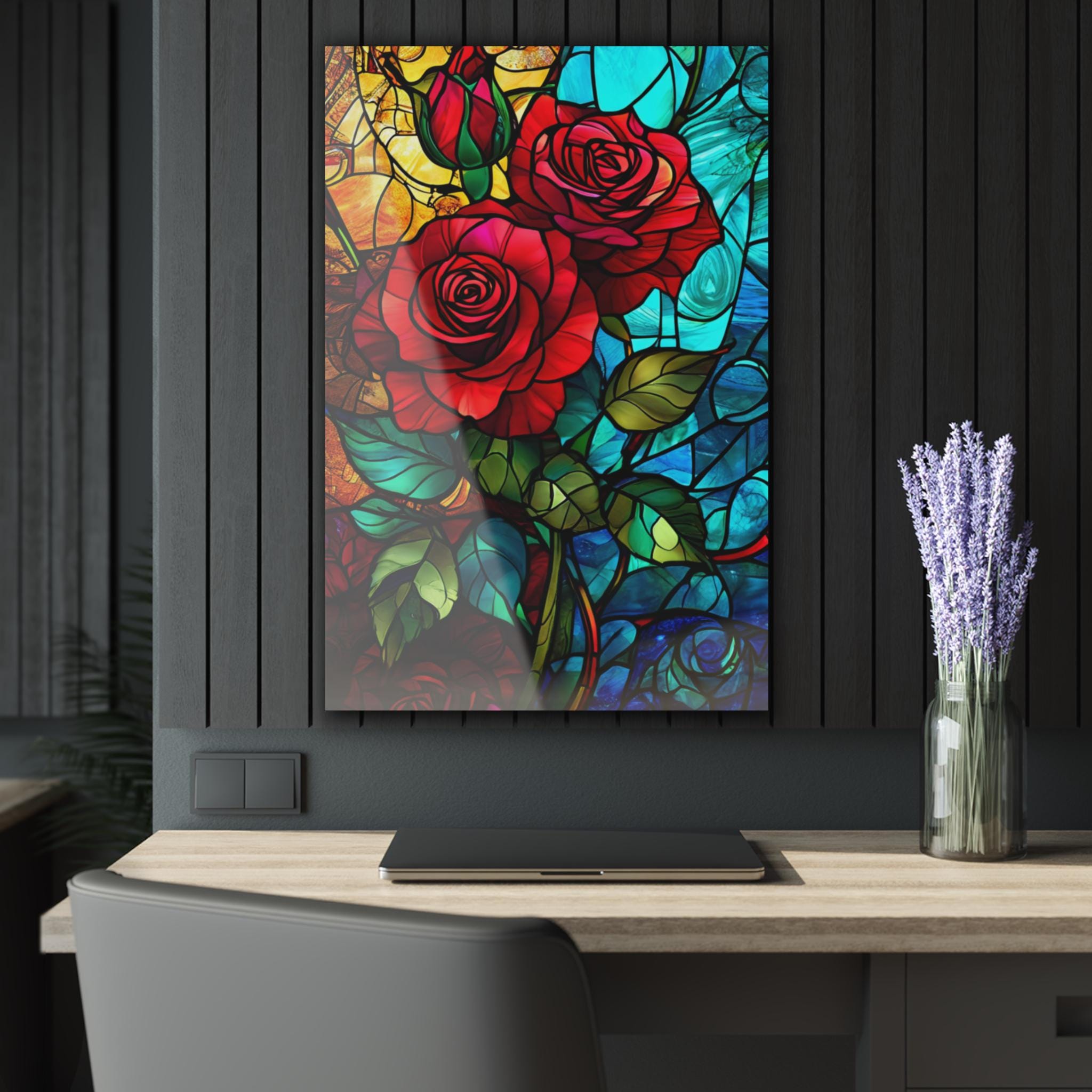 A vibrant acrylic print that brings stained-glass color and depth to your wall. The image is rendered in high-definition on archival photographic paper, fused beneath crystal-clear acrylic so colors stay luminous and edges gleam. The 0.25” thick panel has a white vinyl backing for contrast and is hand-polished for a flawless look. A French cleat system is pre-fitted and screws are included, so the piece mounts flush and secure — no wobble, just the impression of art floating off the wall. Water-resistant and easy to wipe clean, this panel works in living rooms, hallways, or creative studios, and comes in multiple sizes and orientations to fit both intimate nooks and bold gallery walls.