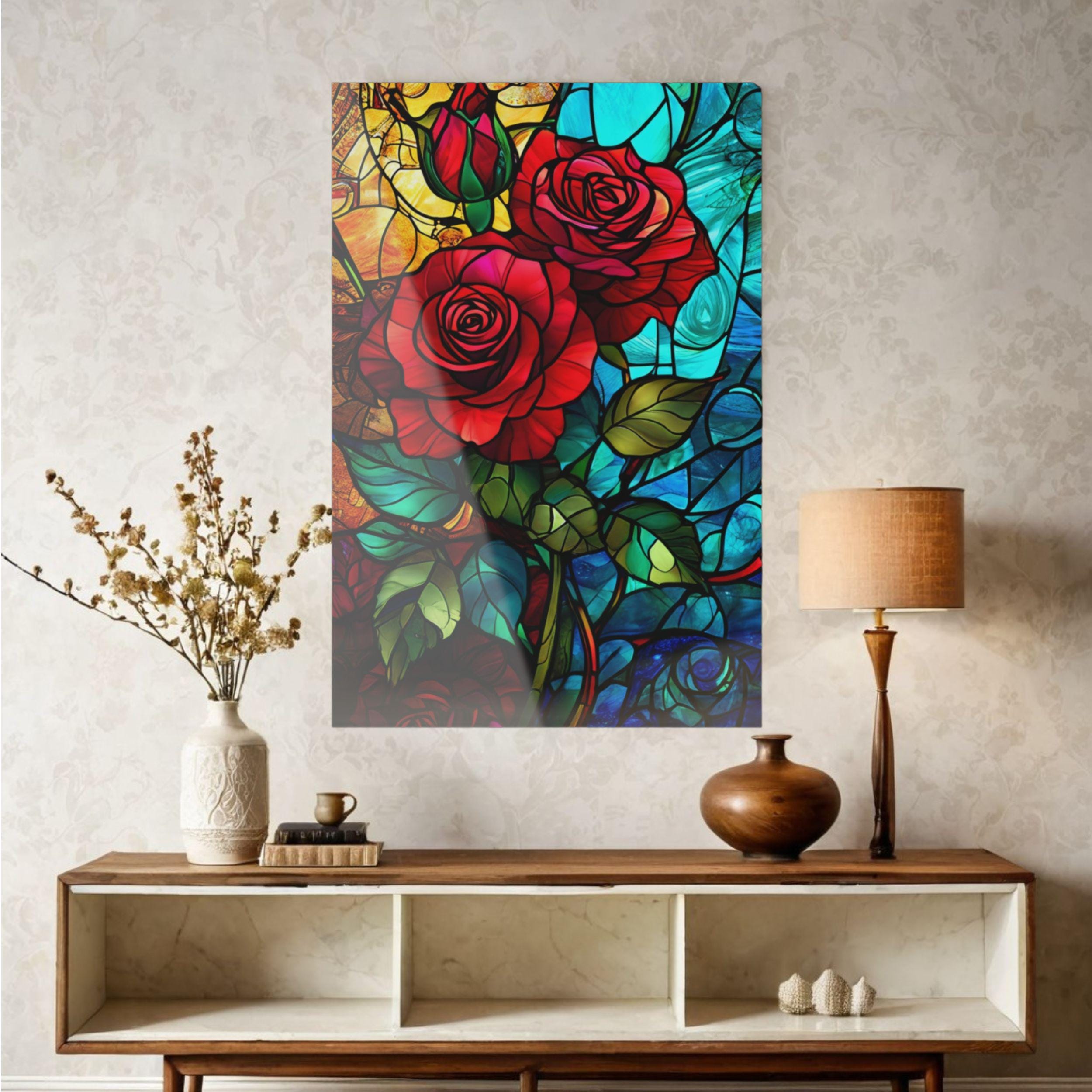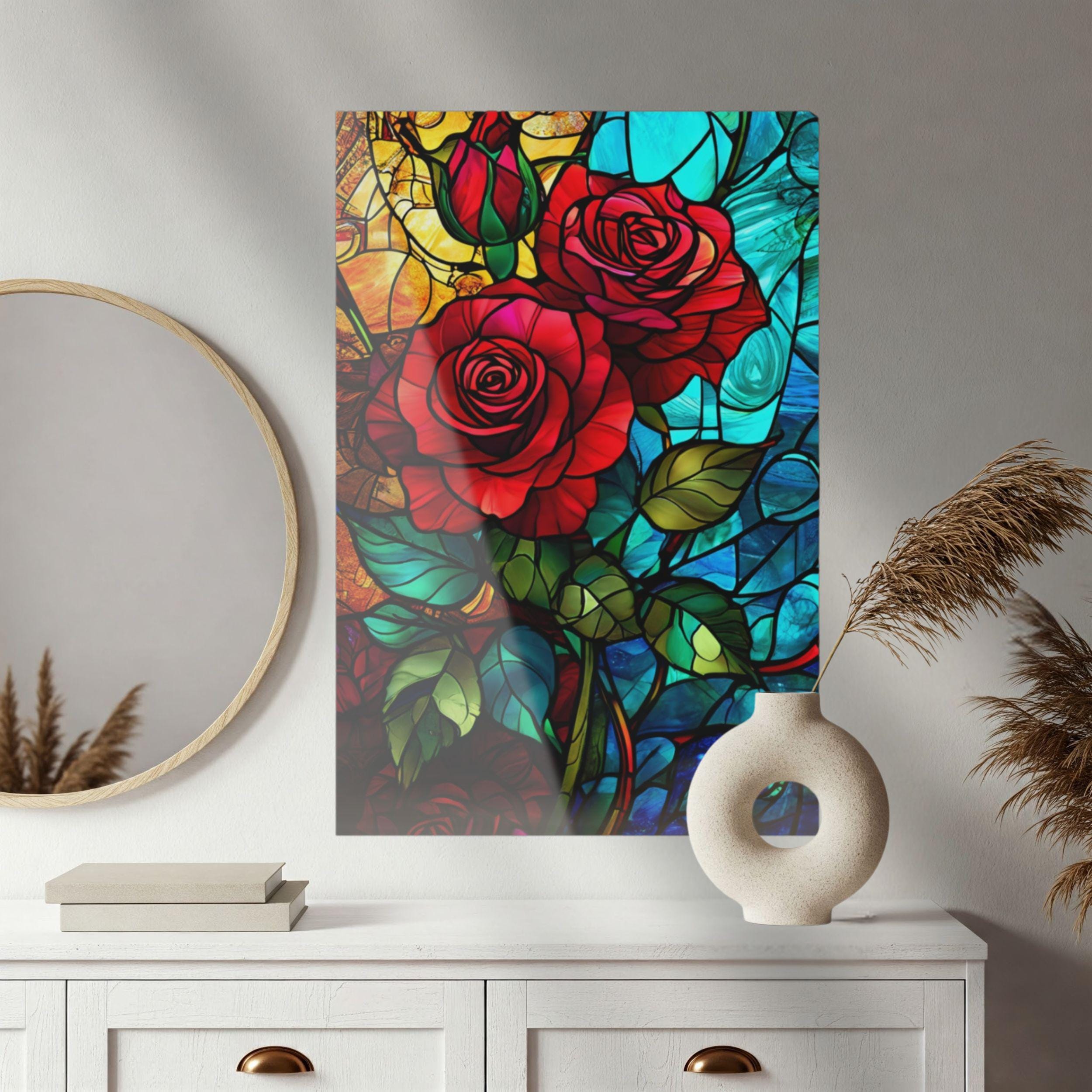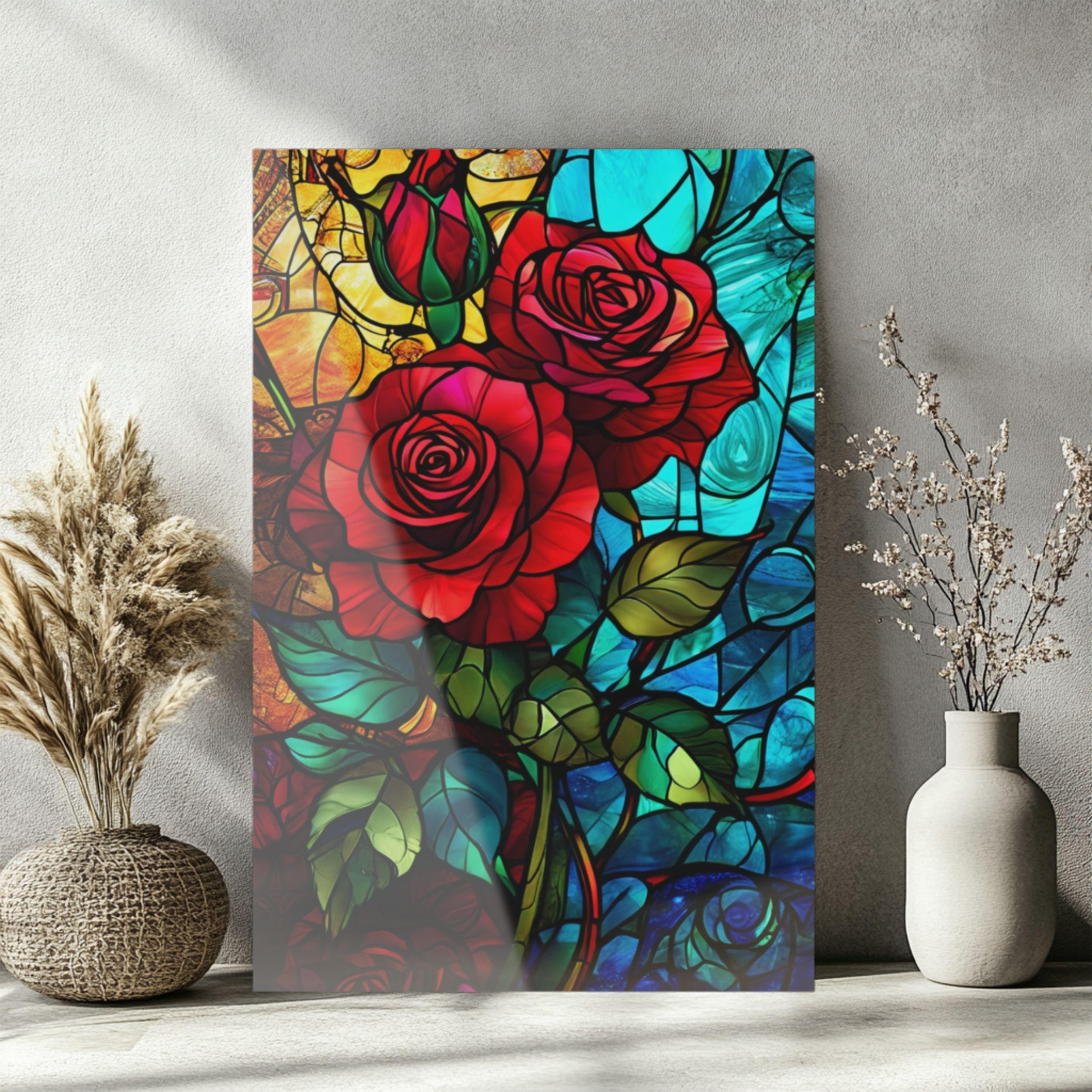 A vibrant acrylic print that brings stained-glass color and depth to your wall. The image is rendered in high-definition on archival photographic paper, fused beneath crystal-clear acrylic so colors stay luminous and edges gleam. The 0.25” thick panel has a white vinyl backing for contrast and is hand-polished for a flawless look. A French cleat system is pre-fitted and screws are included, so the piece mounts flush and secure — no wobble, just the impression of art floating off the wall. Water-resistant and easy to wipe clean, this panel works in living rooms, hallways, or creative studios, and comes in multiple sizes and orientations to fit both intimate nooks and bold gallery walls.