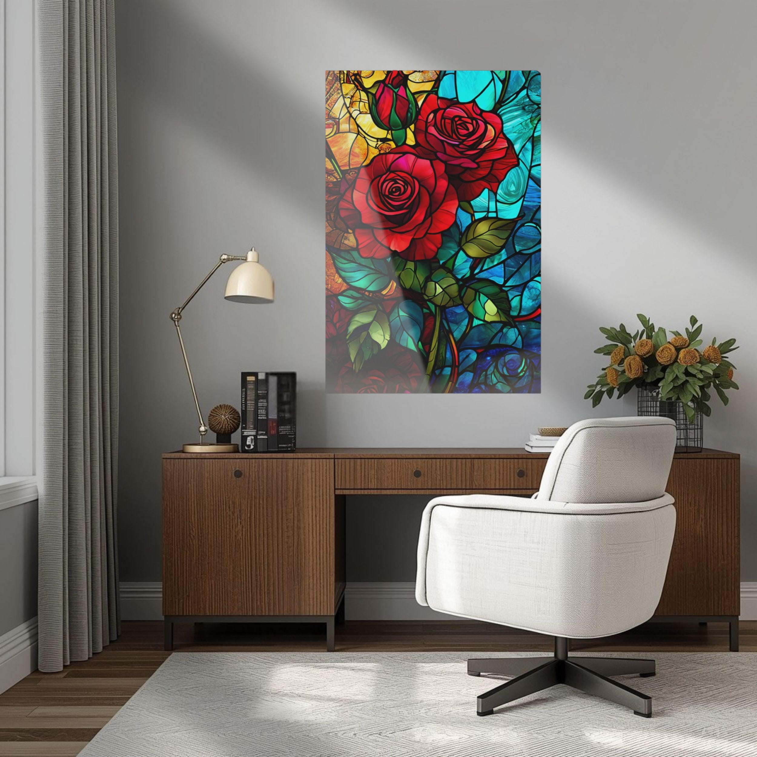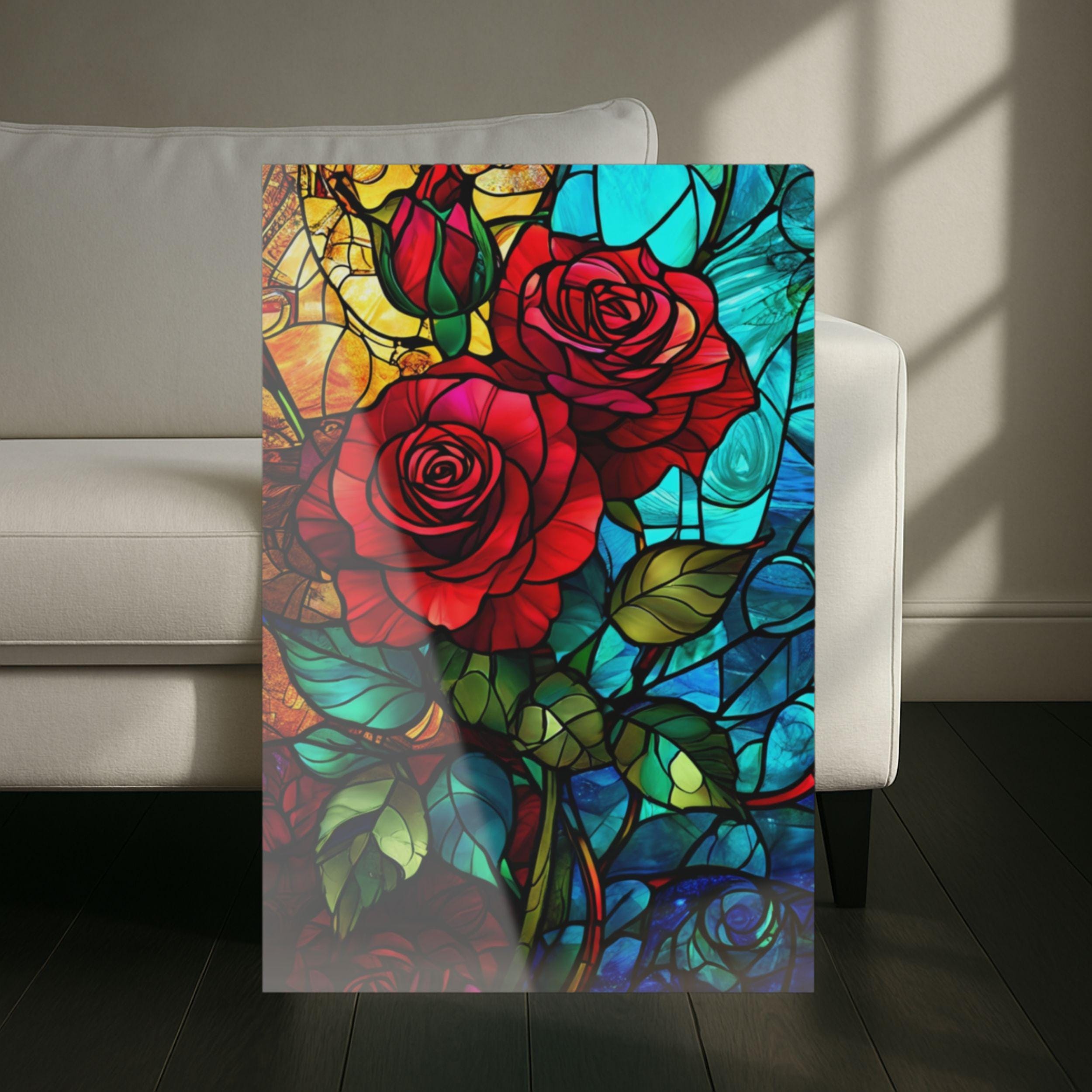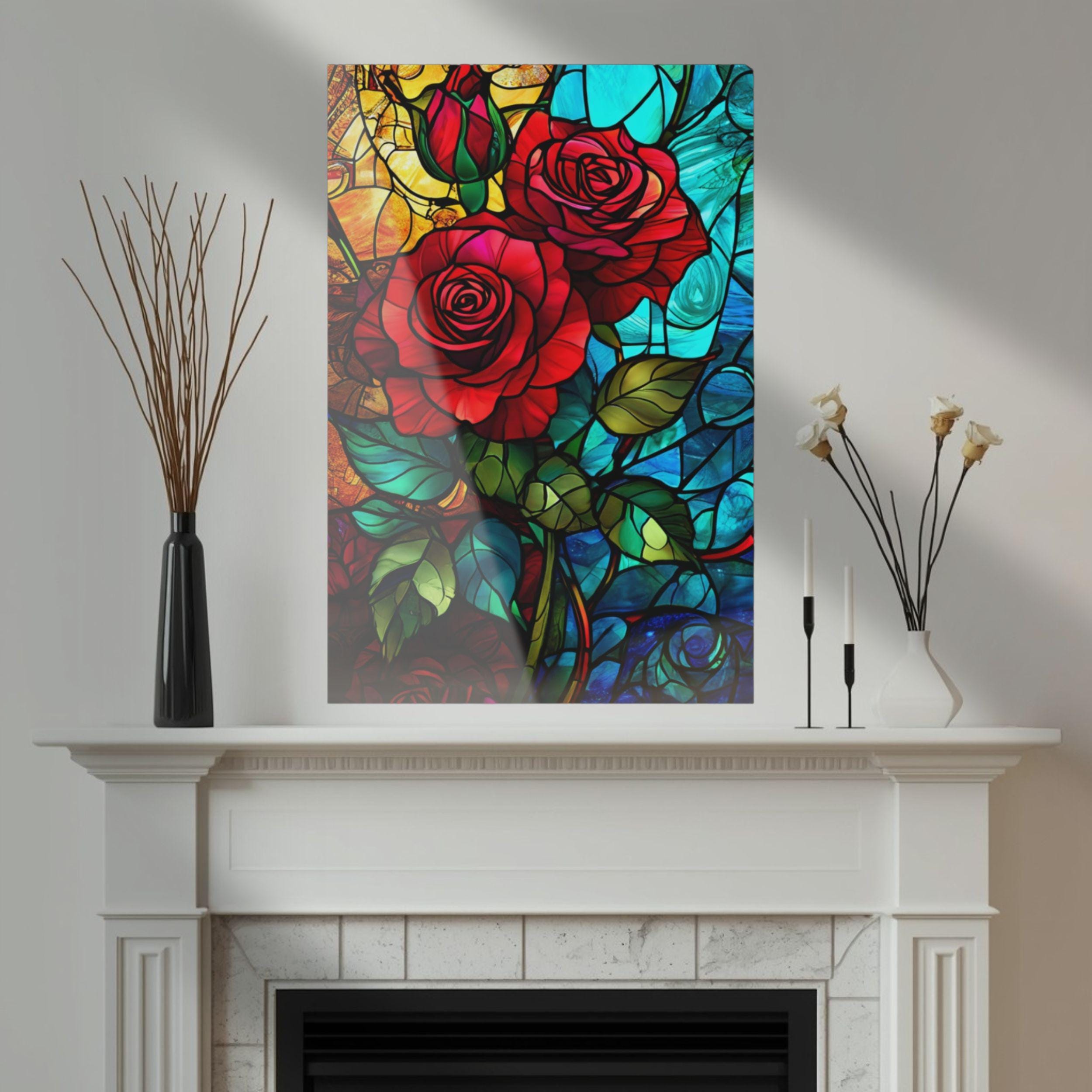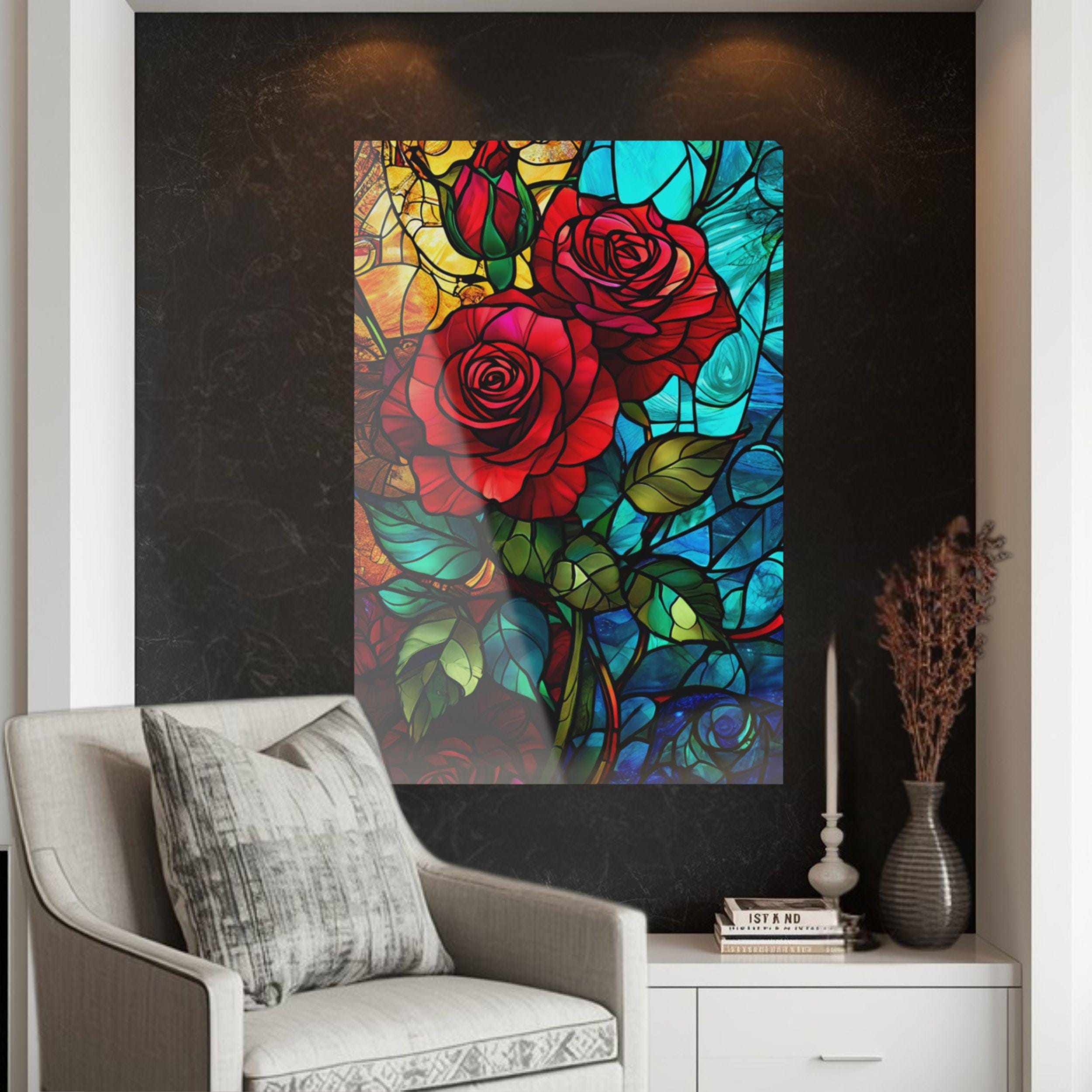 A vibrant acrylic print that brings stained-glass color and depth to your wall. The image is rendered in high-definition on archival photographic paper, fused beneath crystal-clear acrylic so colors stay luminous and edges gleam. The 0.25” thick panel has a white vinyl backing for contrast and is hand-polished for a flawless look. A French cleat system is pre-fitted and screws are included, so the piece mounts flush and secure — no wobble, just the impression of art floating off the wall. Water-resistant and easy to wipe clean, this panel works in living rooms, hallways, or creative studios, and comes in multiple sizes and orientations to fit both intimate nooks and bold gallery walls.