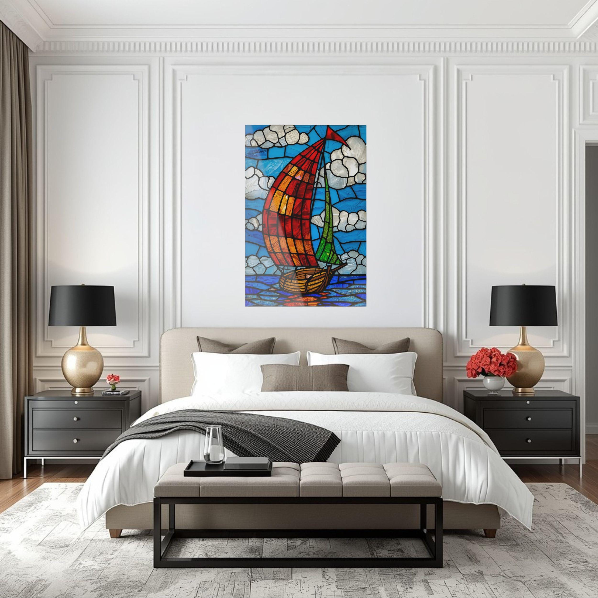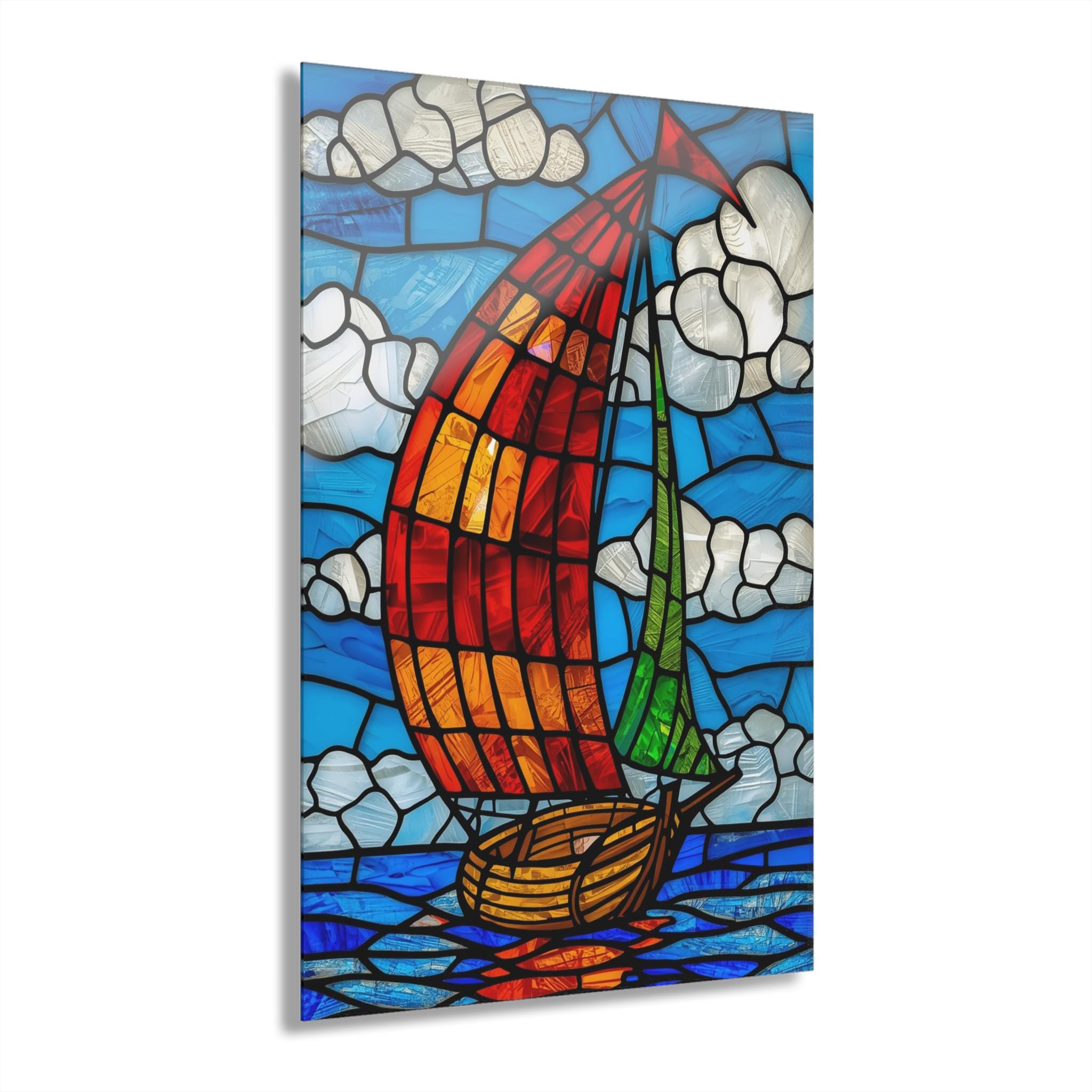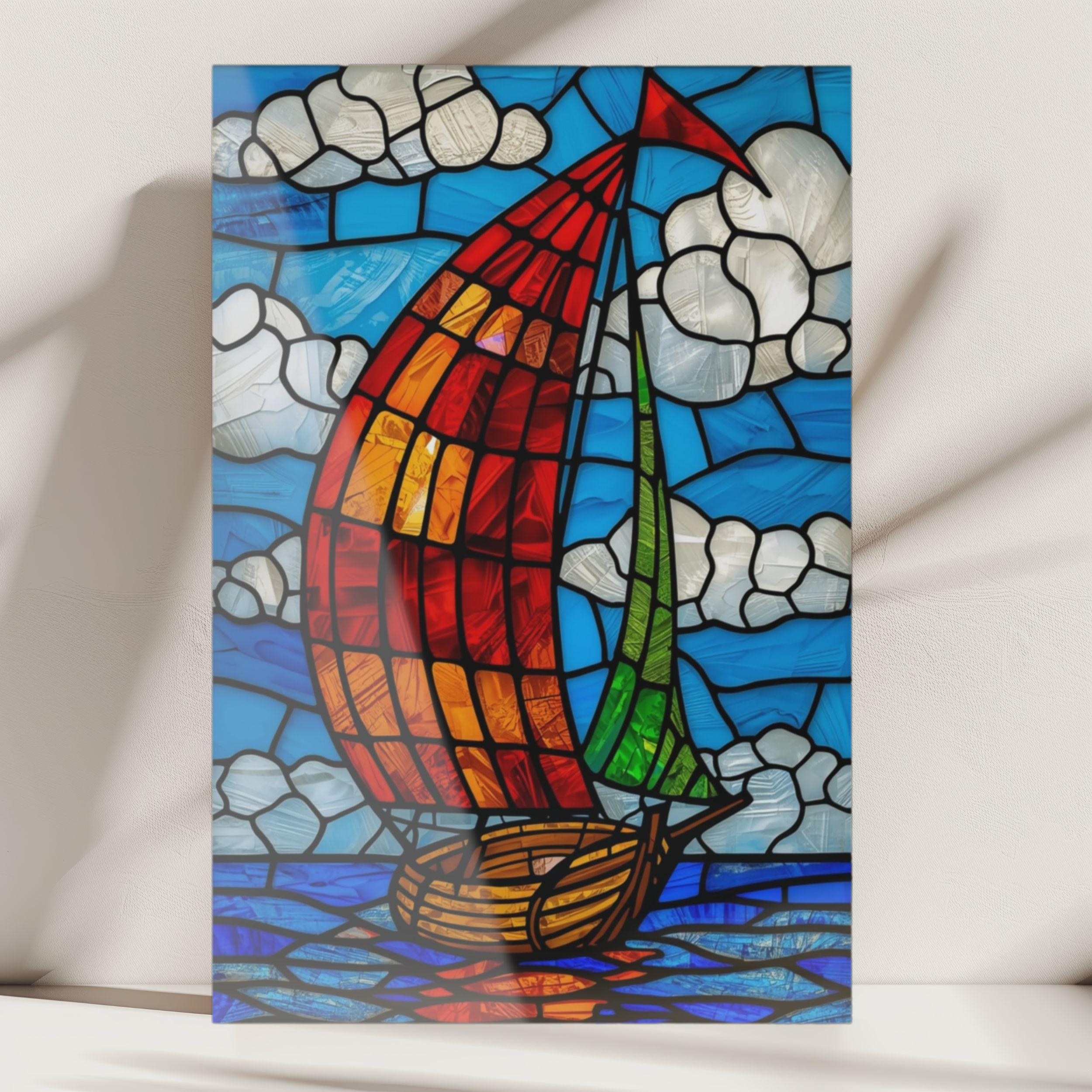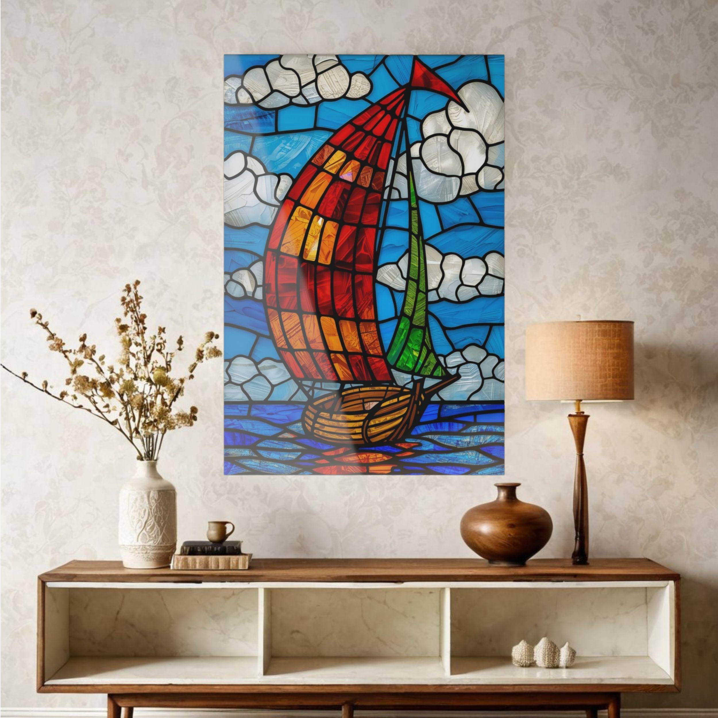 Bring a burst of color and nautical charm to any wall with this glossy acrylic print. The vibrant stained-glass sailboat design glows from within the 0.25" acrylic, creating depth and luminous clarity that feels like sunlight on water. The streamlined french cleat backing makes hanging secure and simple, while hand-polished edges give a clean, gallery-ready finish. Easy to wipe clean and available in multiple sizes and orientations, this piece slips effortlessly into coastal cottages, boat rooms, or a sunlit hallway where it can catch the light and start conversations.