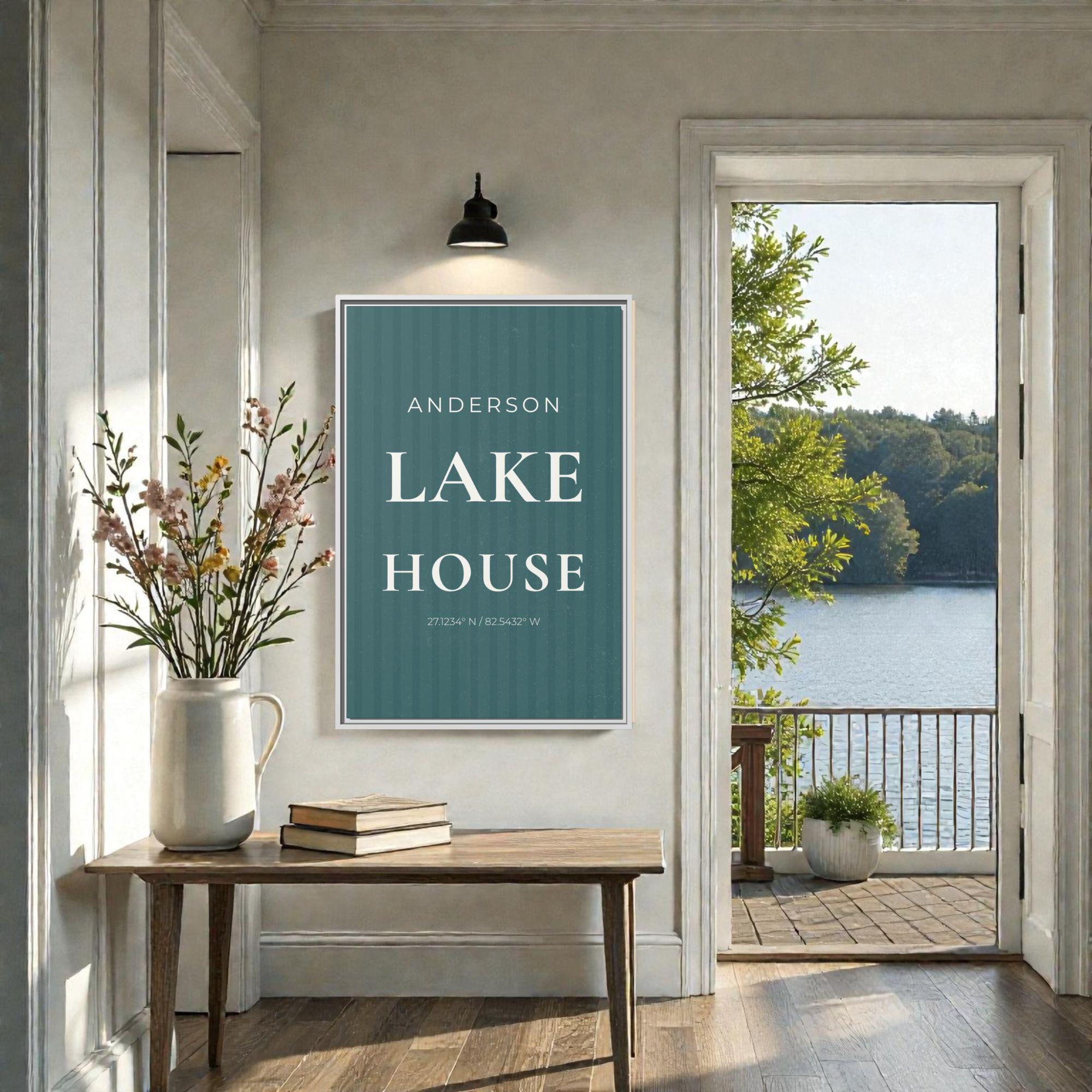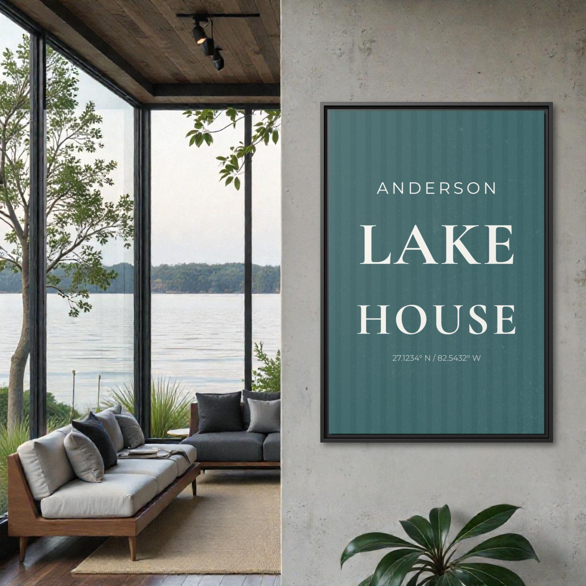 This framed matte canvas brings calm, coastal style to any lakeside retreat or living room wall. The deep teal background with subtle vertical texture and crisp white lettering reads like a quiet invitation: arrive, breathe, stay. Lightweight yet sturdy, the fine-grain canvas and slim pine frame create a refined, modern look that layers easily with wood, rattan, or minimalist décor. Hang it above a console, lean it on a mantel, or place it in an entryway to set a collected, vacation-at-home mood for family weekends and slow summer evenings by the water.