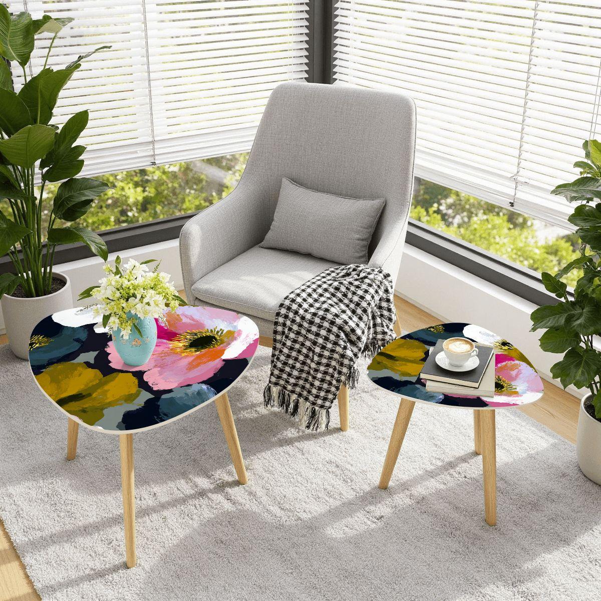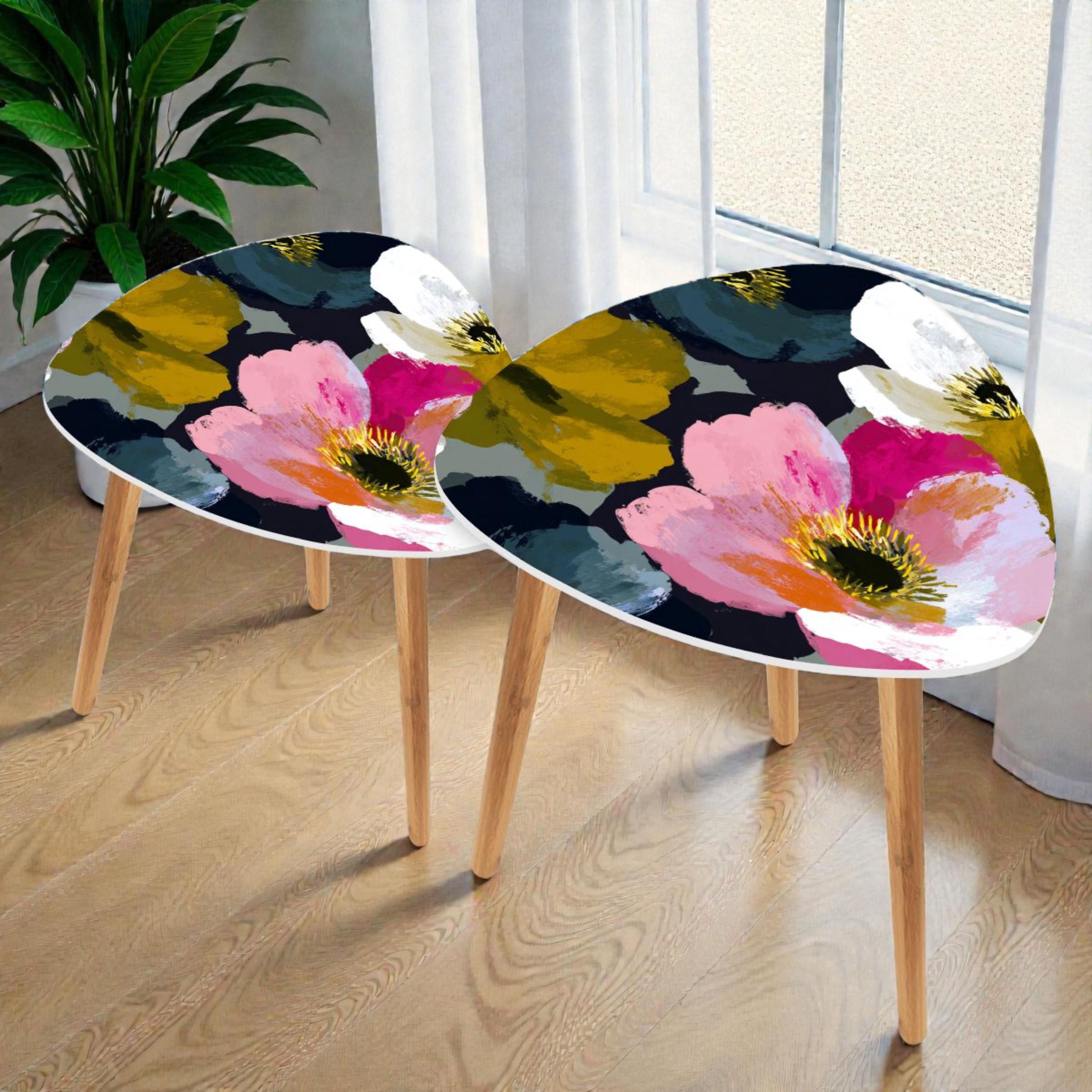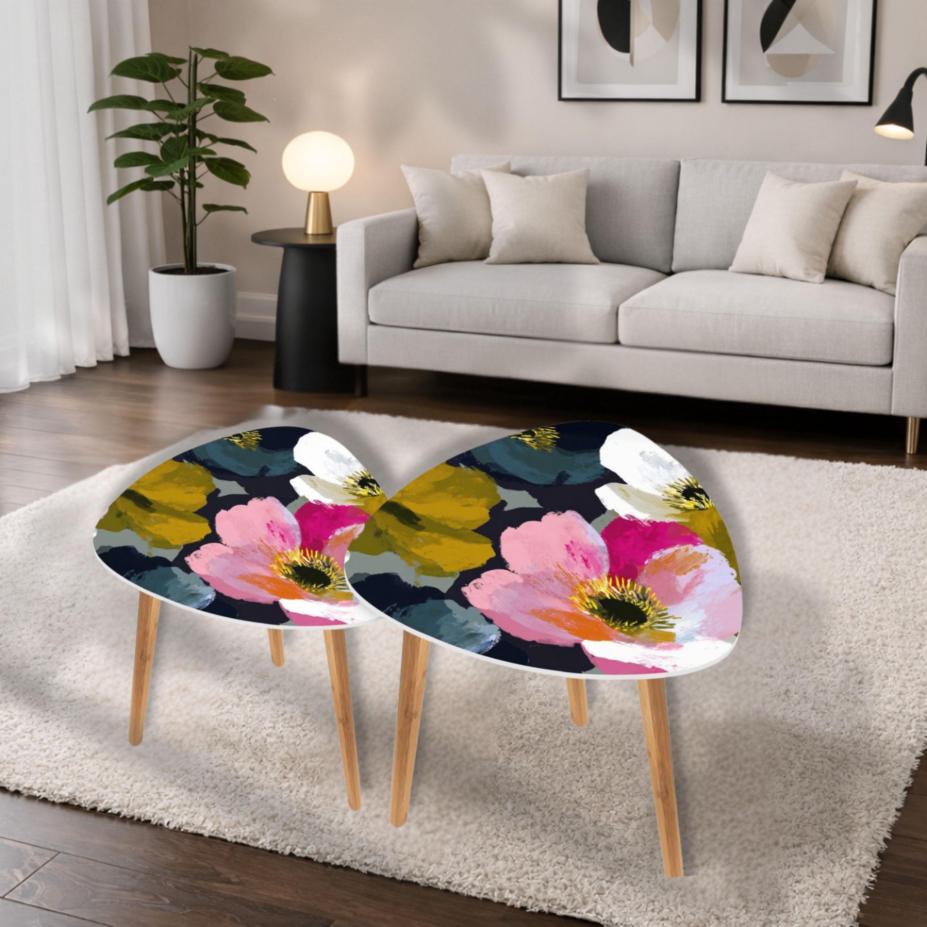 Bring sculptural simplicity into your space with this modern nesting table set — functional art designed to layer, shift, and adapt to the way you live. Each table features a smooth, rounded MDF top paired with eco‑friendly bamboo legs, creating a warm, contemporary silhouette that feels both refined and effortless.