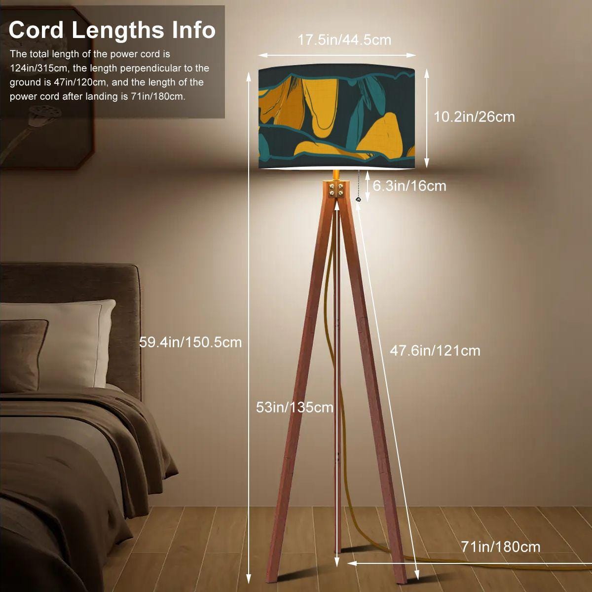 Cord Length: A generous 124" total length for flexible placement (71" from the base).