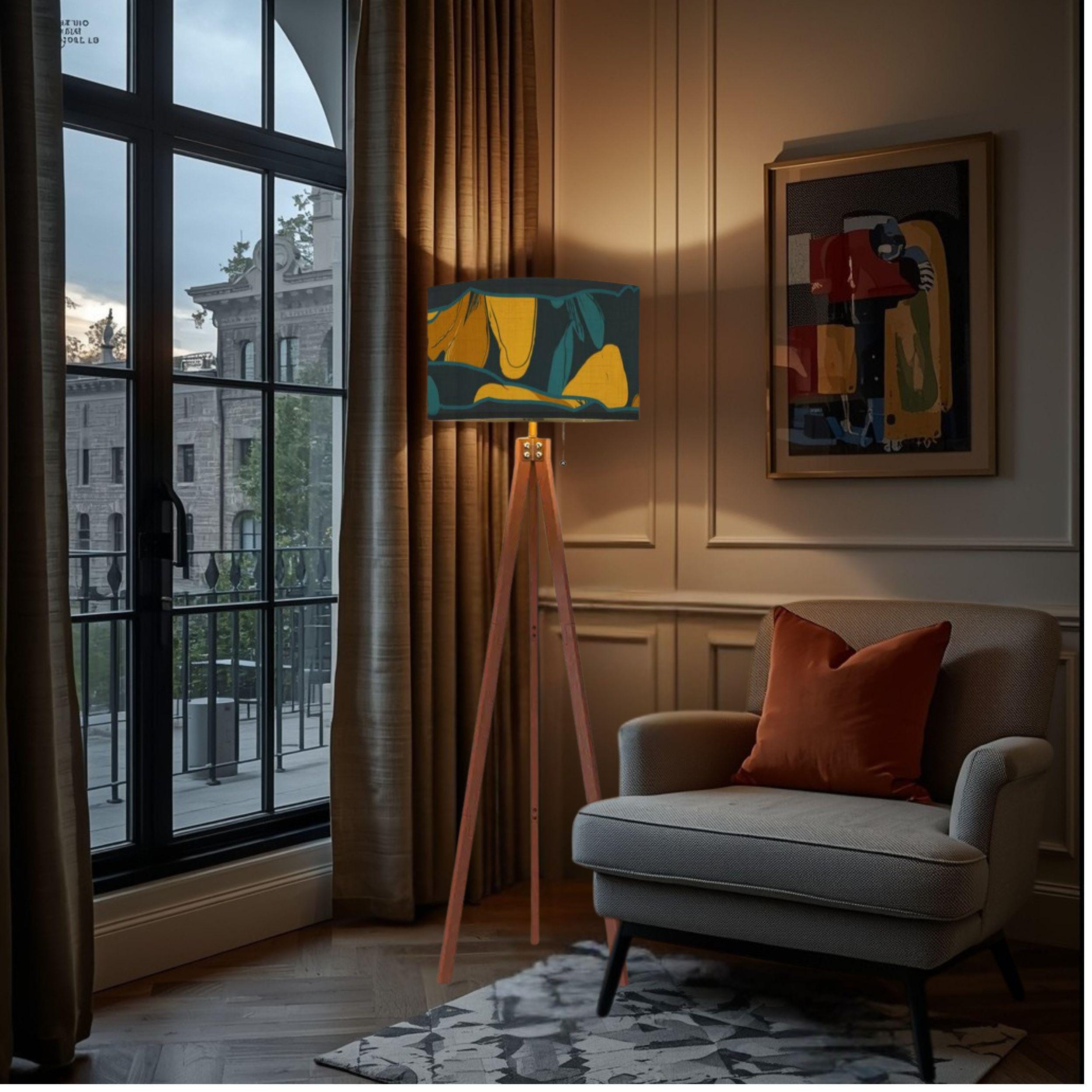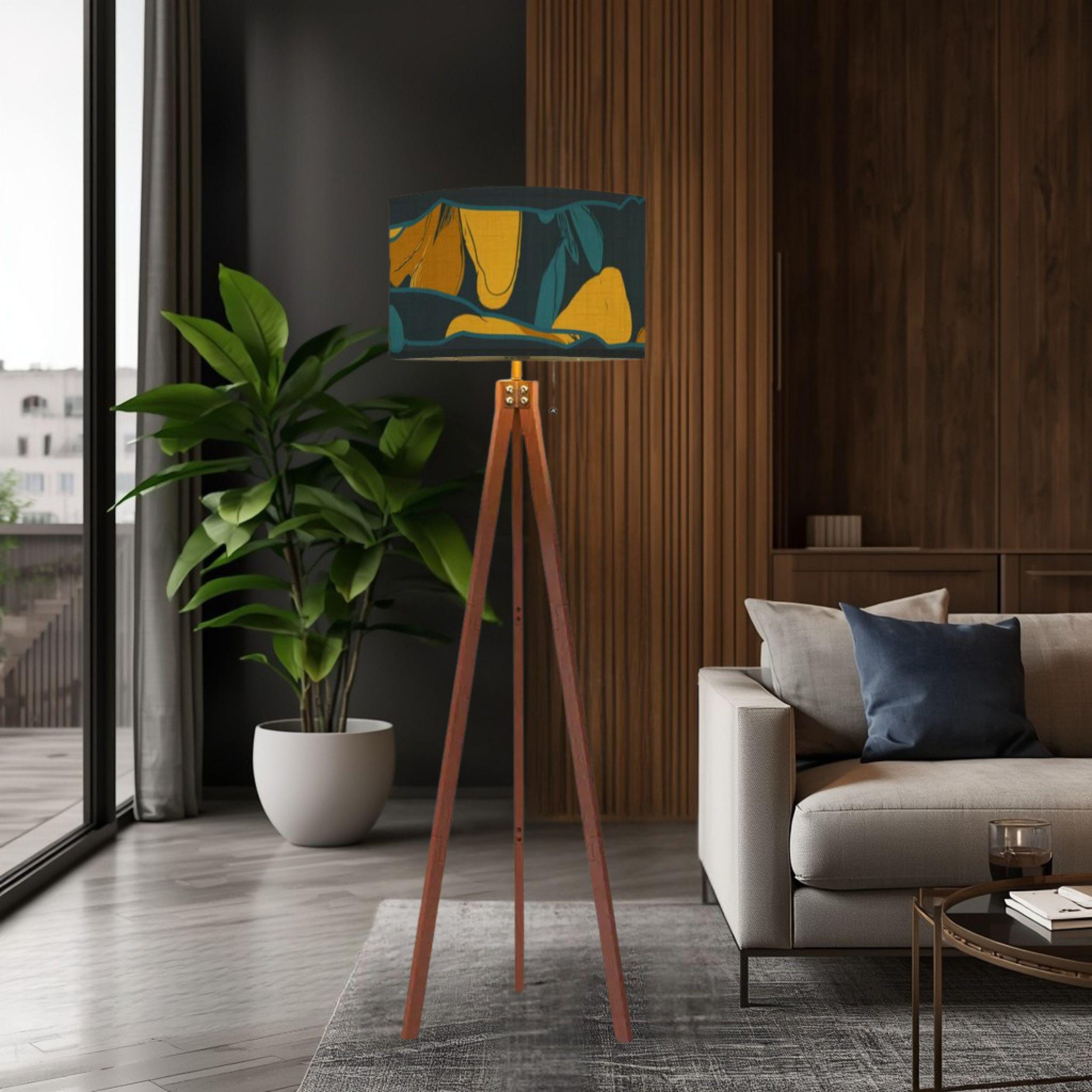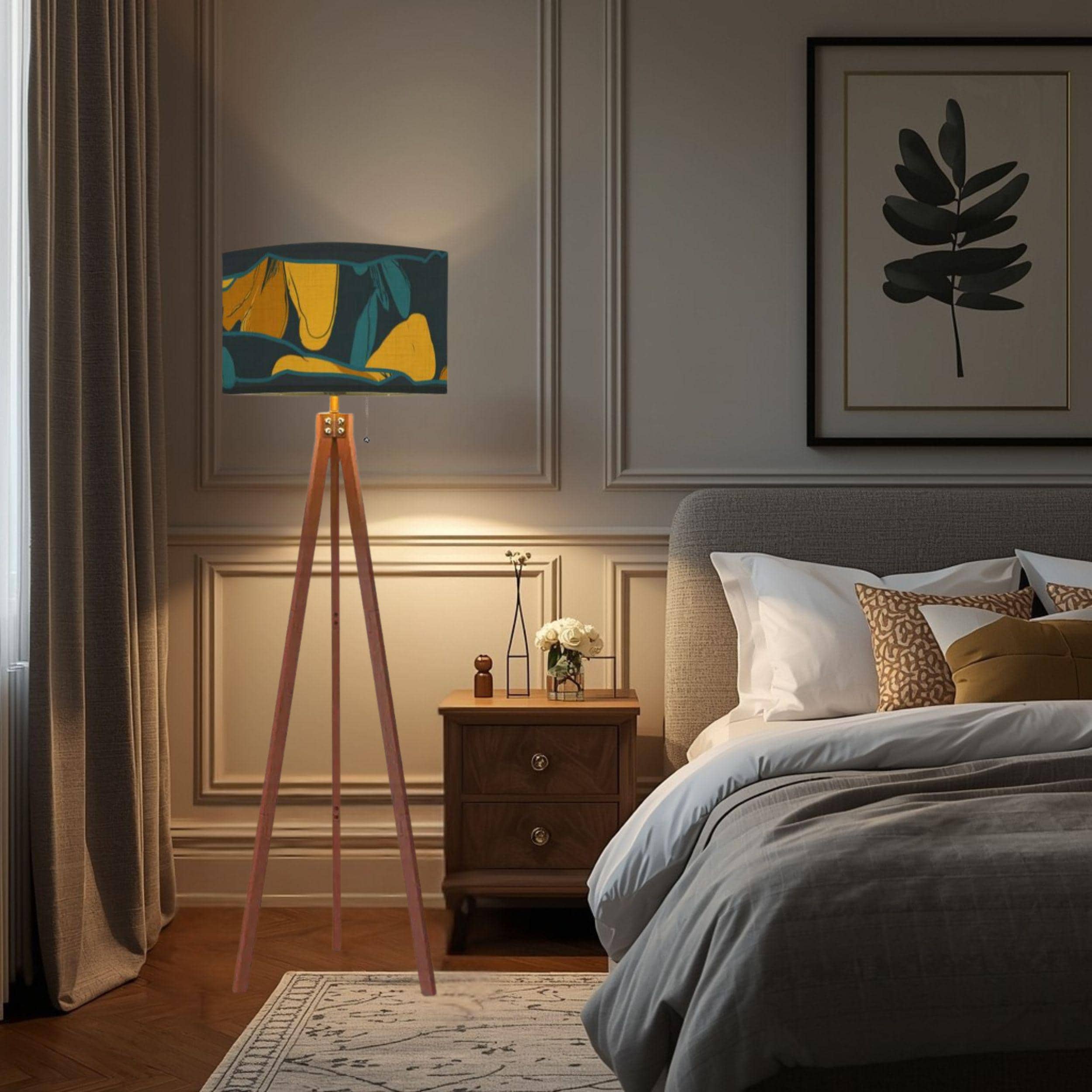 Expertly Made in the USA, this lamp combines structural elegance with modern convenience. The warm wooden tripod base provides a sturdy, designer foundation, while the UV-printed linen shade diffuses light softly to protect your eyes and showcase the vibrant, off-center botanical patterns.