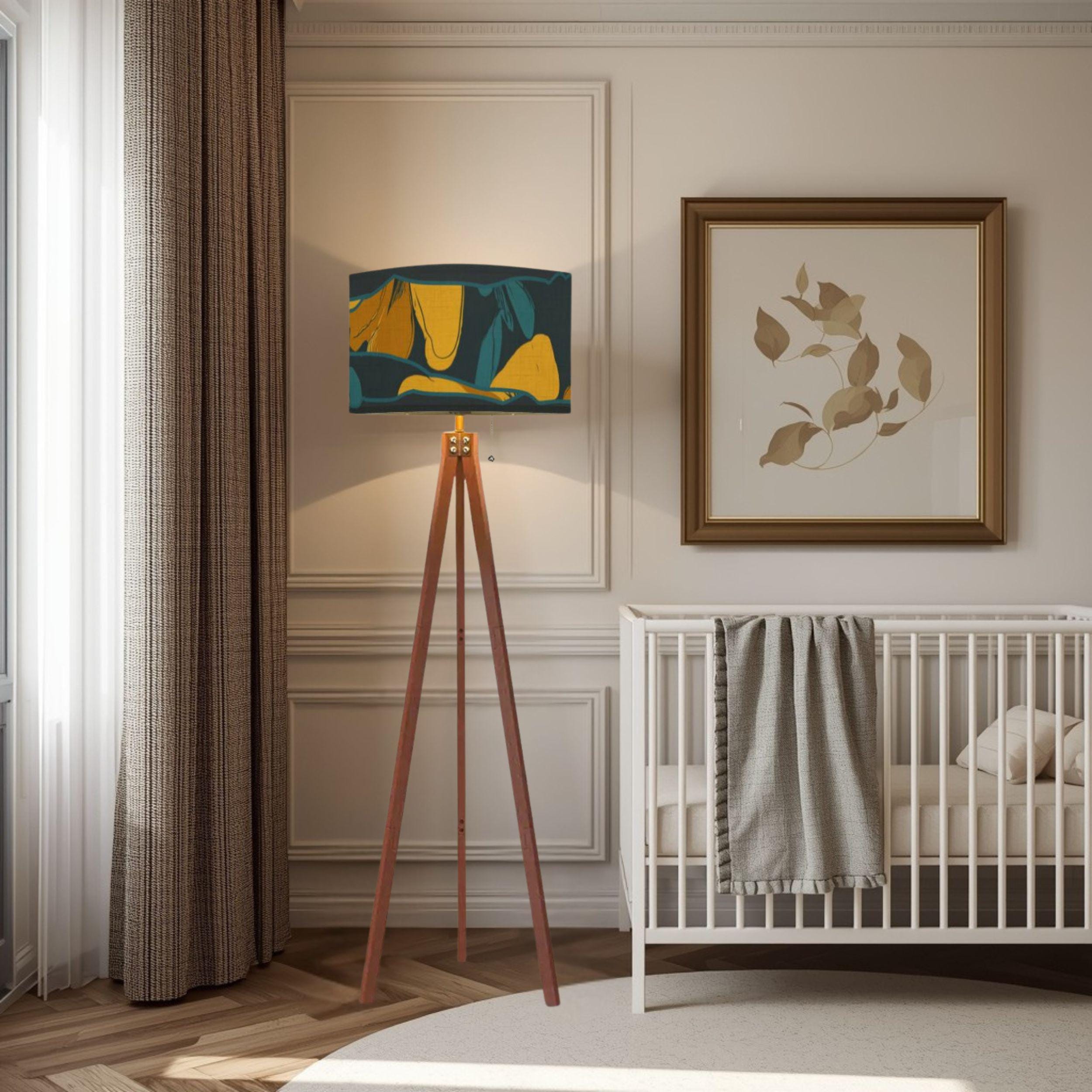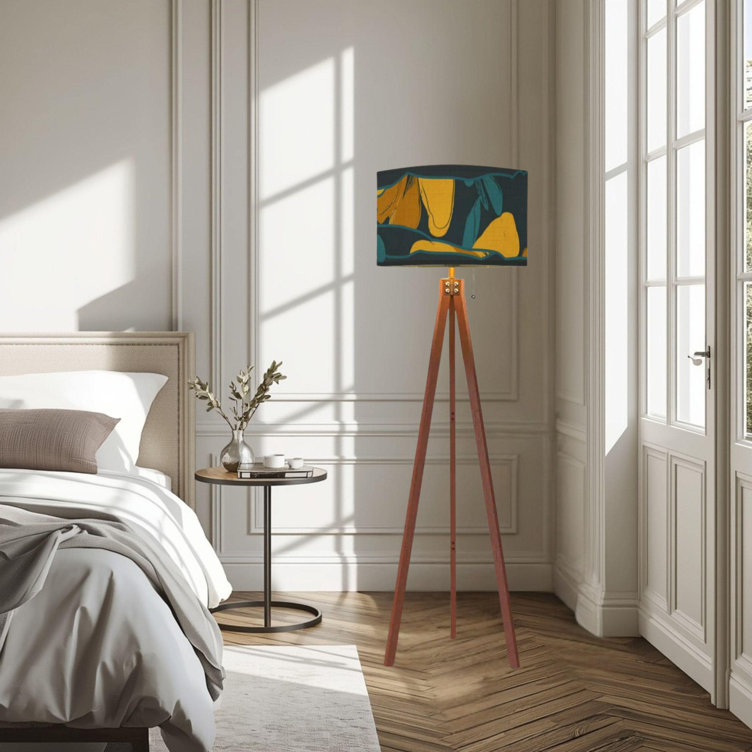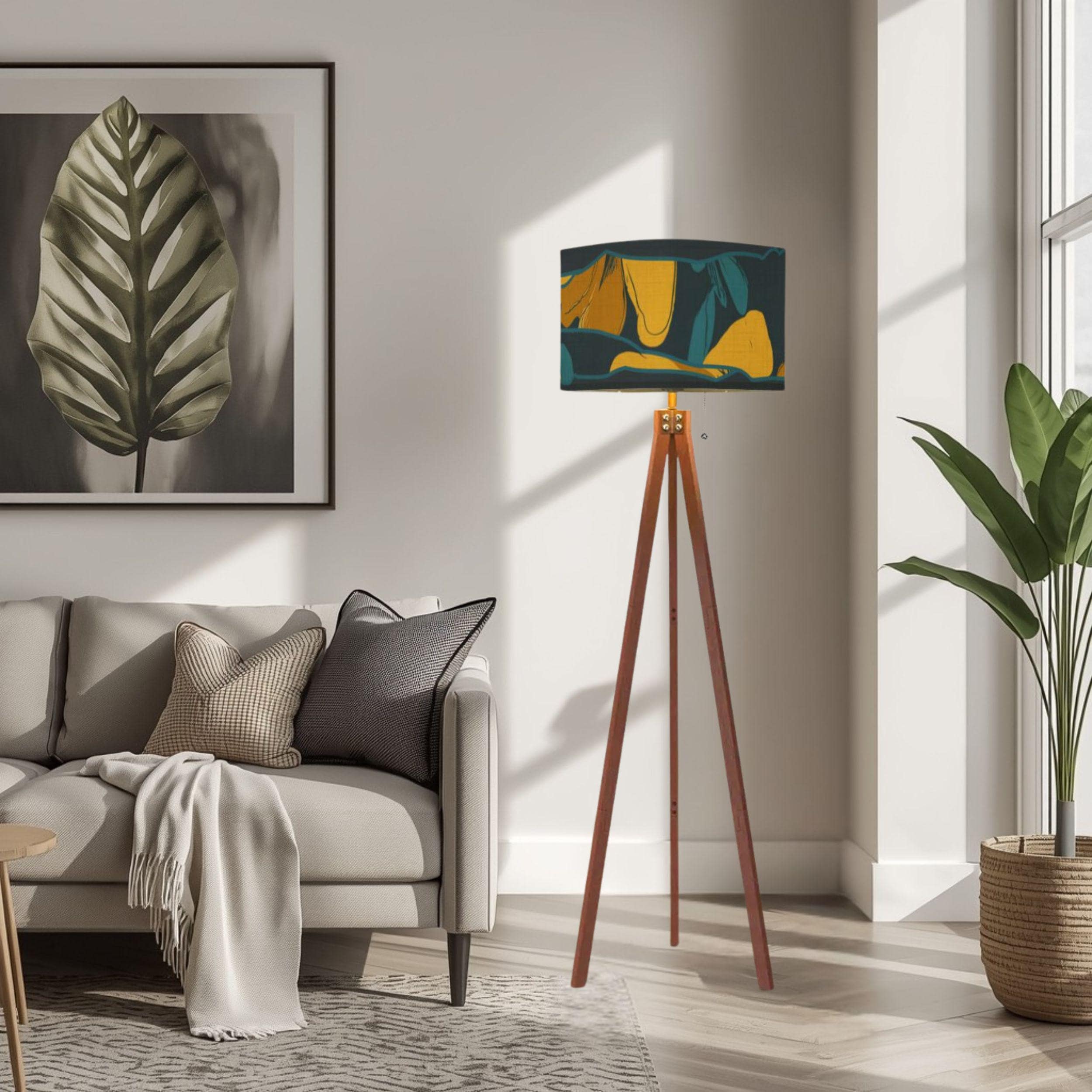 Expertly Made in the USA, this lamp combines structural elegance with modern convenience. The warm wooden tripod base provides a sturdy, designer foundation, while the UV-printed linen shade diffuses light softly to protect your eyes and showcase the vibrant, off-center botanical patterns.