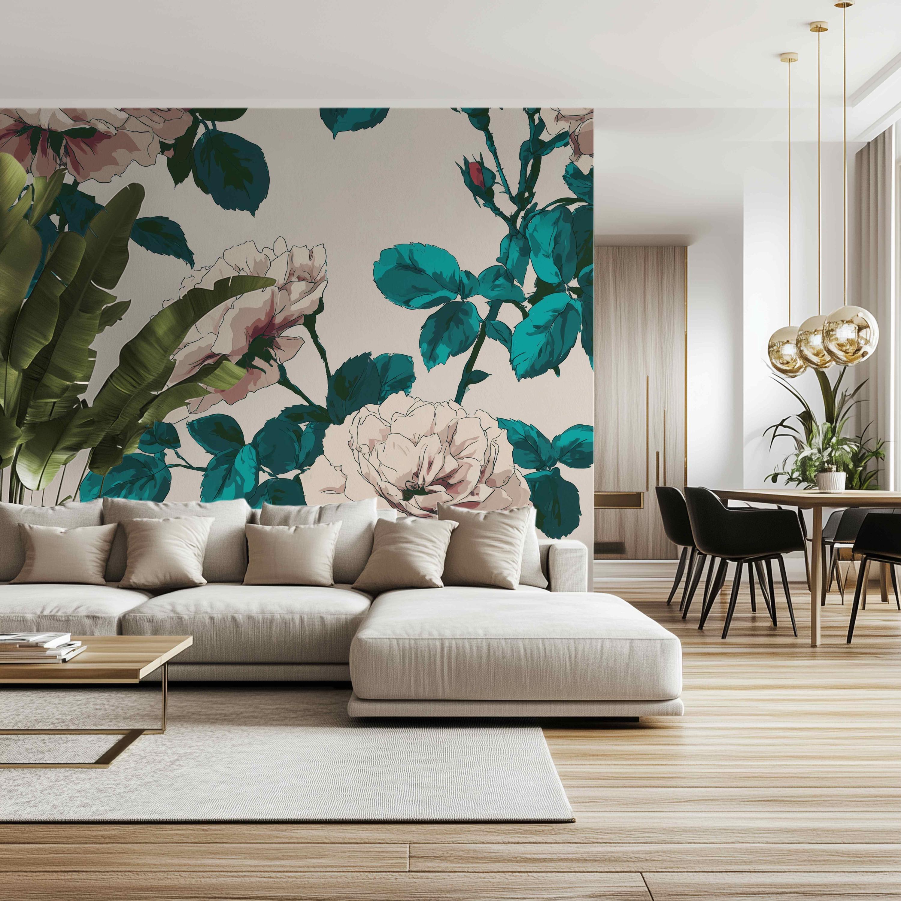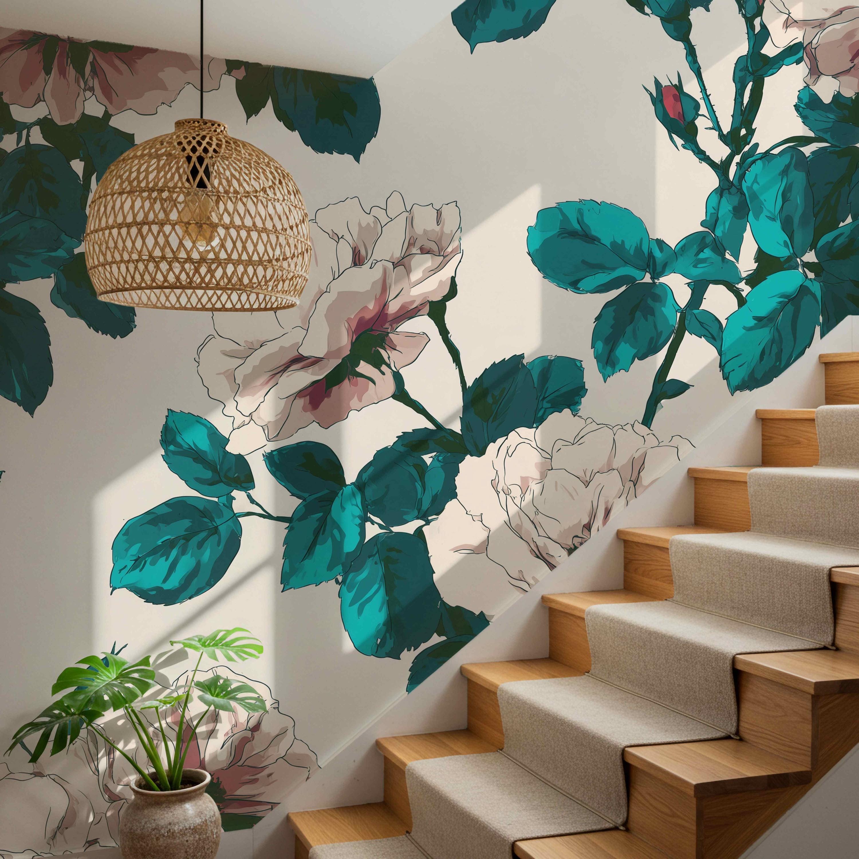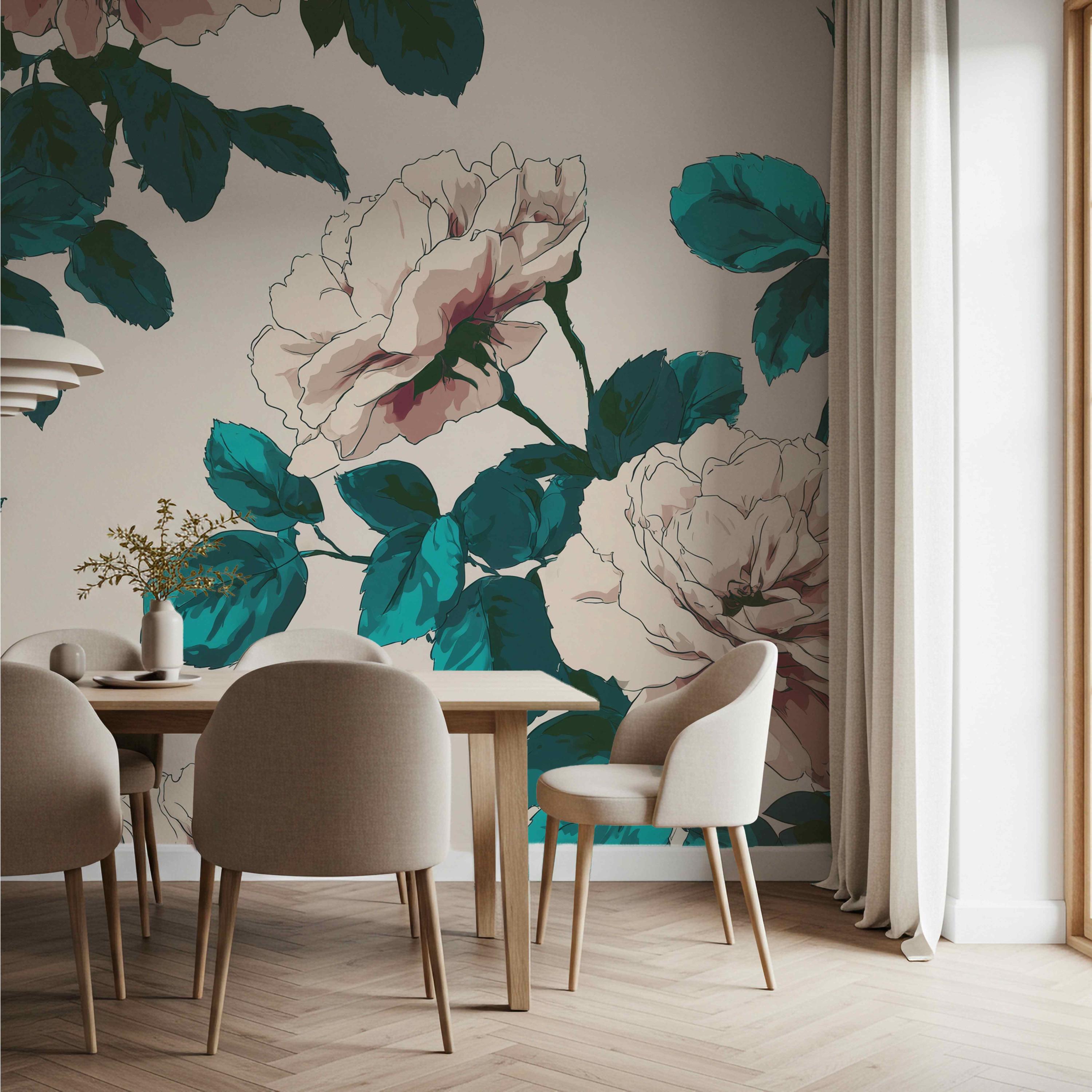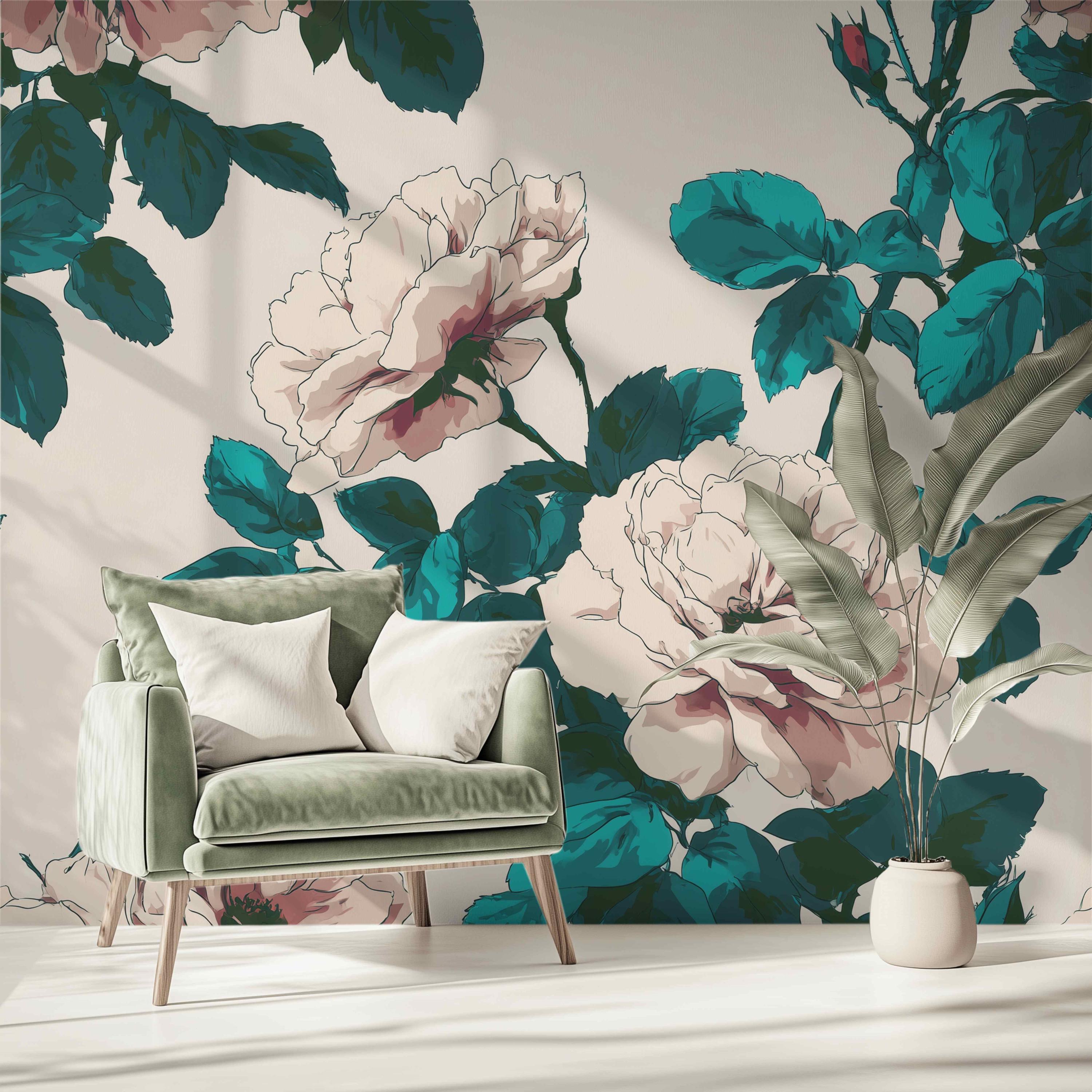 wall mural digital download, floral wall mural, botanical wall art, large scale floral print, bold floral wallpaper, digital mural file, printable wall mural, interior design mural, maximalist wall decor, floral feature wall, Airbnb wall decor, boutique hotel decor, instant download mural, Printseekers file, statement wall art, designer wall mural, boho botanical print
