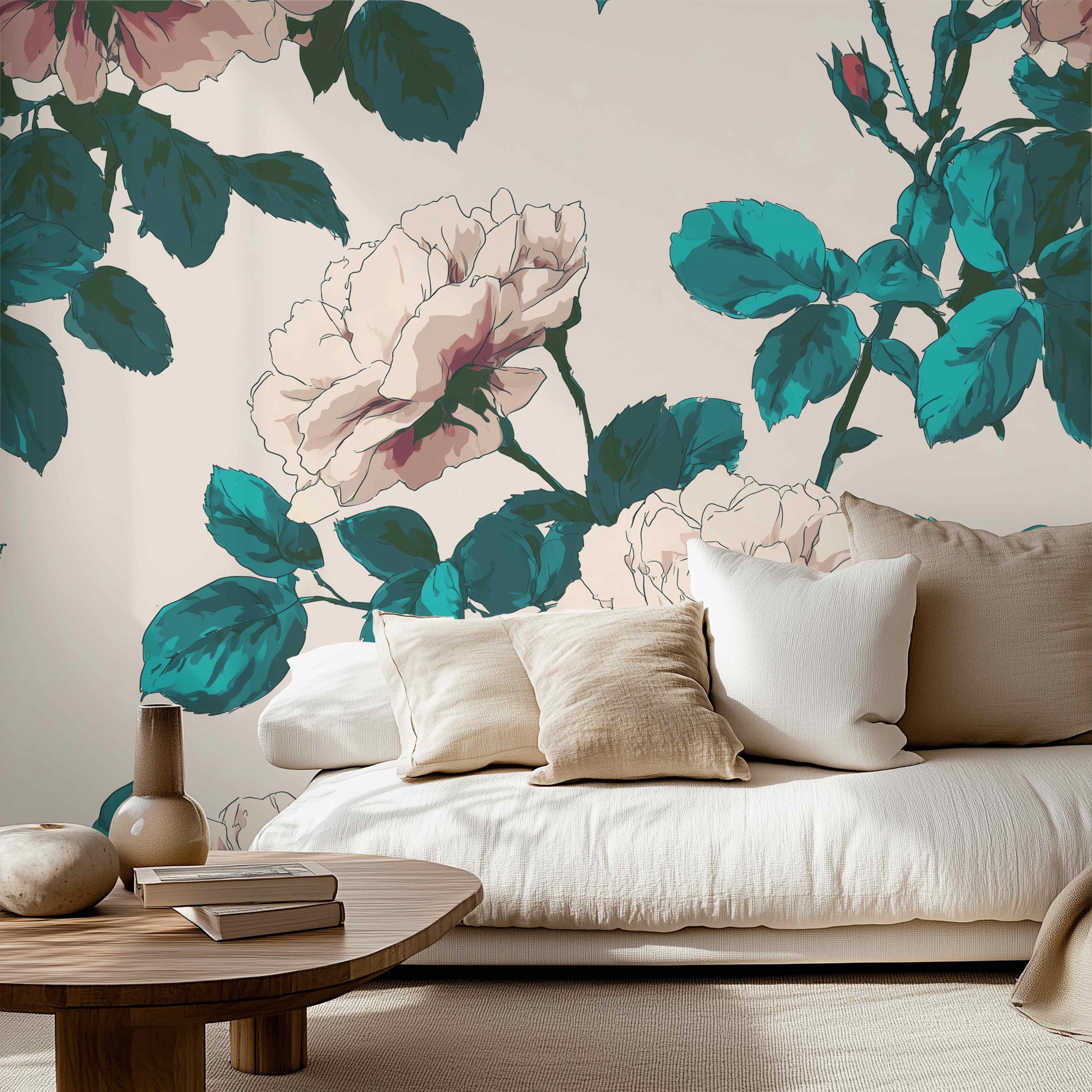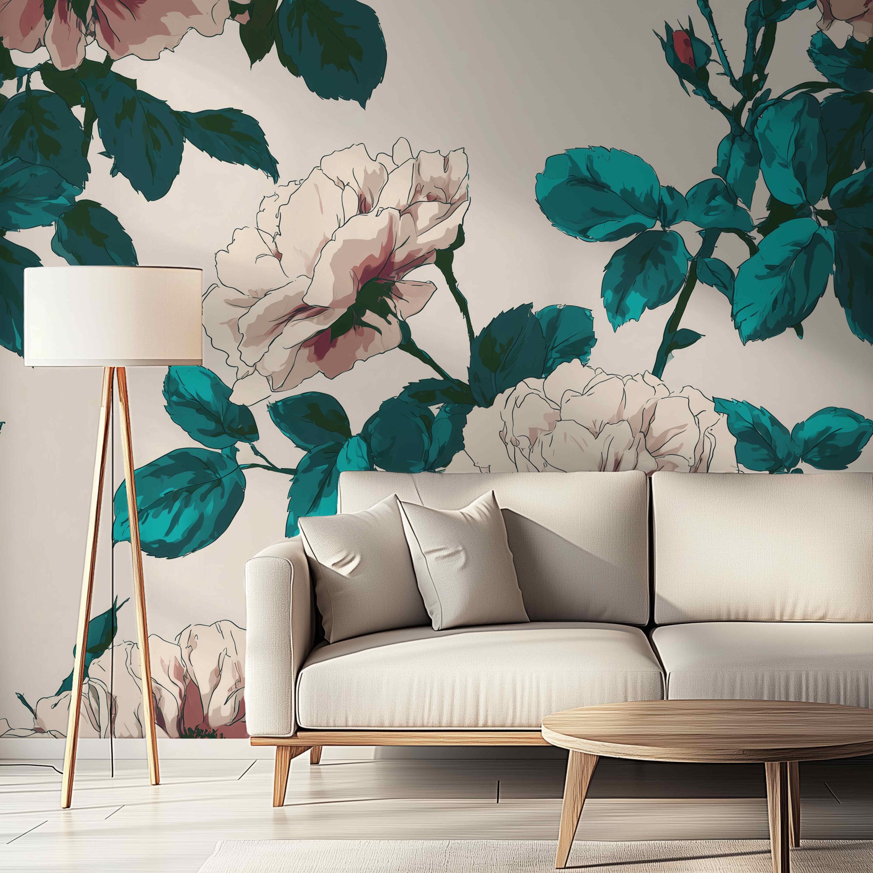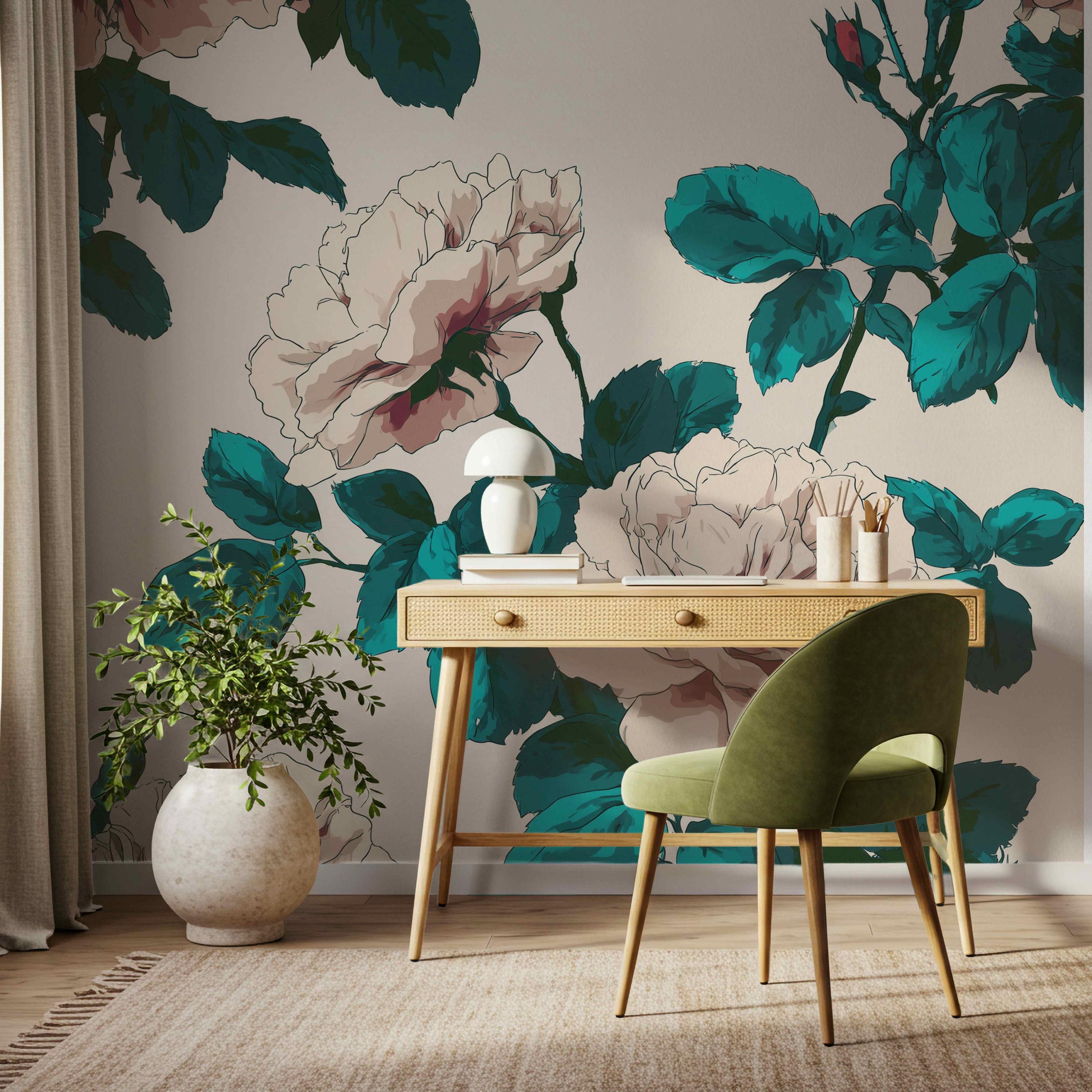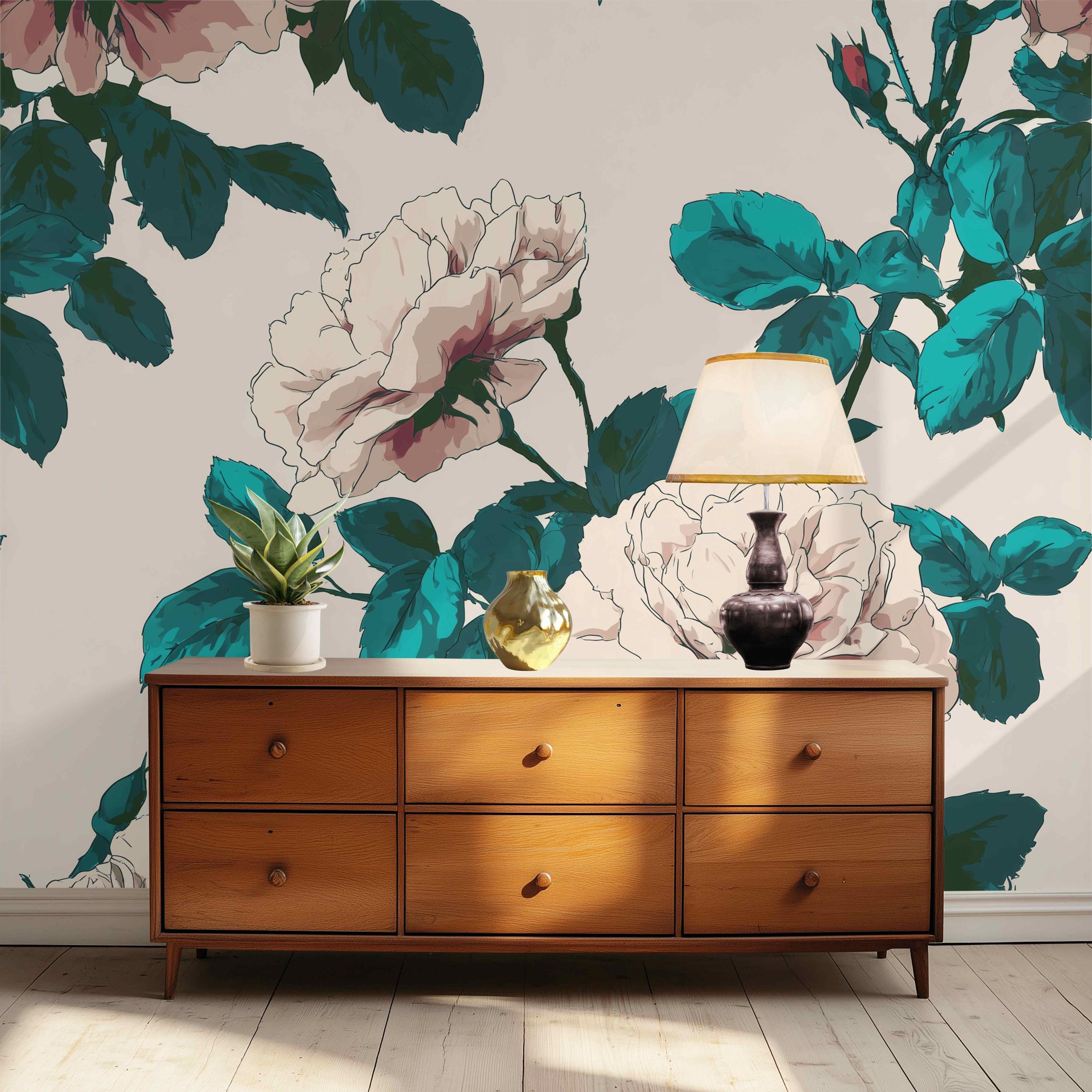 wall mural digital download, floral wall mural, botanical wall art, large scale floral print, bold floral wallpaper, digital mural file, printable wall mural, interior design mural, maximalist wall decor, floral feature wall, Airbnb wall decor, boutique hotel decor, instant download mural, Printseekers file, statement wall art, designer wall mural, boho botanical print