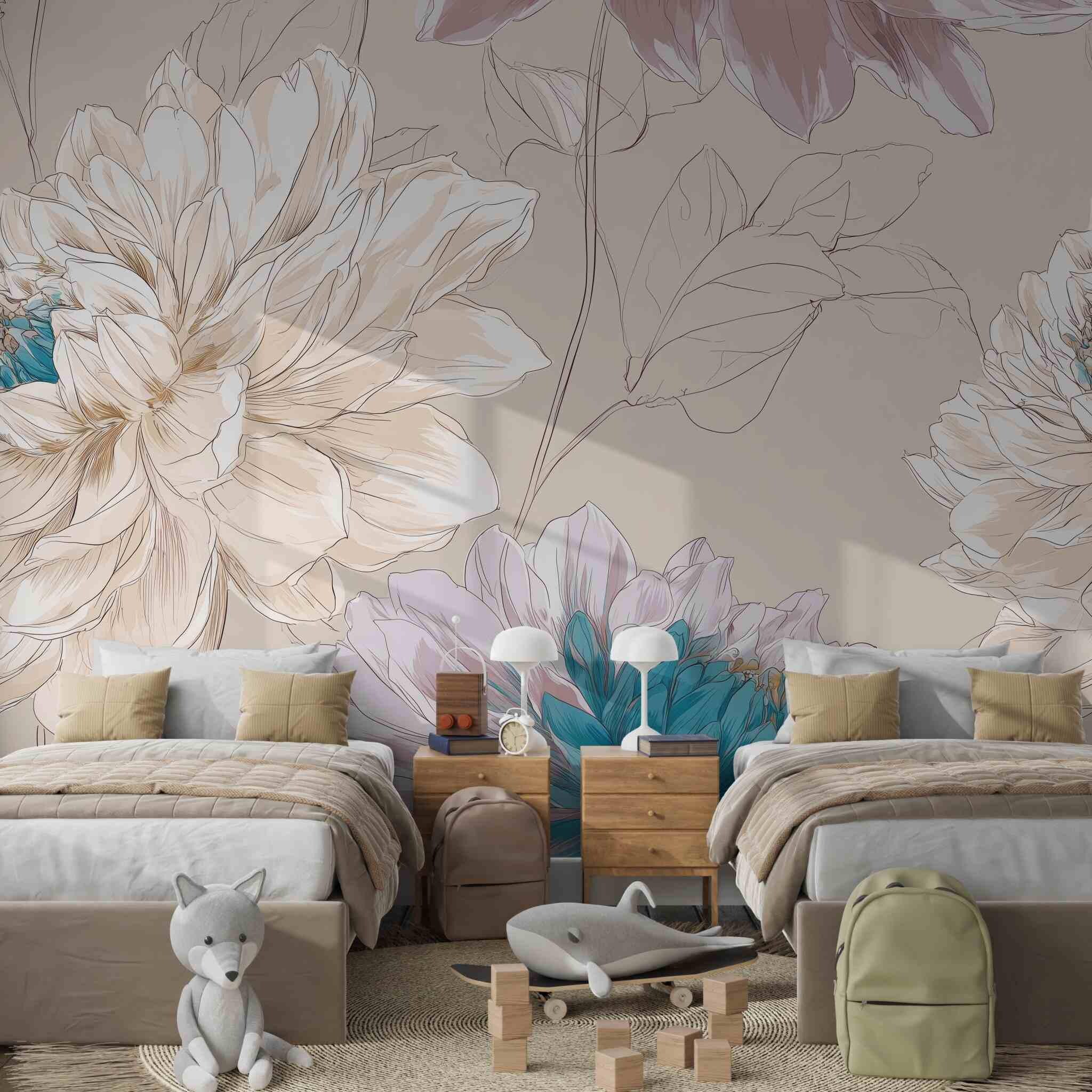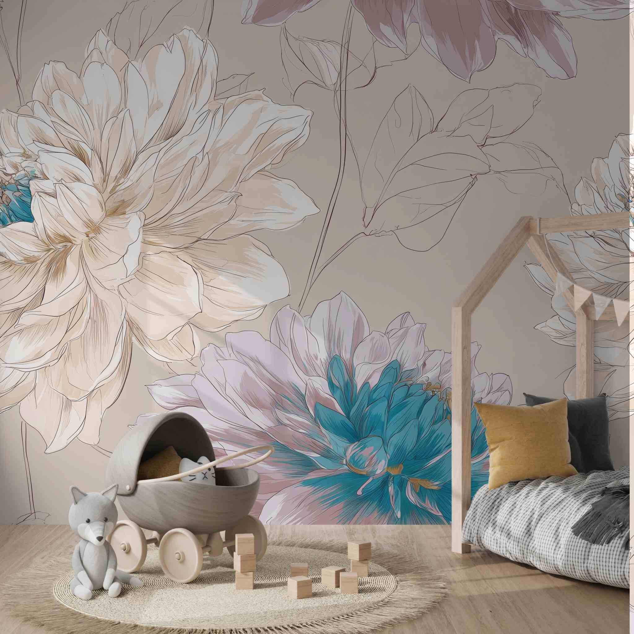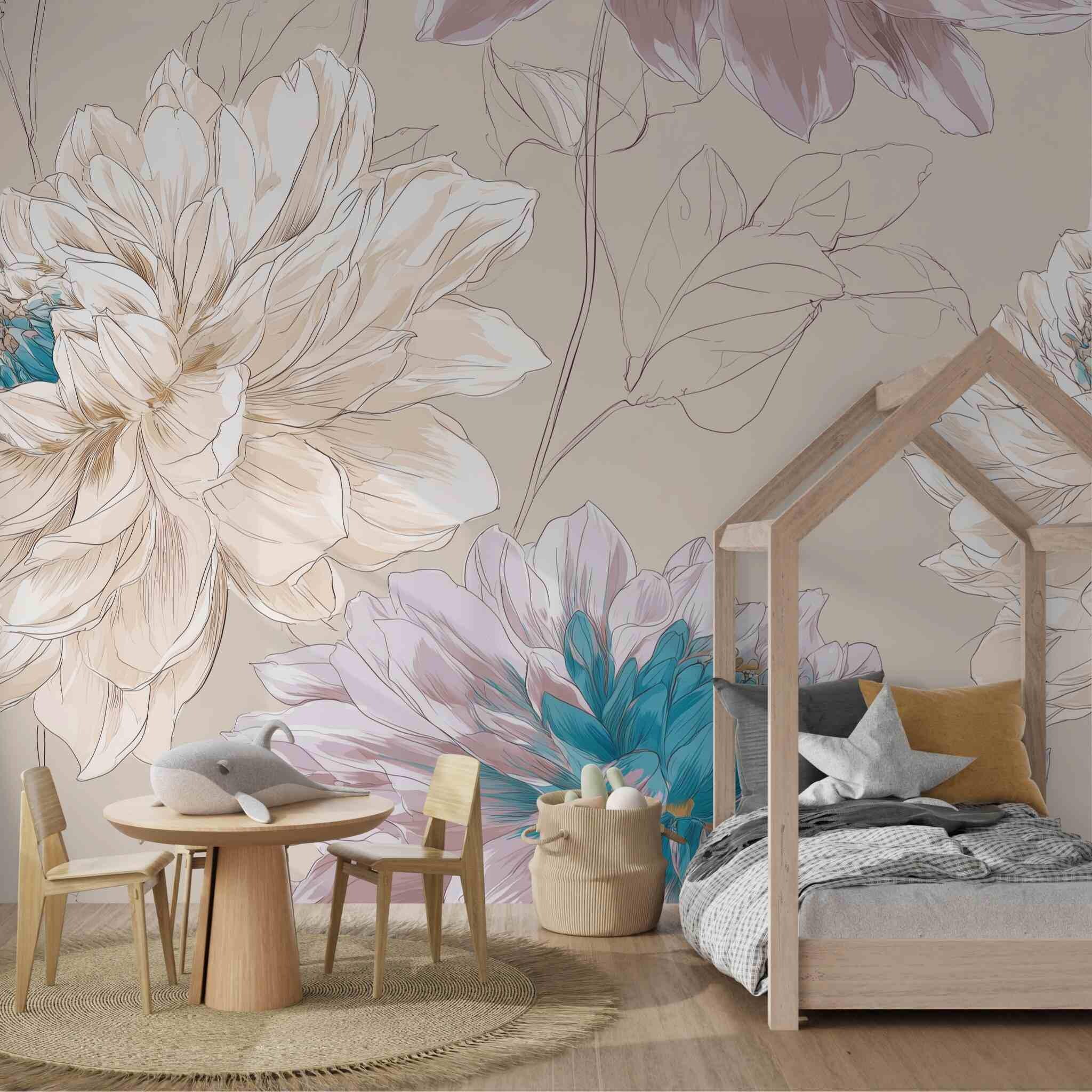 Sweet Memories in the Early Morning | Nursery or Kids Room Wall Mural Digital Download, Large Floral Print File, Bold Home Decor