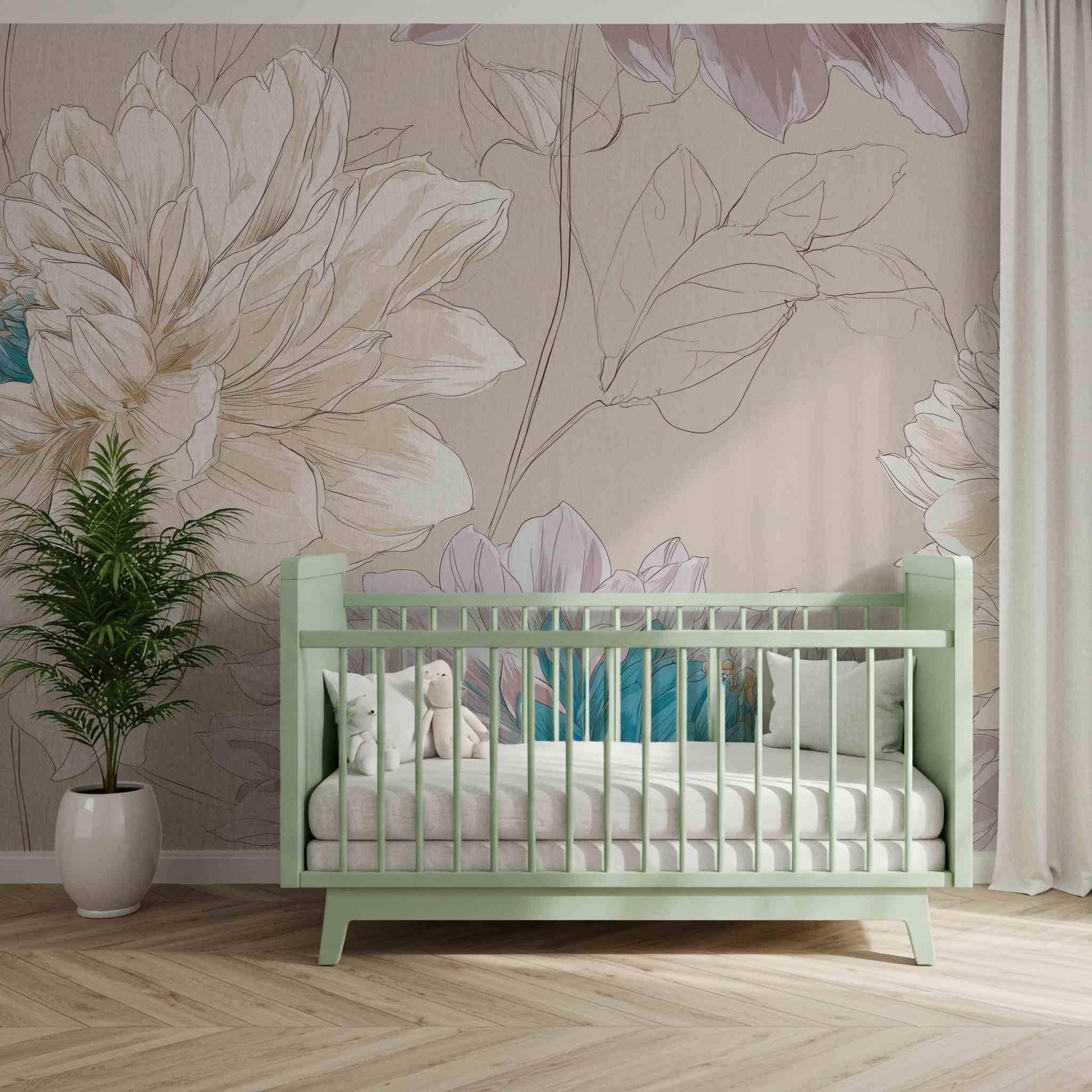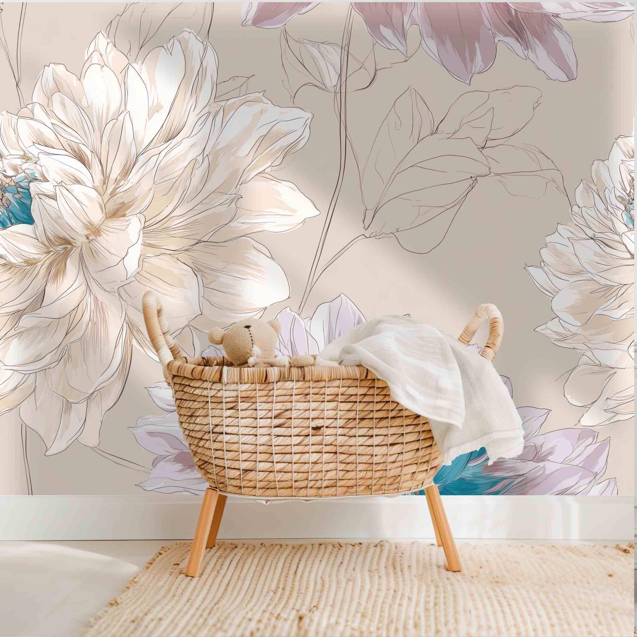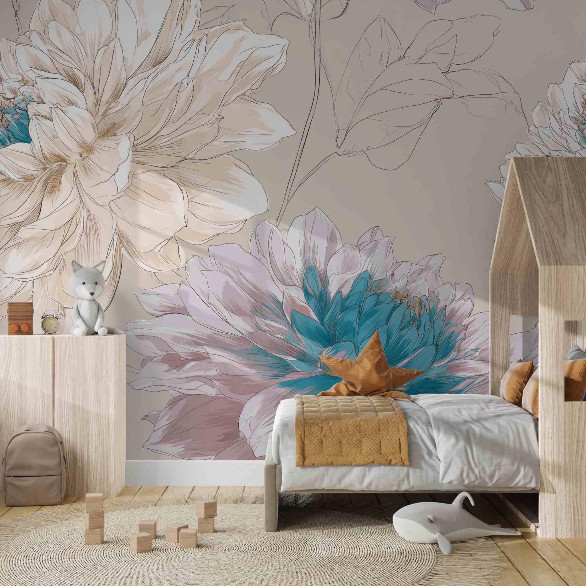 Sweet Memories in the Early Morning | Nursery or Kids Room Wall Mural Digital Download, Large Floral Print File, Bold Home Decor
