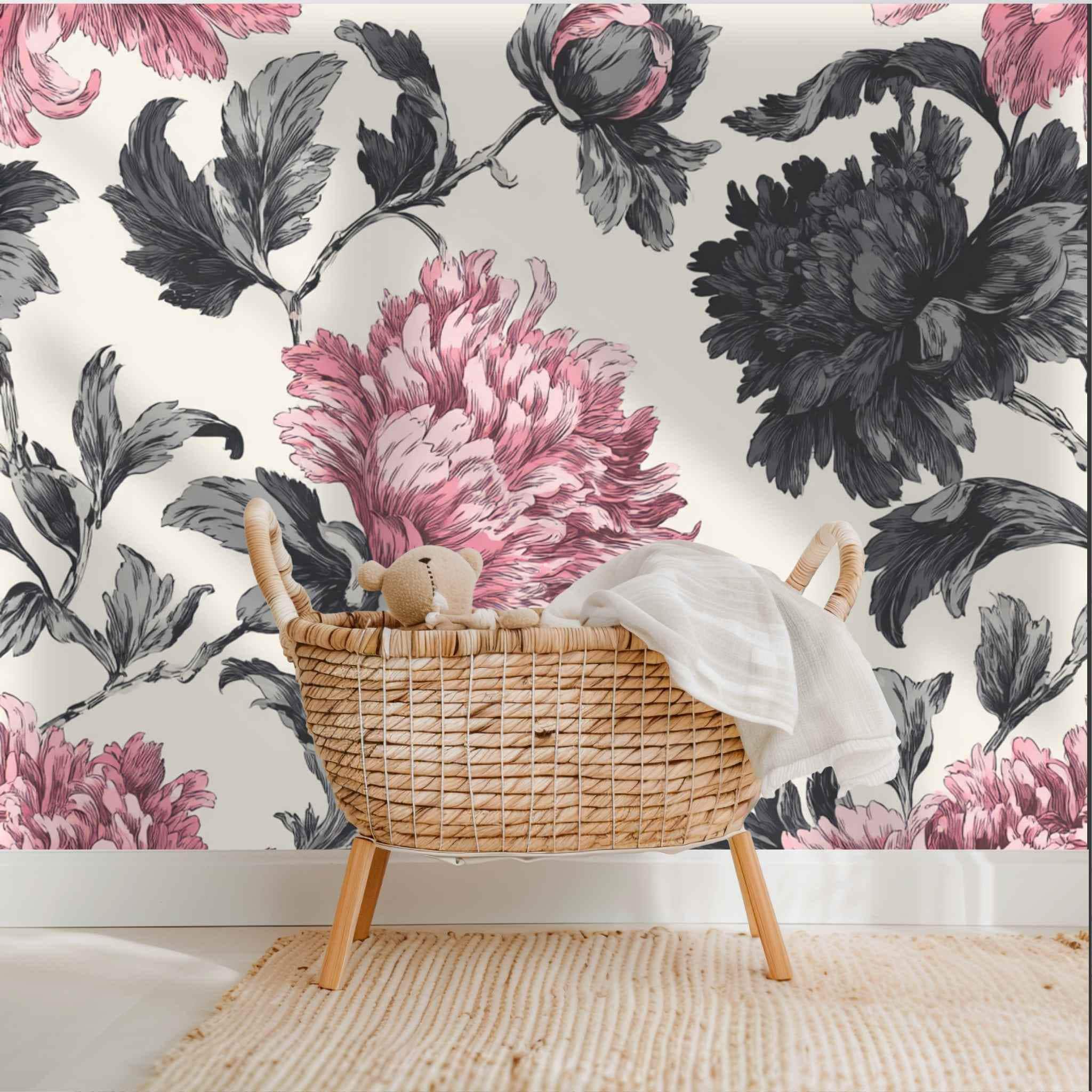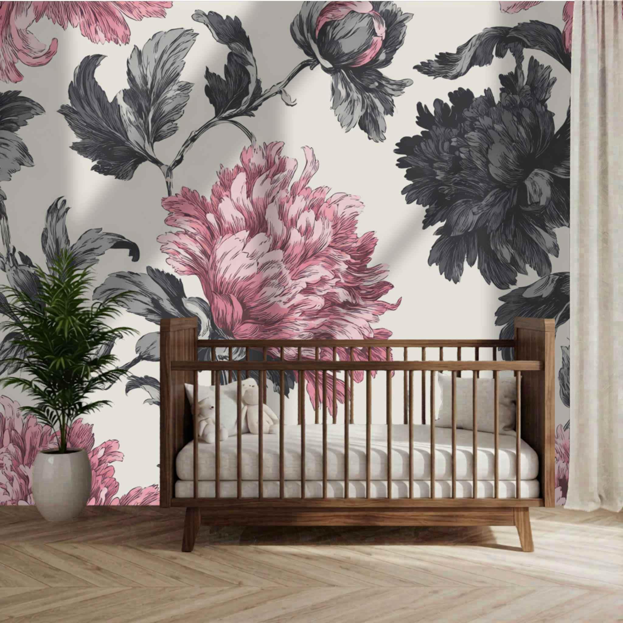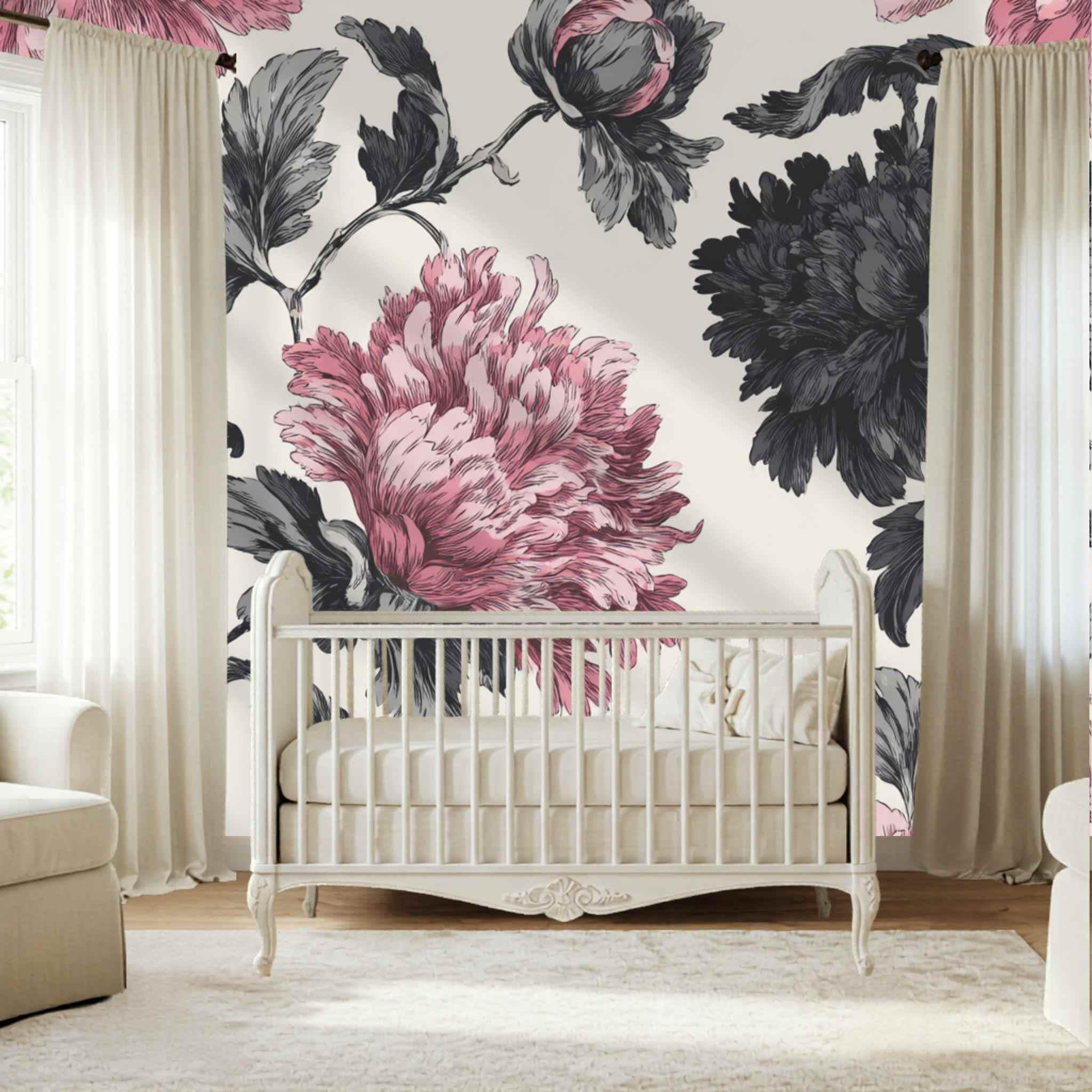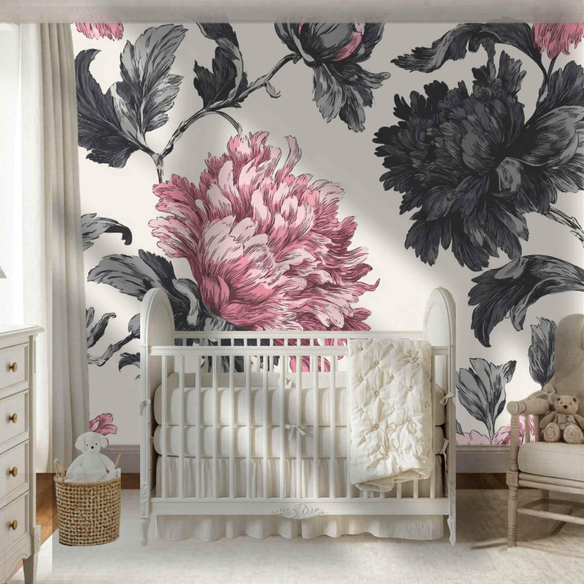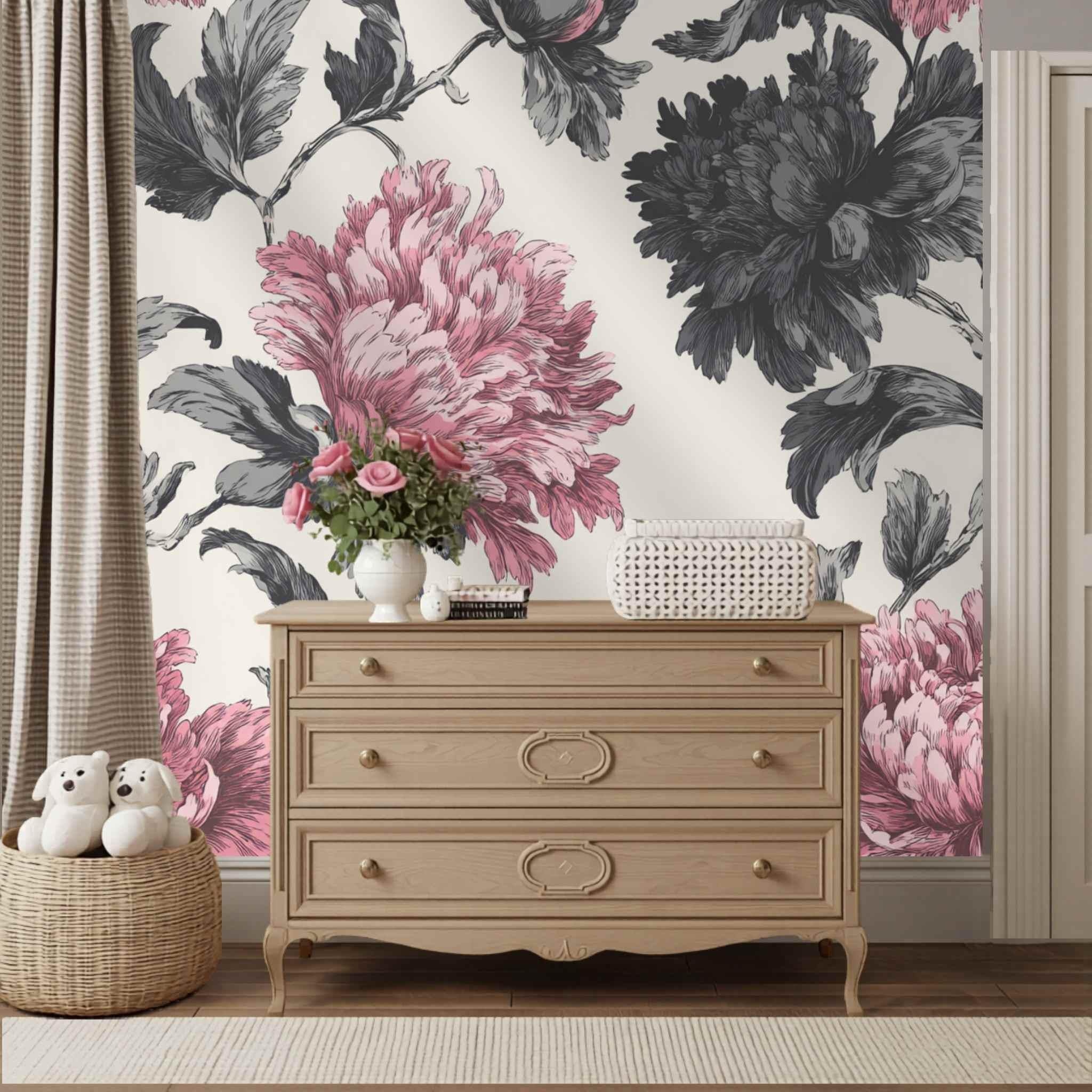 Rosy Blooms in Late Afternoon | Nursery or Kids Room Wall Mural Digital Download, Large Floral Print File, Bold Home Decor