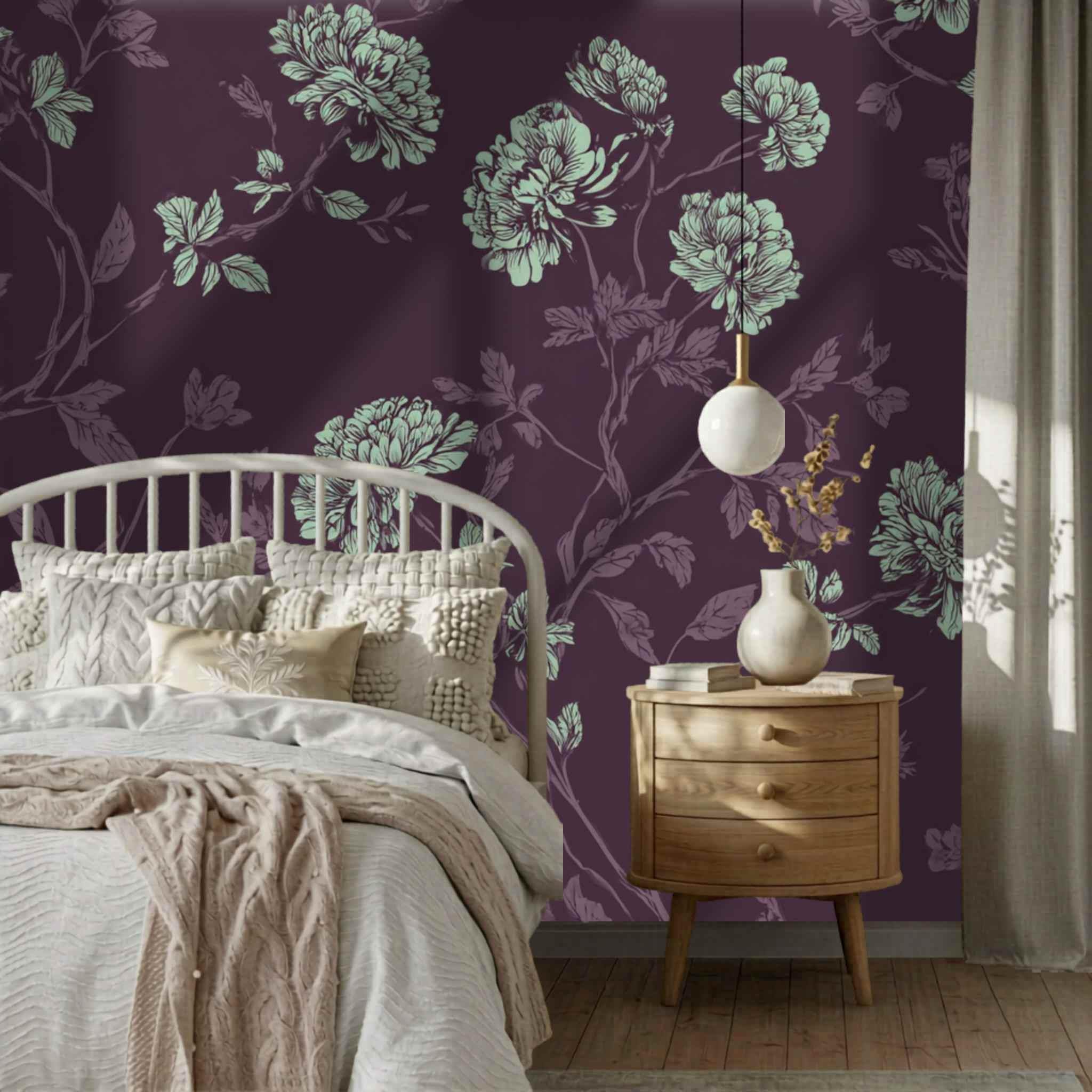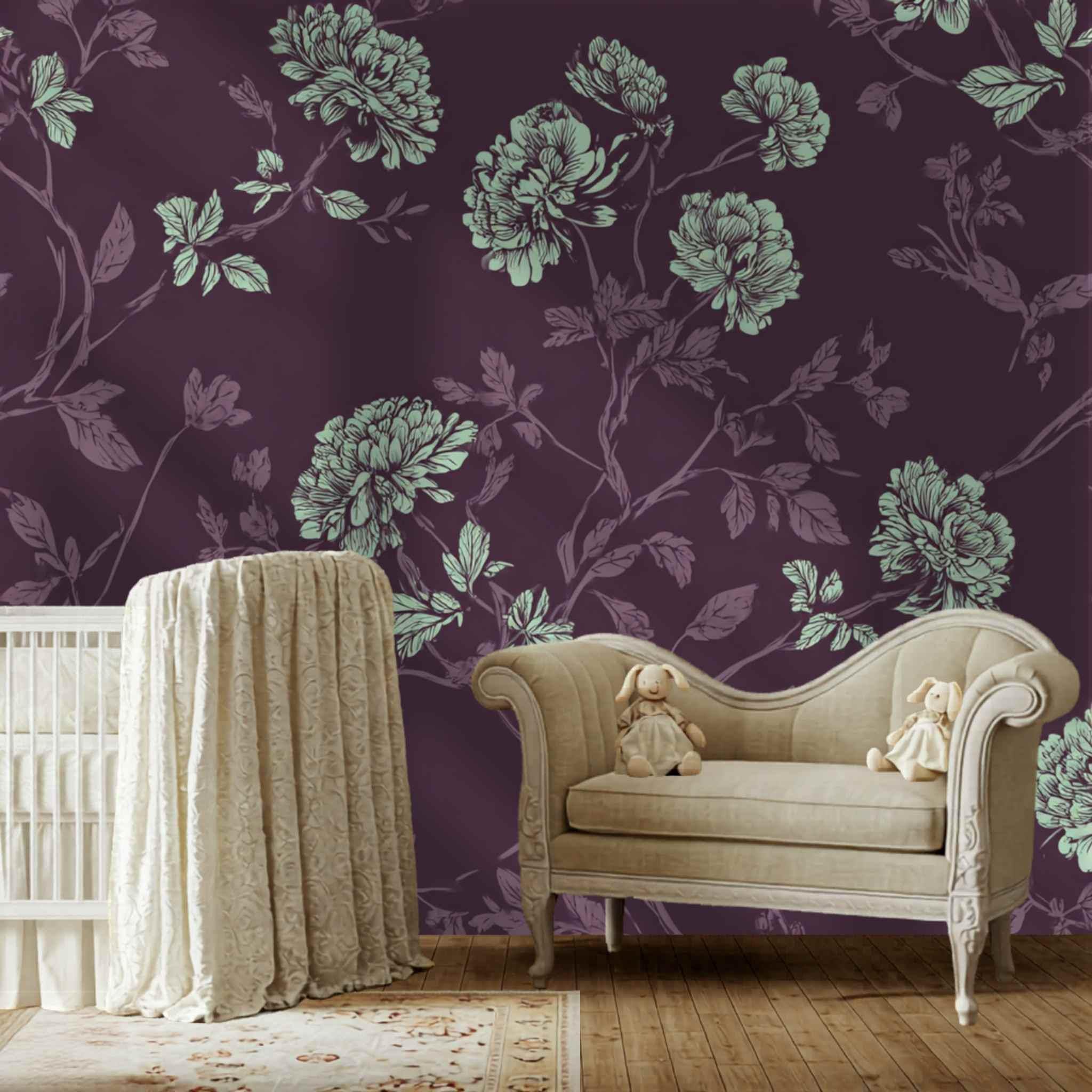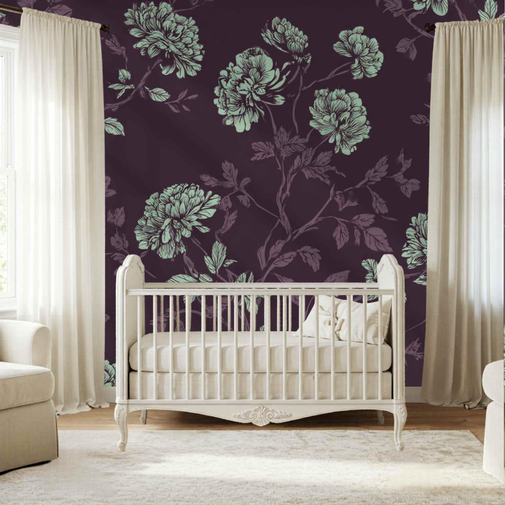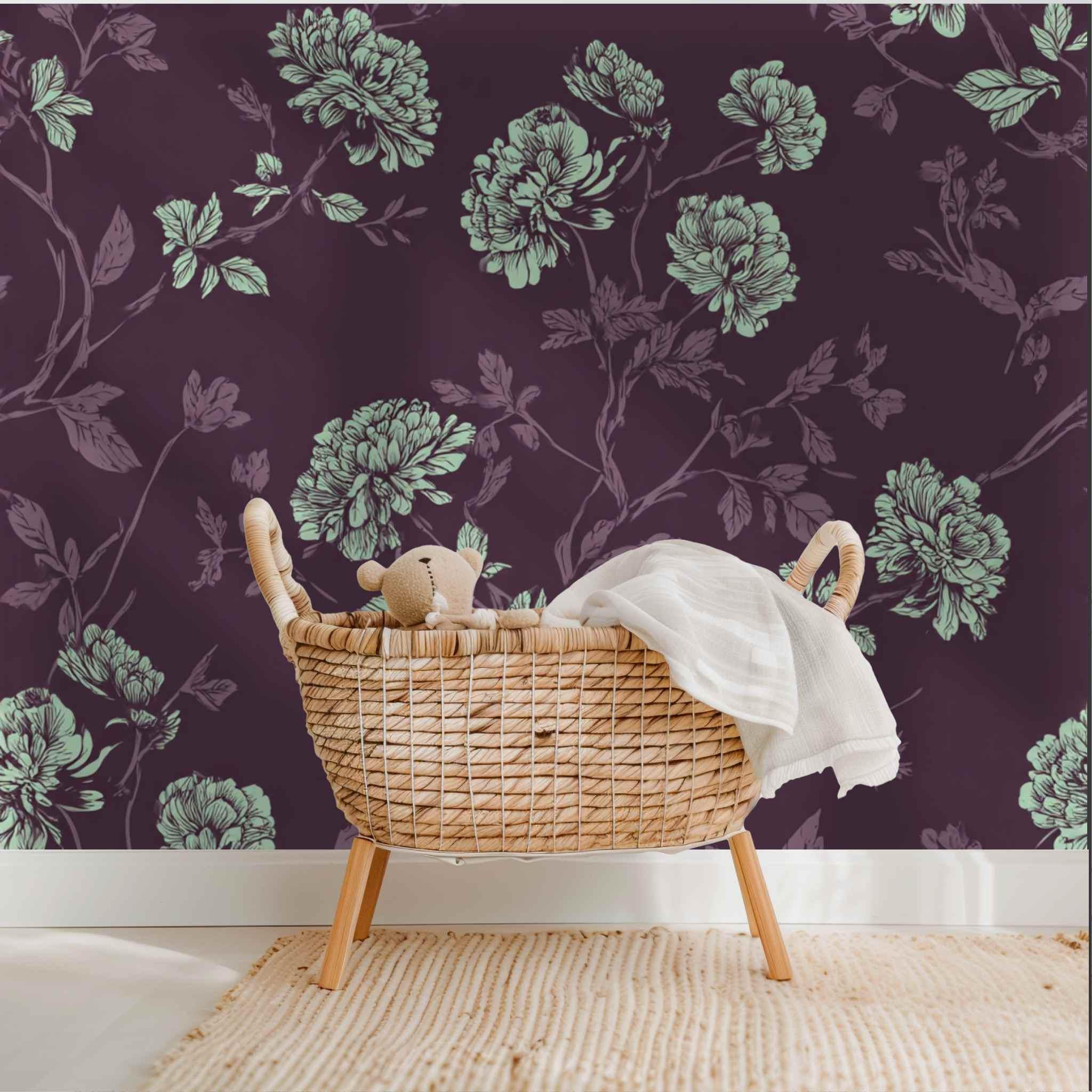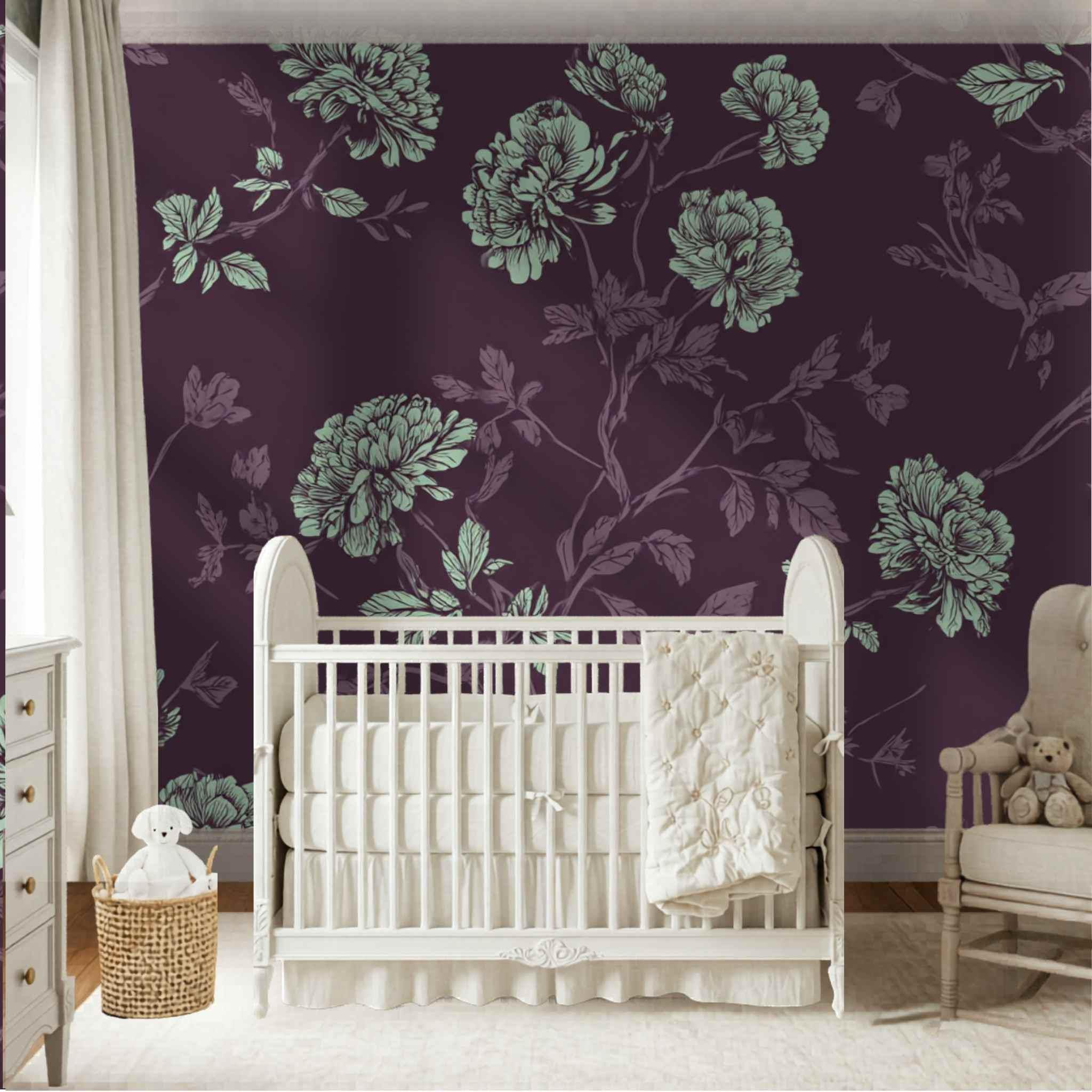A Proper Plum and Mint Tea | Nursery or Kids Room Wall Mural Digital Download, Large Floral Print File, Bold Home Decor