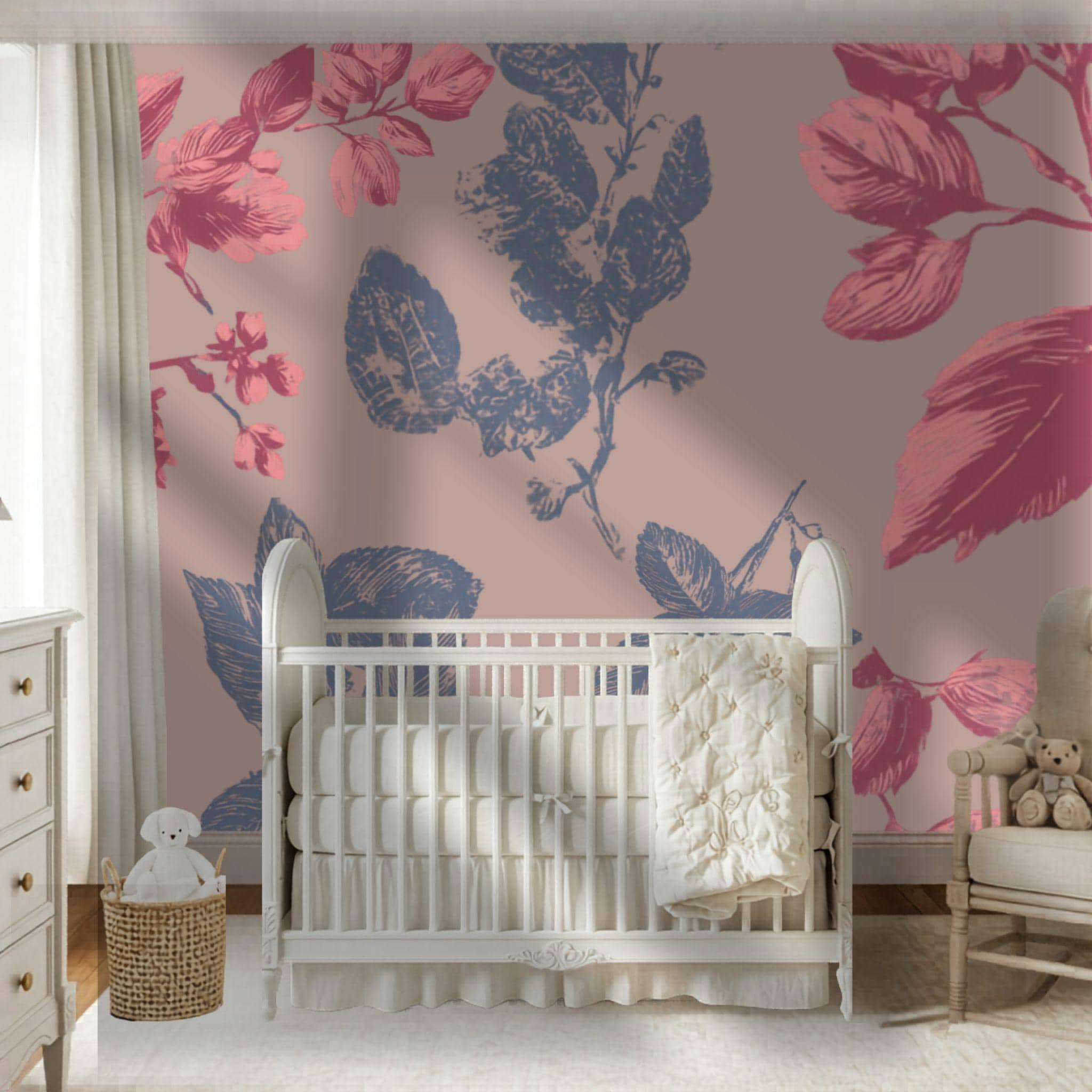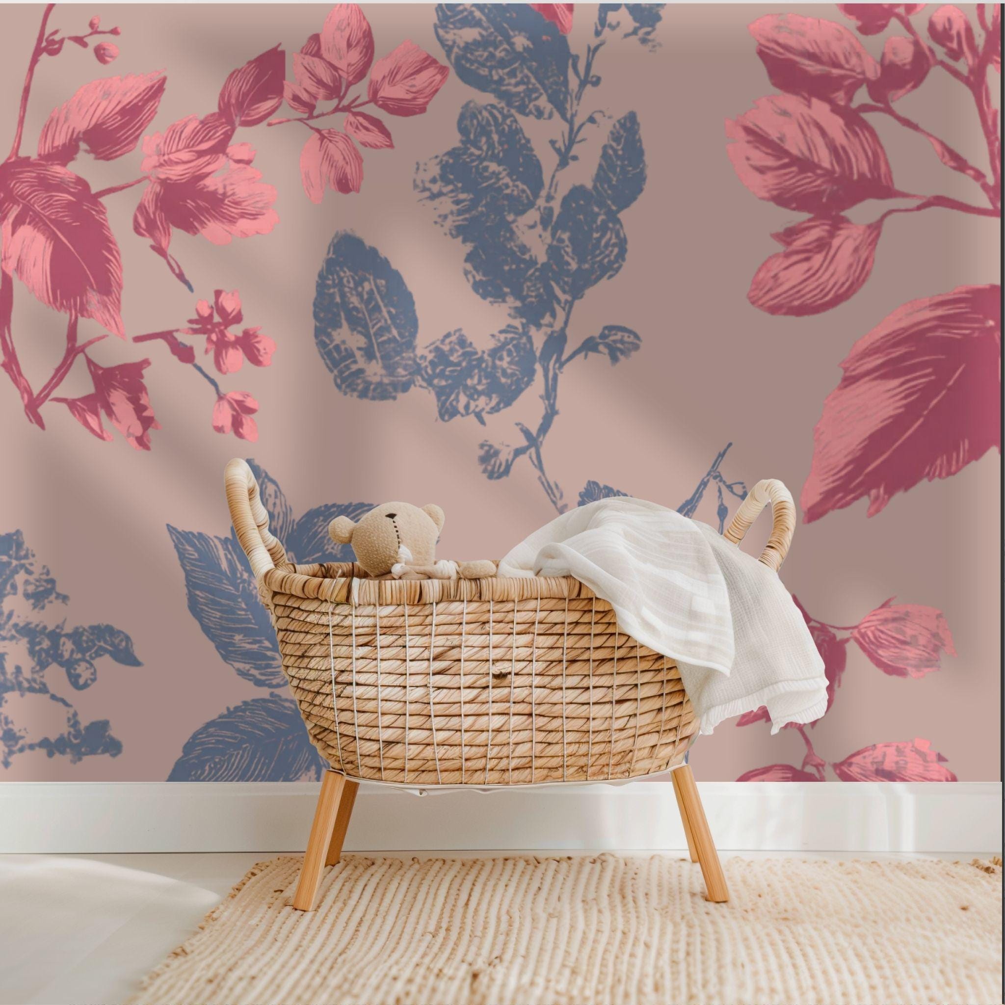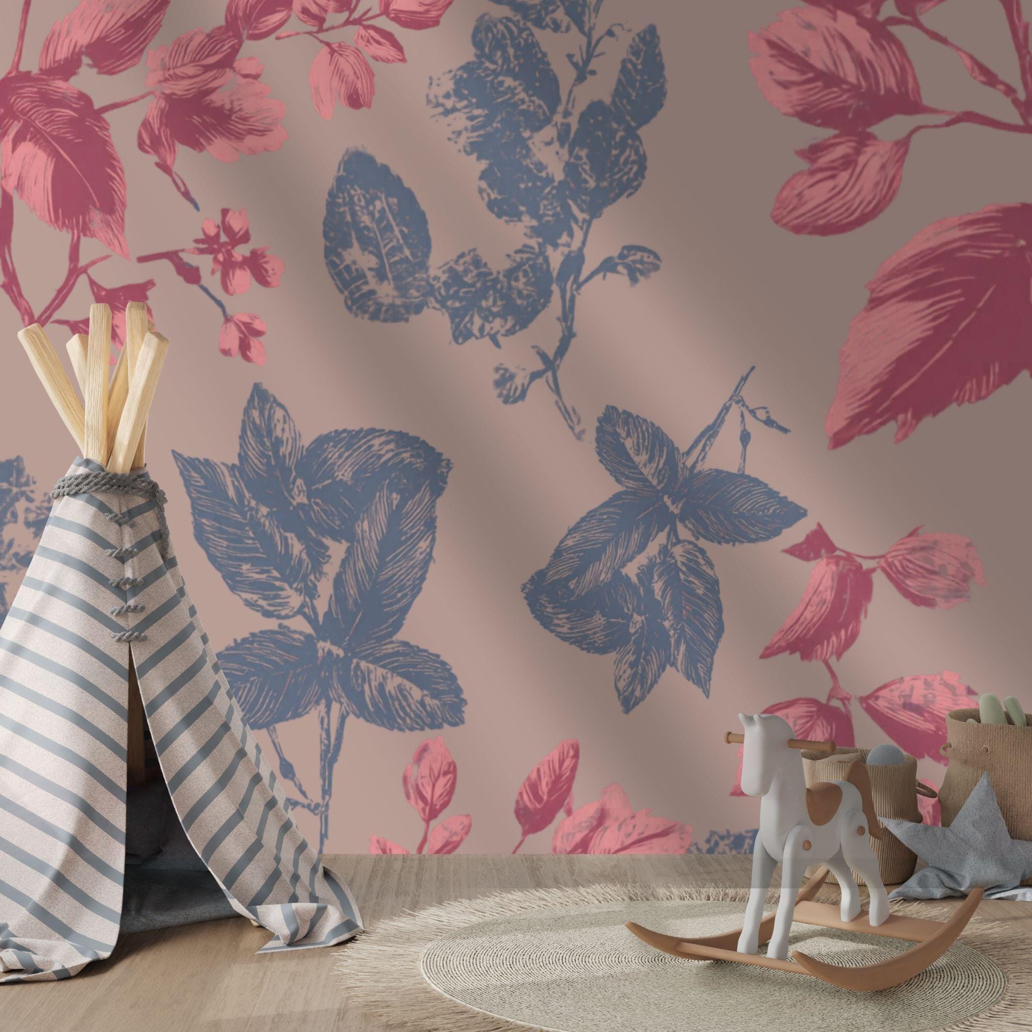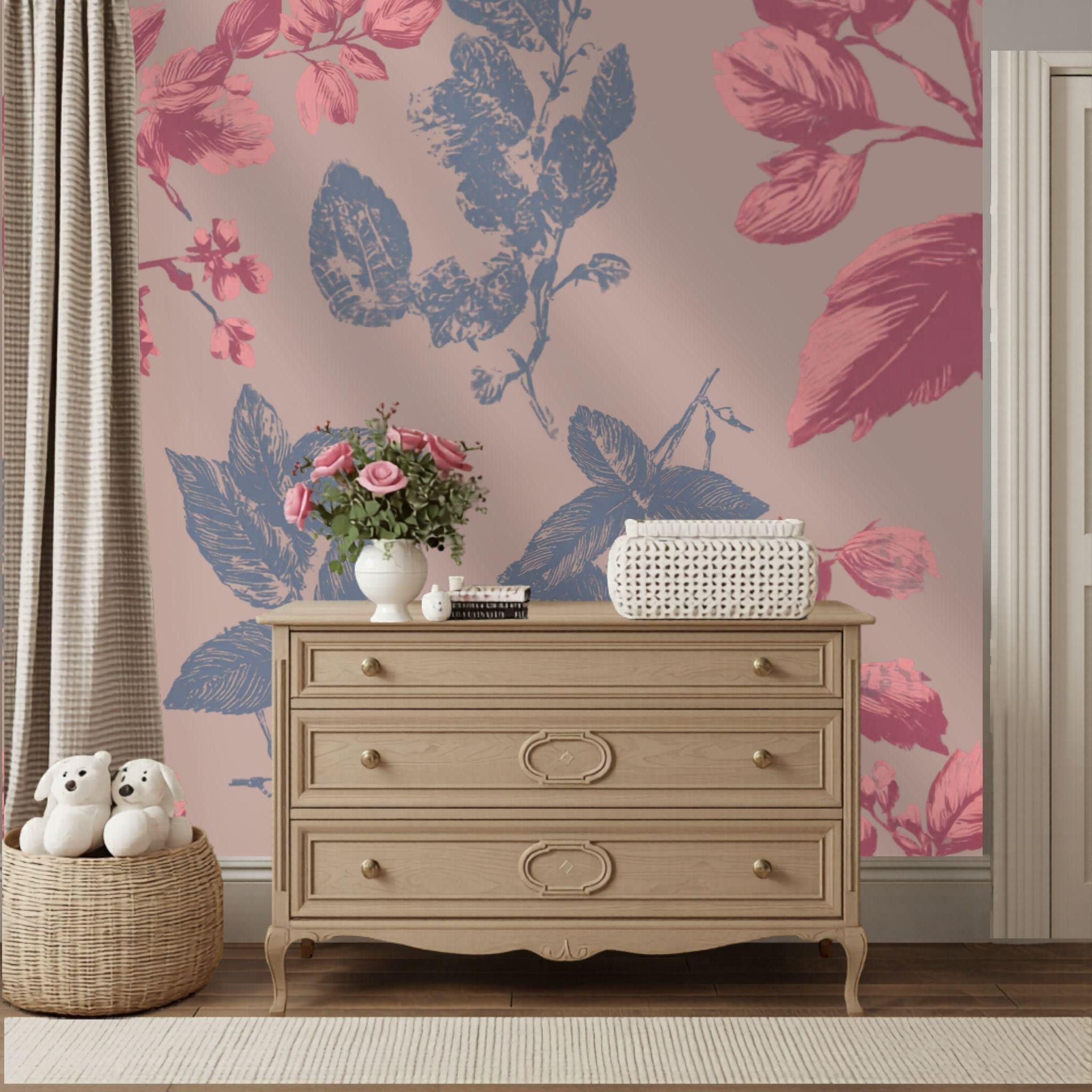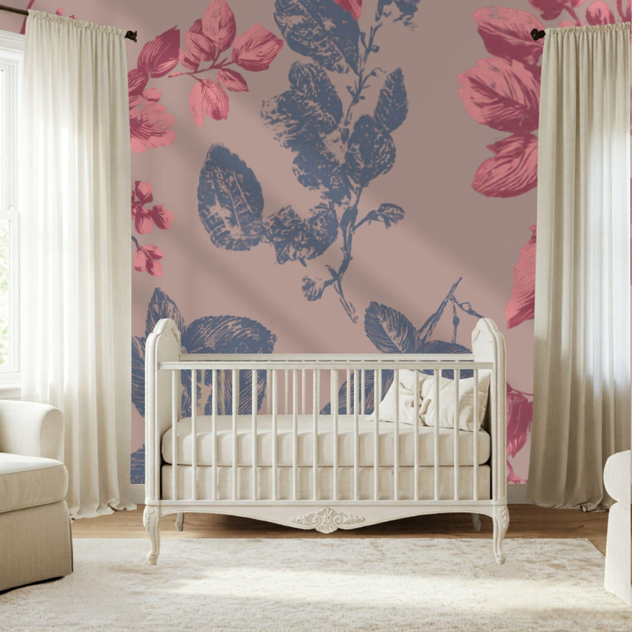 Botanical Blush in the Parlour | Nursery or Kids Room Wall Mural Digital Download, Large Floral Print File, Bold Home Decor