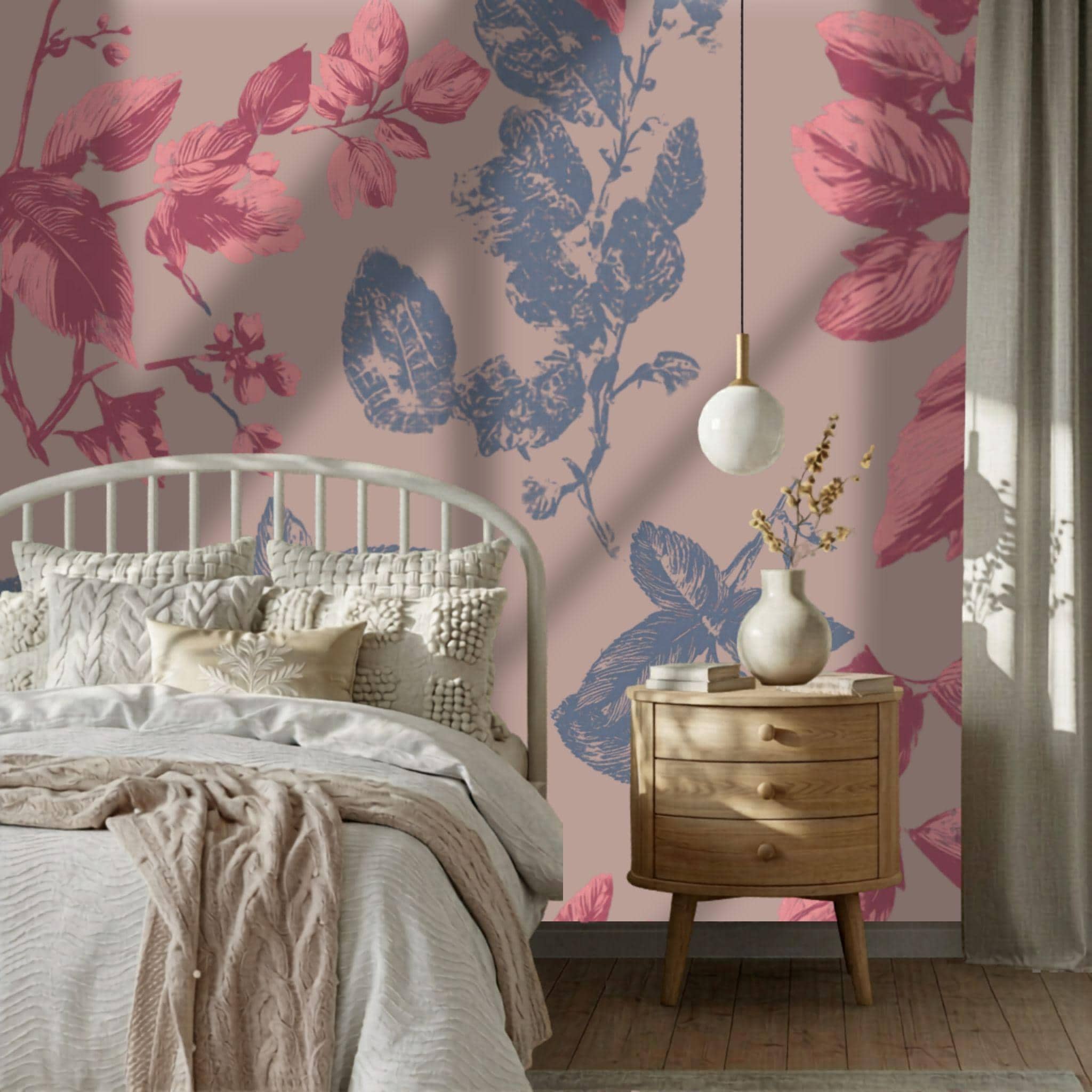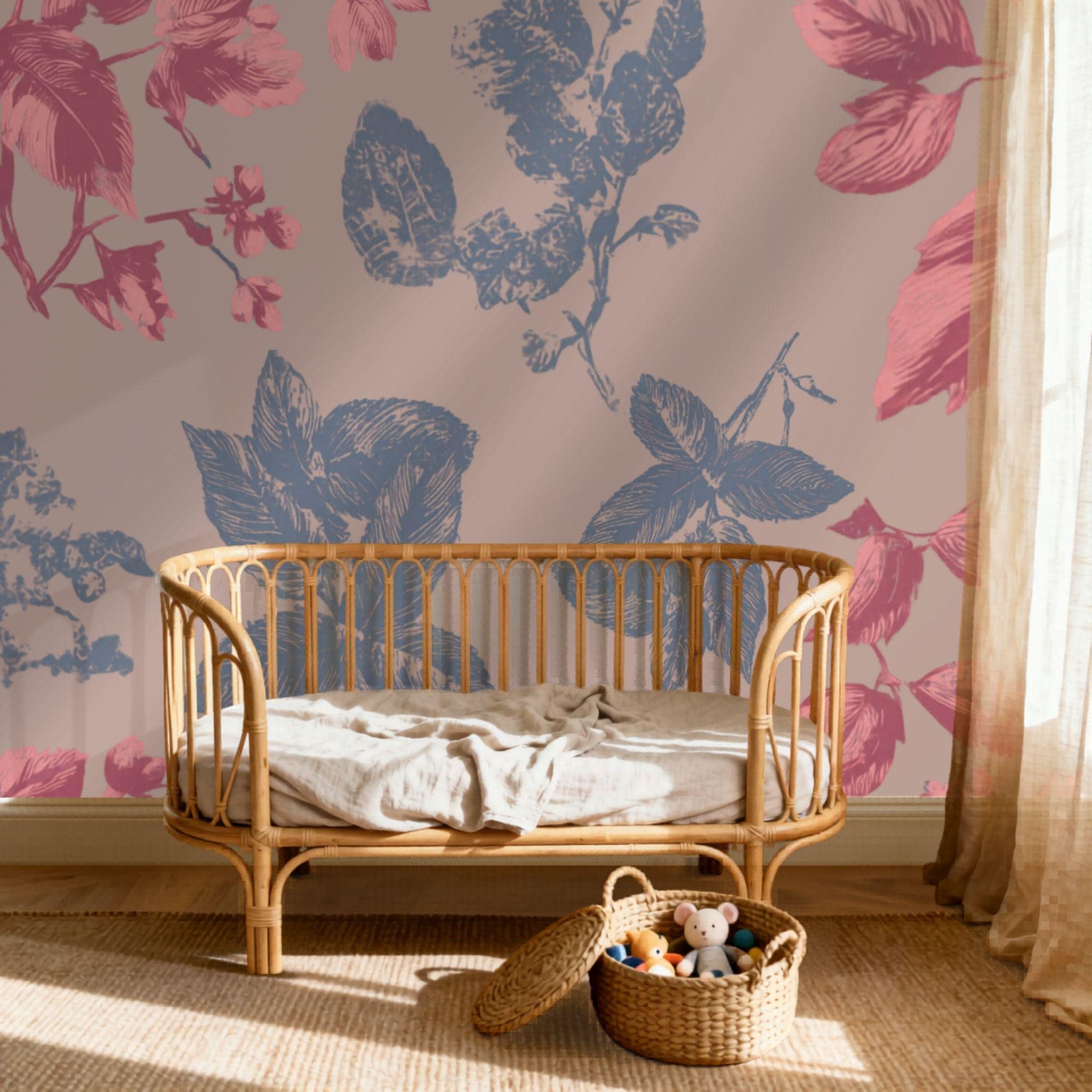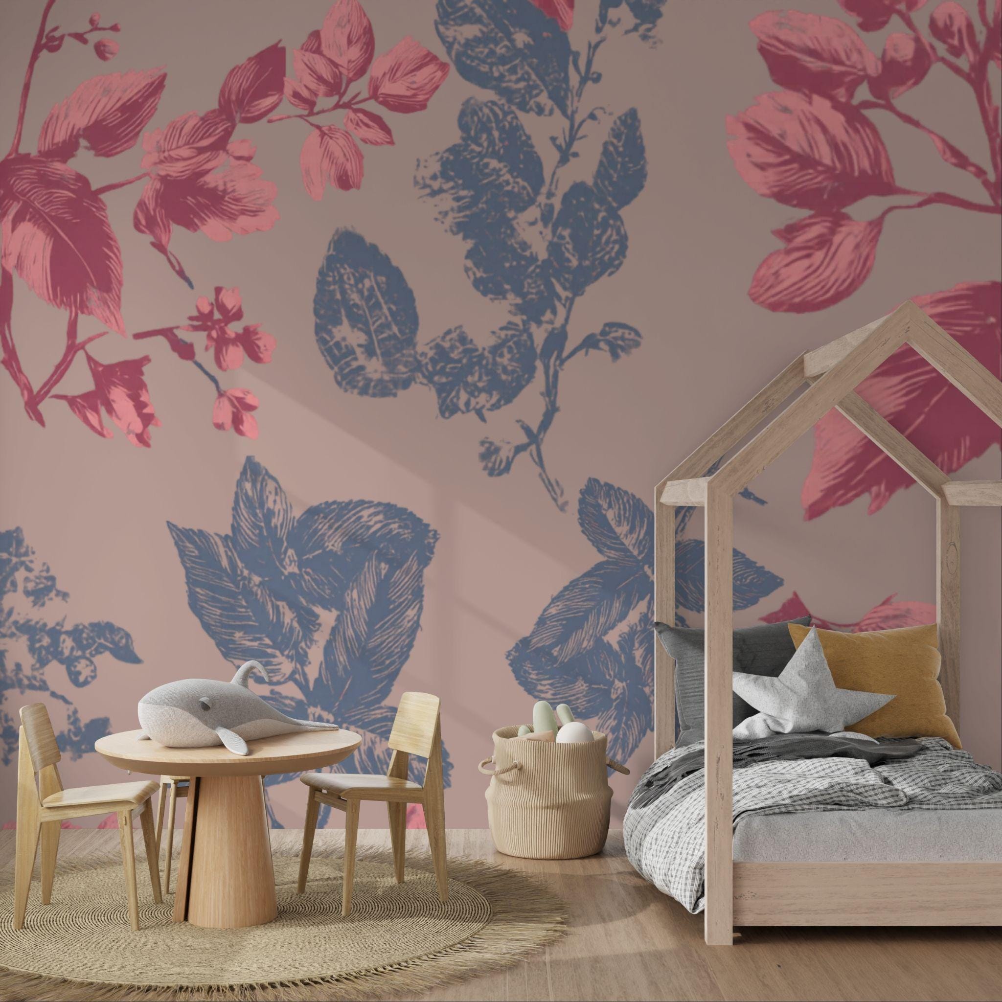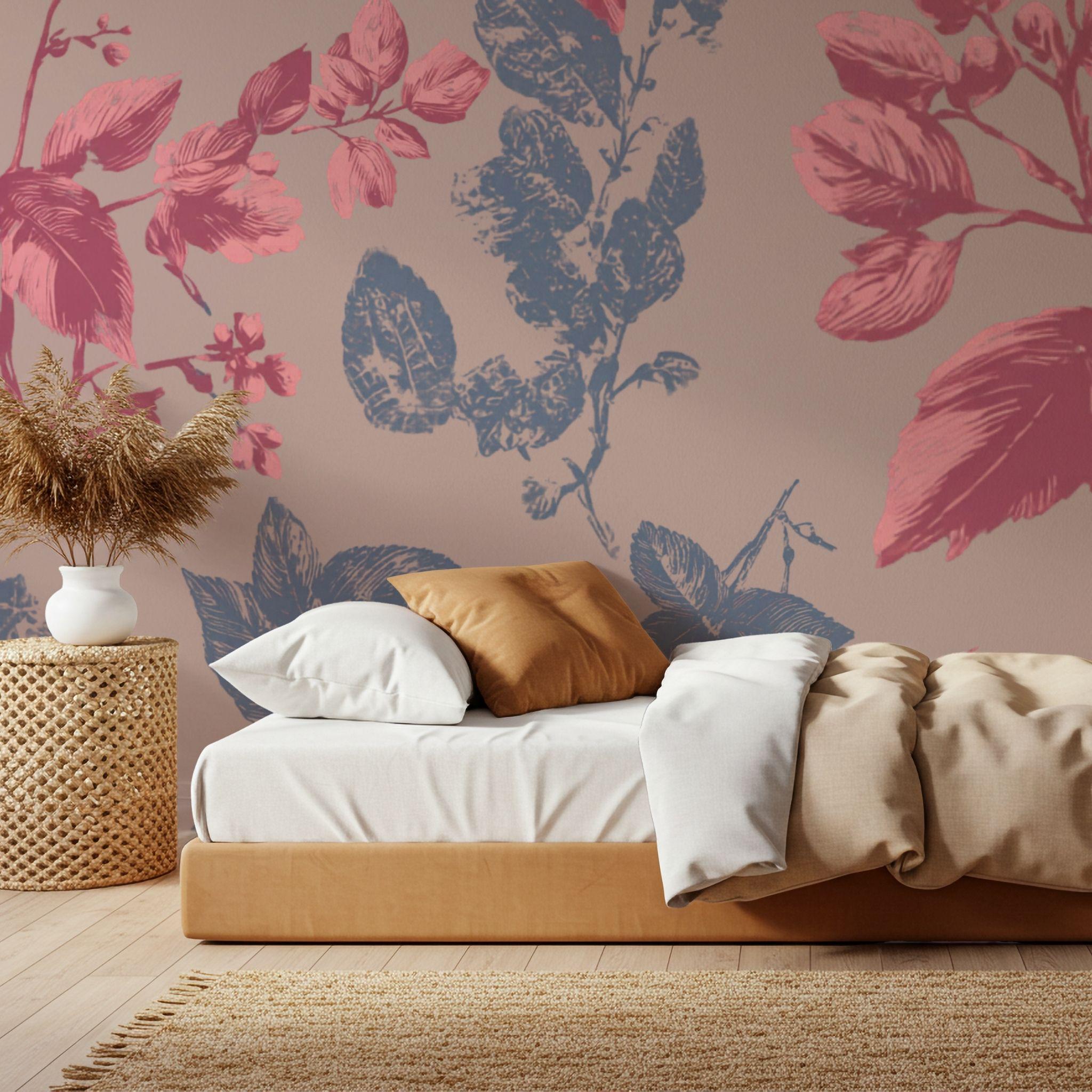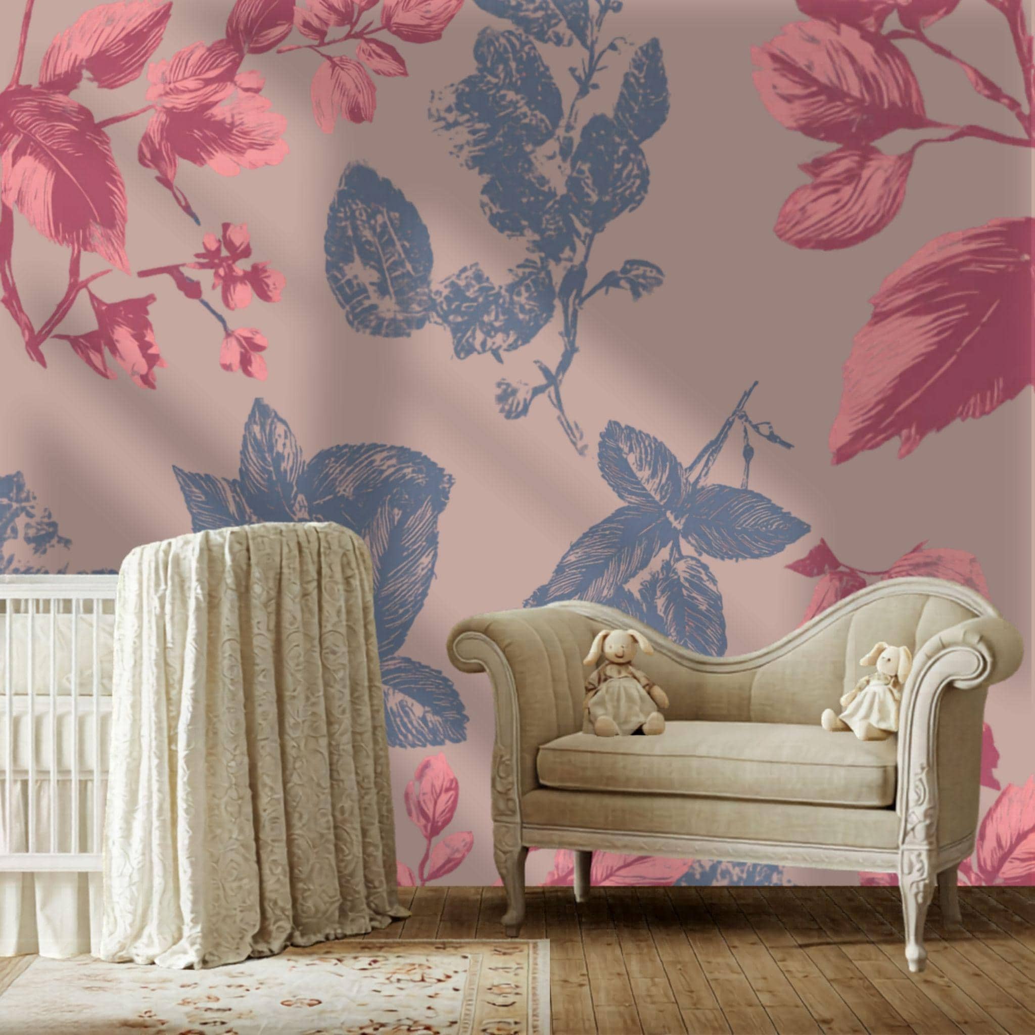 Botanical Blush in the Parlour | Nursery or Kids Room Wall Mural Digital Download, Large Floral Print File, Bold Home Decor