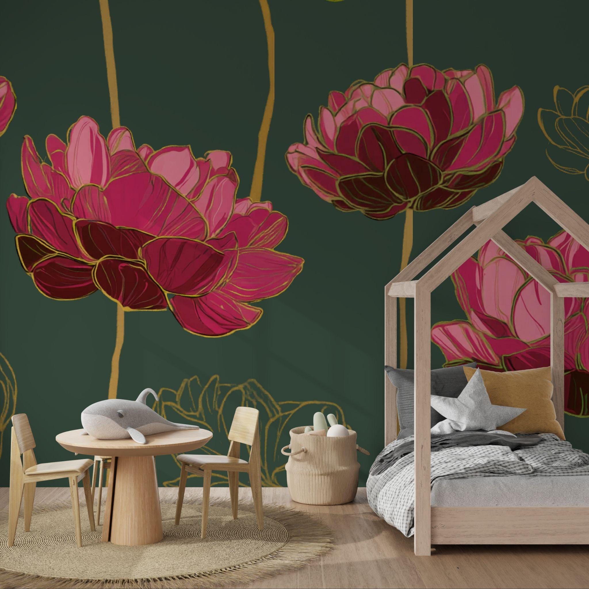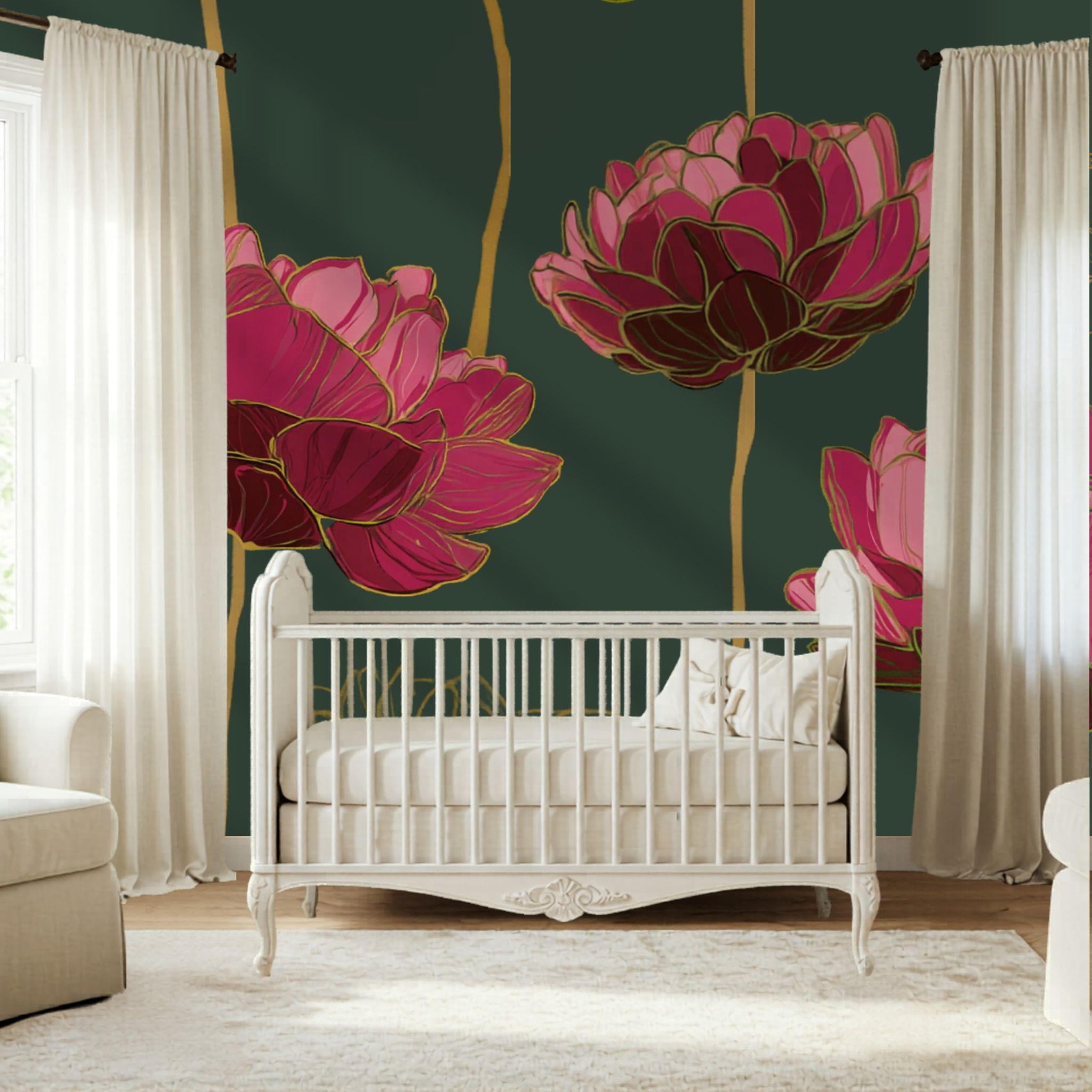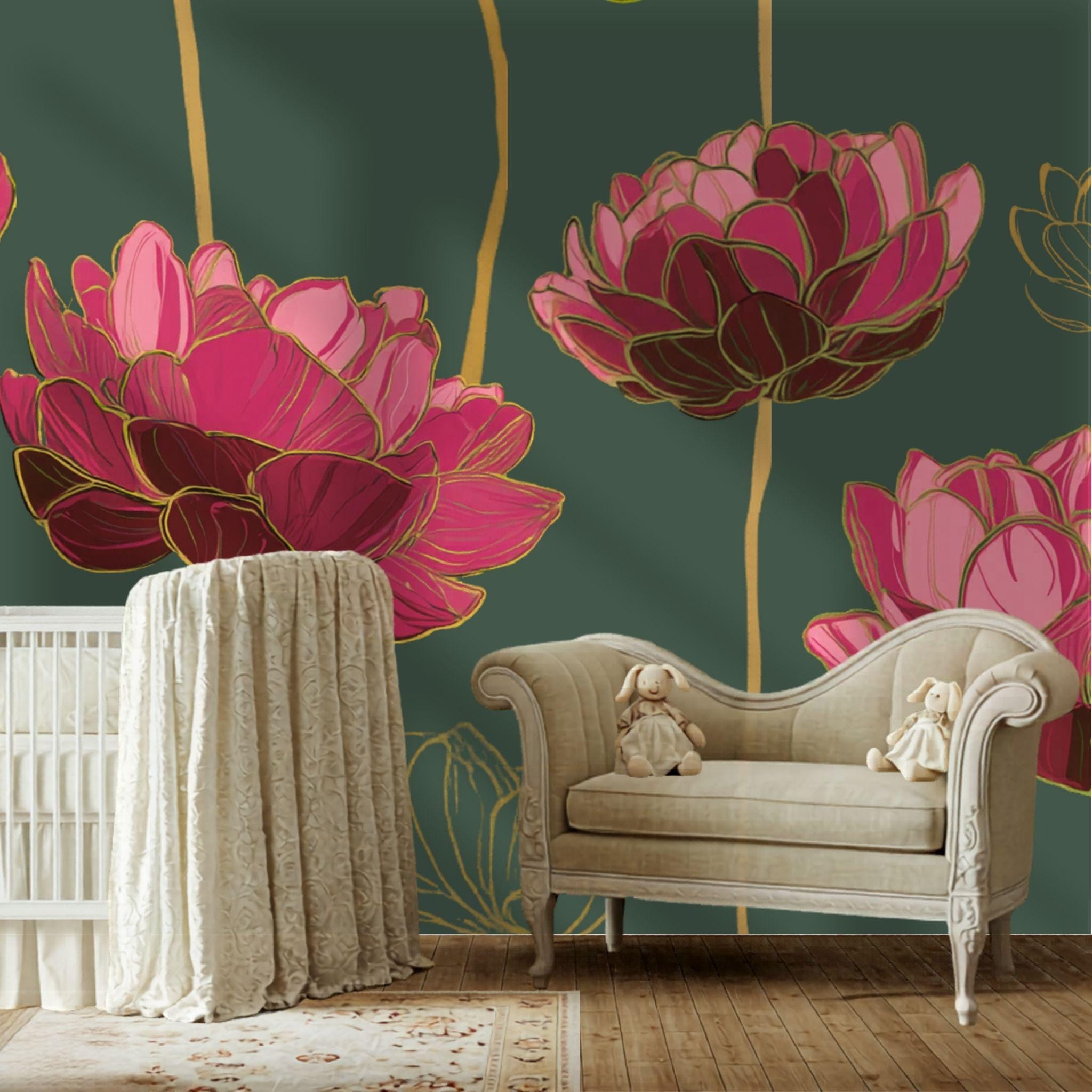 Grandiose Blooms in the Forest | Nursery or Kids Room Wall Mural Digital Download, Large Floral Print File, Bold Home Decor