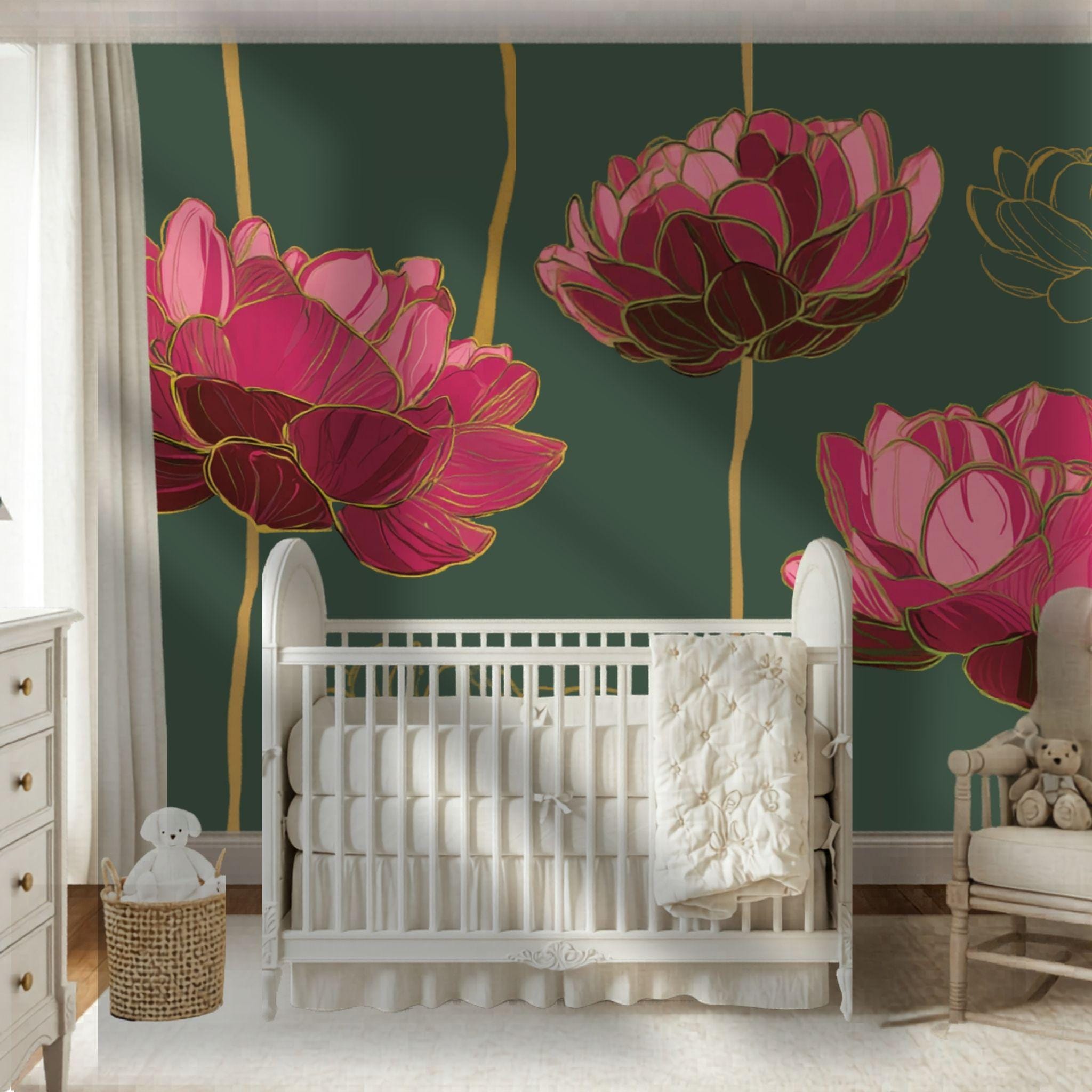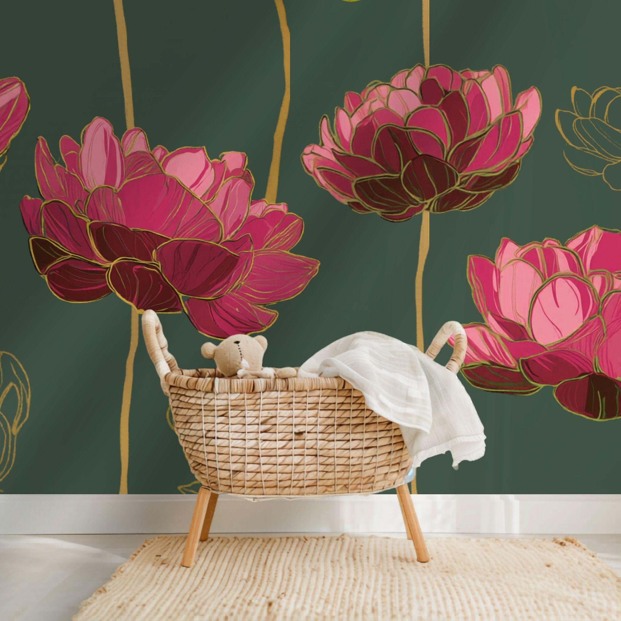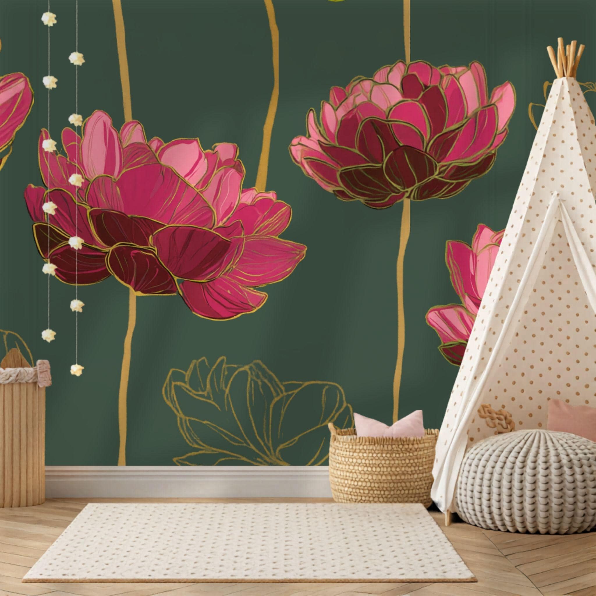 Grandiose Blooms in the Forest | Nursery or Kids Room Wall Mural Digital Download, Large Floral Print File, Bold Home Decor