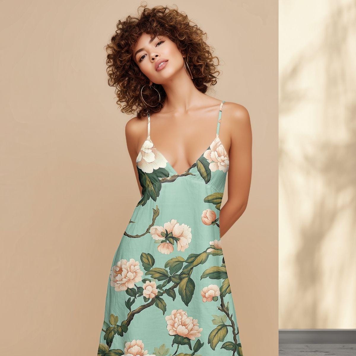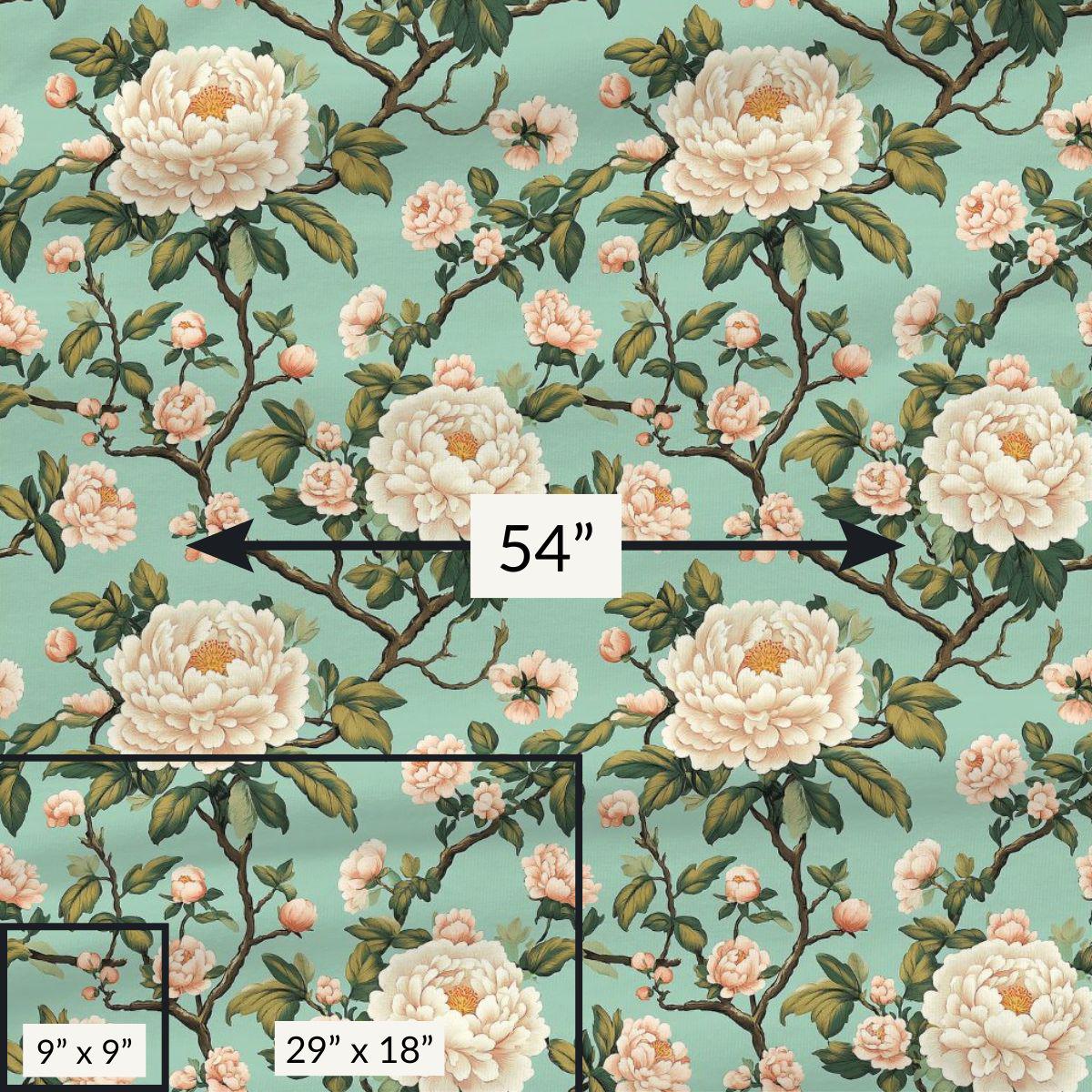 - Painterly rose and foliage print with a vintage, distressed look
