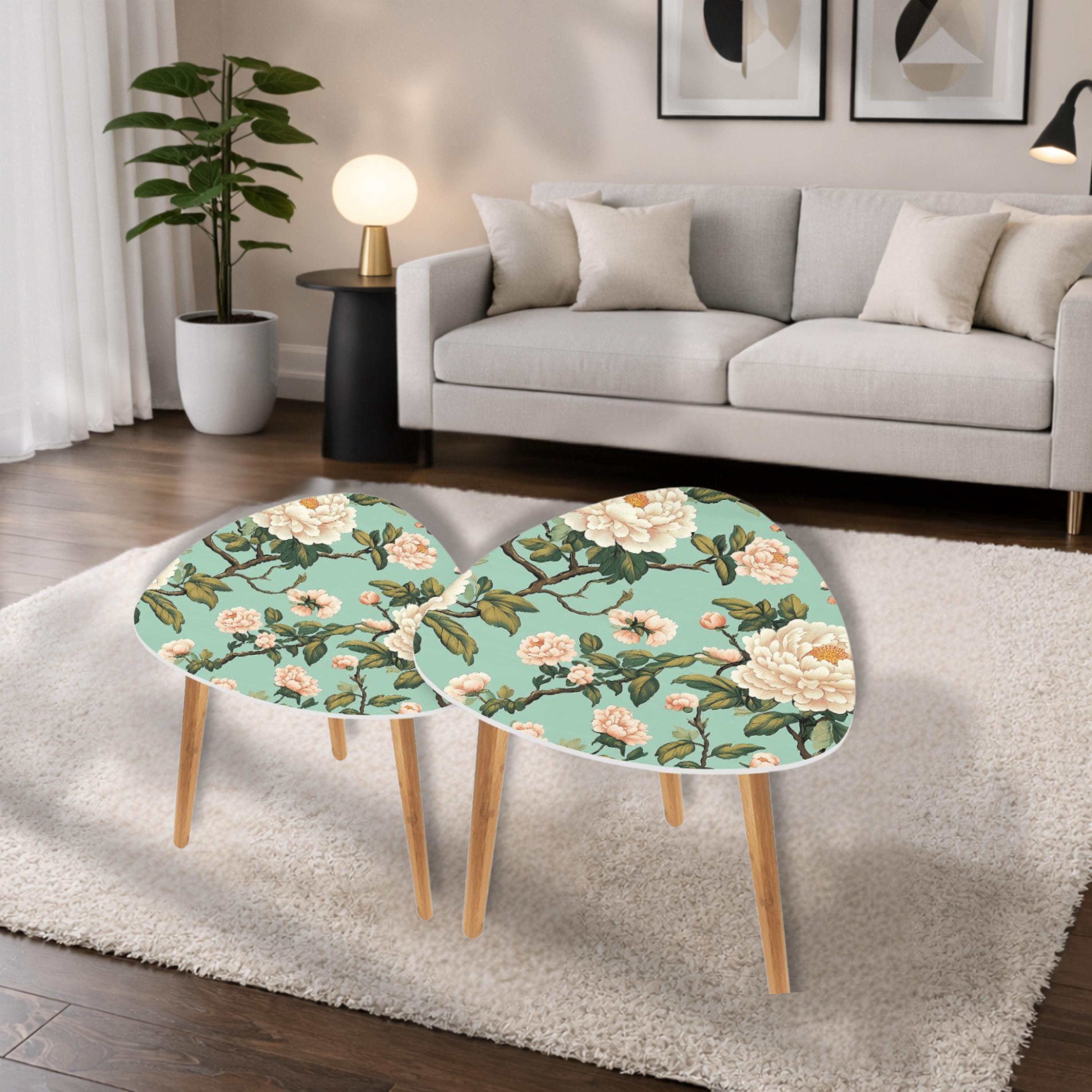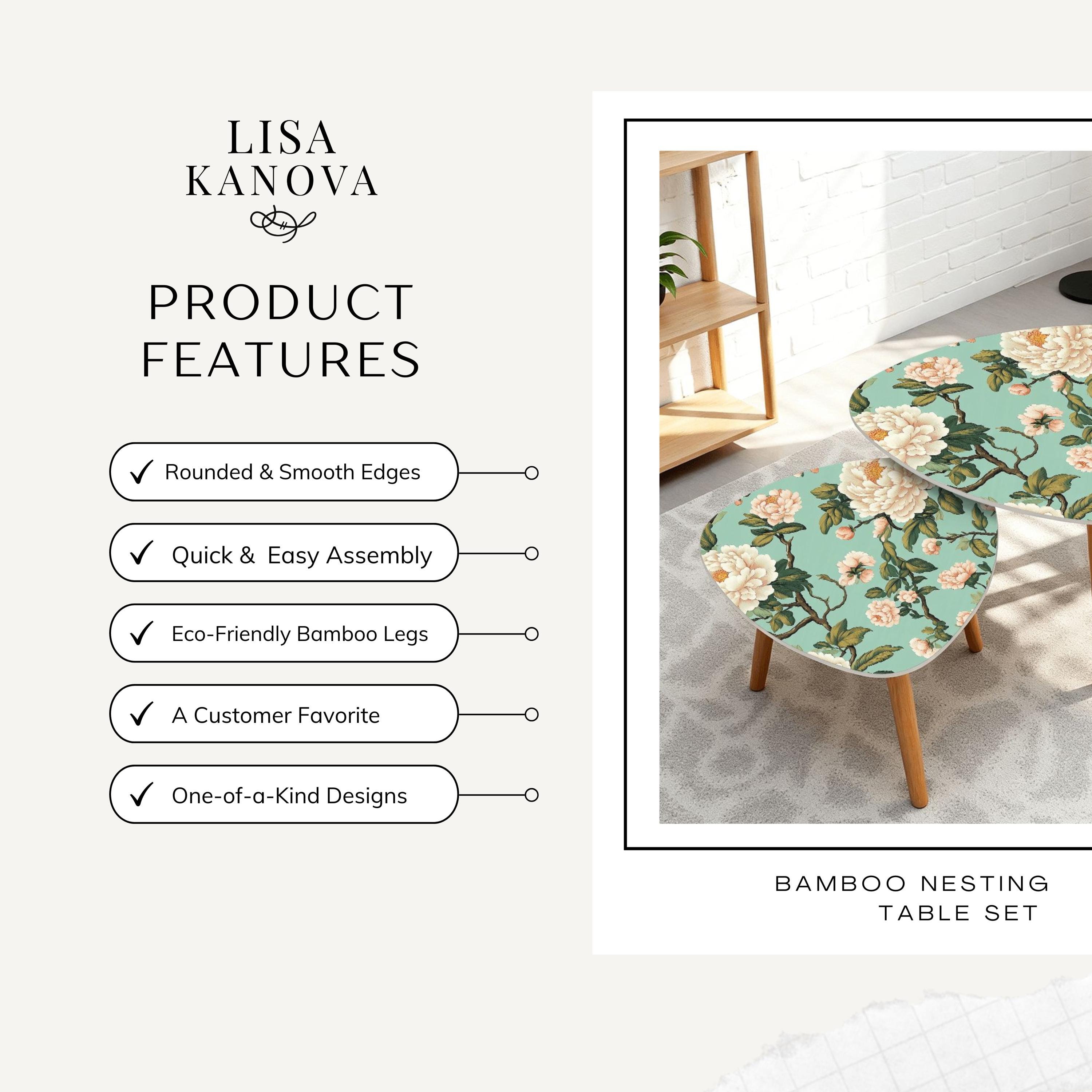 Bring sculptural simplicity into your space with this modern nesting table set — functional art designed to layer, shift, and adapt to the way you live. Each table features a smooth, rounded MDF top paired with eco‑friendly bamboo legs, creating a warm, contemporary silhouette that feels both refined and effortless.